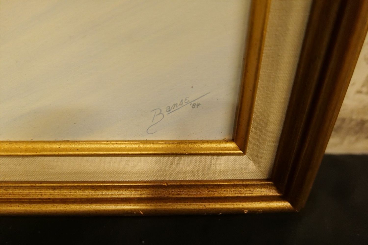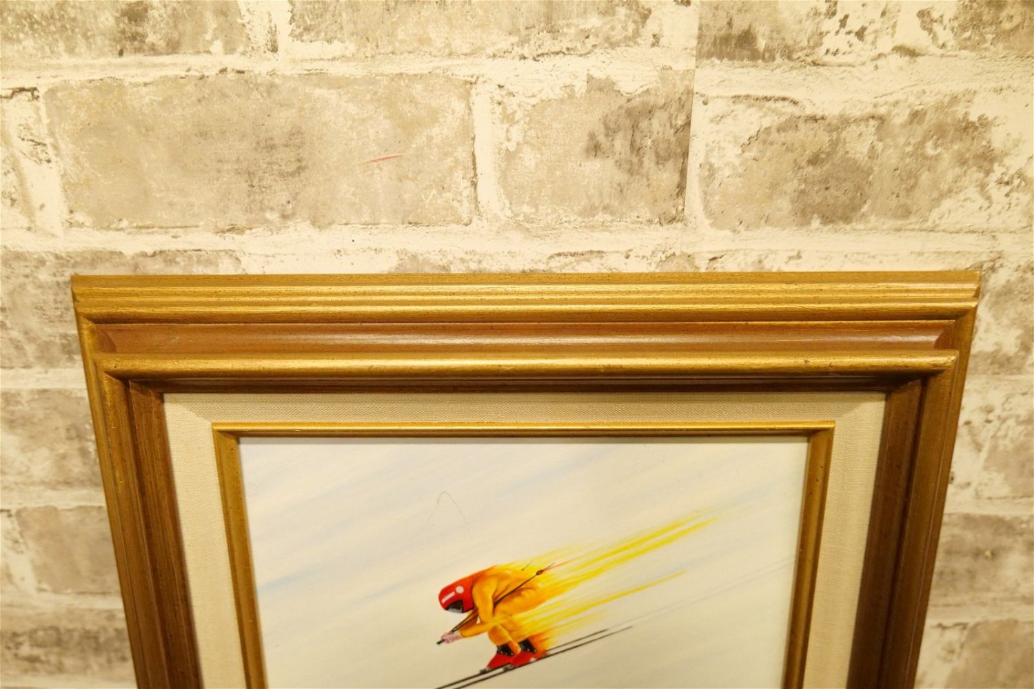 Original Oil on Board by Glen Fortune Banse (1948-2018). Depicting a downhill skier in motion. Signed Lower Right. Dated ’84. Has a minor scuff mark above the head of the skier. Measures 13" tall x 15". wide. Framed. Glen Fortune Banse (1948-2018) (aka Banse, Wayne Howell, Etienne and many other names) was born in Camden, New Jersey in 1948. He attended Ottawa University, Kansas State and The New School For Social Research in New York City, and has been a professional artist for close to 50 years. He was a co-partner in 3 Art Publishing businesses which specialized in Fine Art Signed and Numbered Limited Edition Lithography, Etchings and other fine art mediums. While publishing his own work, he was also the Art Director of all three companies and had the pleasure of working with, directing, and instructing hundreds of great nationally and internationally known artists such as Peter Max, Will Moses, John Pitre, Sarah Churchill (Daughter of Winston Churchill), Gerald Lubeck, Yanni Posnikov, and the world-famous Mr. Blackwell of Hollywood’s 10 Worst Dressed List presented each year. Throughout the 1990’s Glen was Personal Assistant, Confidant and Agent to Television Pioneer and Legend "Buffalo Bob" Smith of Howdy Doody fame, spending many years crisscrossing America with the Iconic Duo. Glen more recently focused his energy on Oils, presenting a well diversified subject matter. His works and portraits have been commissioned by the state of New Jersey, with pieces on permanent display in various State Buildings throughout the Garden State. His Art can be found in museums, galleries, celebrity collections and other venues through out the world.Provenance: This piece was consigned from the estate of Glen Fortune BanseAll invoices must be paid within 24 hours of the sale. We offer multiple shipping options, please read the terms as they have changed. We also offer Pick-Ups Thursday, Friday, Saturday, and Monday immediately following the sale. BY APPOINTMENT ONLY. PLEASE READ THE NEW TERMS!!!