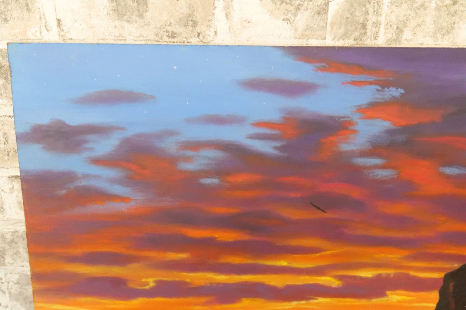 Original Oil on Board by Glen Fortune Banse (1948-2018). Depicting Monument Valley. Unsigned. Measures 24" tall x 36". wide. Unframed. Some minor scuff marks present. Glen Fortune Banse (1948-2018) (aka Banse, Wayne Howell, Etienne and many other names) was born in Camden, New Jersey in 1948. He attended Ottawa University, Kansas State and The New School For Social Research in New York City, and has been a professional artist for close to 50 years. He was a co-partner in 3 Art Publishing businesses which specialized in Fine Art Signed and Numbered Limited Edition Lithography, Etchings and other fine art mediums. While publishing his own work, he was also the Art Director of all three companies and had the pleasure of working with, directing, and instructing hundreds of great nationally and internationally known artists such as Peter Max, Will Moses, John Pitre, Sarah Churchill (Daughter of Winston Churchill), Gerald Lubeck, Yanni Posnikov, and the world-famous Mr. Blackwell of Hollywood’s 10 Worst Dressed List presented each year. Throughout the 1990’s Glen was Personal Assistant, Confidant and Agent to Television Pioneer and Legend "Buffalo Bob" Smith of Howdy Doody fame, spending many years crisscrossing America with the Iconic Duo. Glen more recently focused his energy on Oils, presenting a well diversified subject matter. His works and portraits have been commissioned by the state of New Jersey, with pieces on permanent display in various State Buildings throughout the Garden State. His Art can be found in museums, galleries, celebrity collections and other venues through out the world.Provenance: This piece was consigned from the estate of Glen Fortune BanseAll invoices must be paid within 24 hours of the sale. We offer multiple shipping options, please read the terms as they have changed. We also offer Pick-Ups Thursday, Friday, Saturday, and Monday immediately following the sale. BY APPOINTMENT ONLY. PLEASE READ THE NEW TERMS!!!