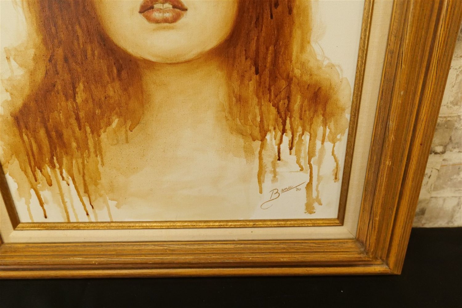 Original Oil on Canvas by Glen Fortune Banse (1948-2018). Entitled "Linda". Depicting a Portrait of a Woman. Signed Lower Right. Dated ’80. Signed and Noted on Back. Measures 27.5" tall x 23". wide. Framed. Glen Fortune Banse (1948-2018) (aka Banse, Wayne Howell, Etienne and many other names) was born in Camden, New Jersey in 1948. He attended Ottawa University, Kansas State and The New School For Social Research in New York City, and has been a professional artist for close to 50 years. He was a co-partner in 3 Art Publishing businesses which specialized in Fine Art Signed and Numbered Limited Edition Lithography, Etchings and other fine art mediums. While publishing his own work, he was also the Art Director of all three companies and had the pleasure of working with, directing, and instructing hundreds of great nationally and internationally known artists such as Peter Max, Will Moses, John Pitre, Sarah Churchill (Daughter of Winston Churchill), Gerald Lubeck, Yanni Posnikov, and the world-famous Mr. Blackwell of Hollywood’s 10 Worst Dressed List presented each year. Throughout the 1990’s Glen was Personal Assistant, Confidant and Agent to Television Pioneer and Legend "Buffalo Bob" Smith of Howdy Doody fame, spending many years crisscrossing America with the Iconic Duo. Glen more recently focused his energy on Oils, presenting a well diversified subject matter. His works and portraits have been commissioned by the state of New Jersey, with pieces on permanent display in various State Buildings throughout the Garden State. His Art can be found in museums, galleries, celebrity collections and other venues through out the world.Provenance: This piece was consigned from the estate of Glen Fortune BanseAll invoices must be paid within 24 hours of the sale. We offer multiple shipping options, please read the terms as they have changed. We also offer Pick-Ups Thursday, Friday, Saturday, and Monday immediately following the sale. BY APPOINTMENT ONLY. PLEASE READ THE NEW TERMS!!!