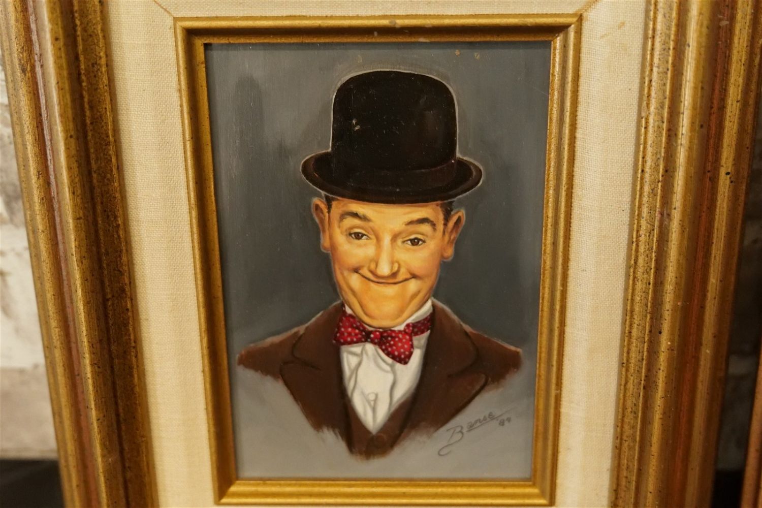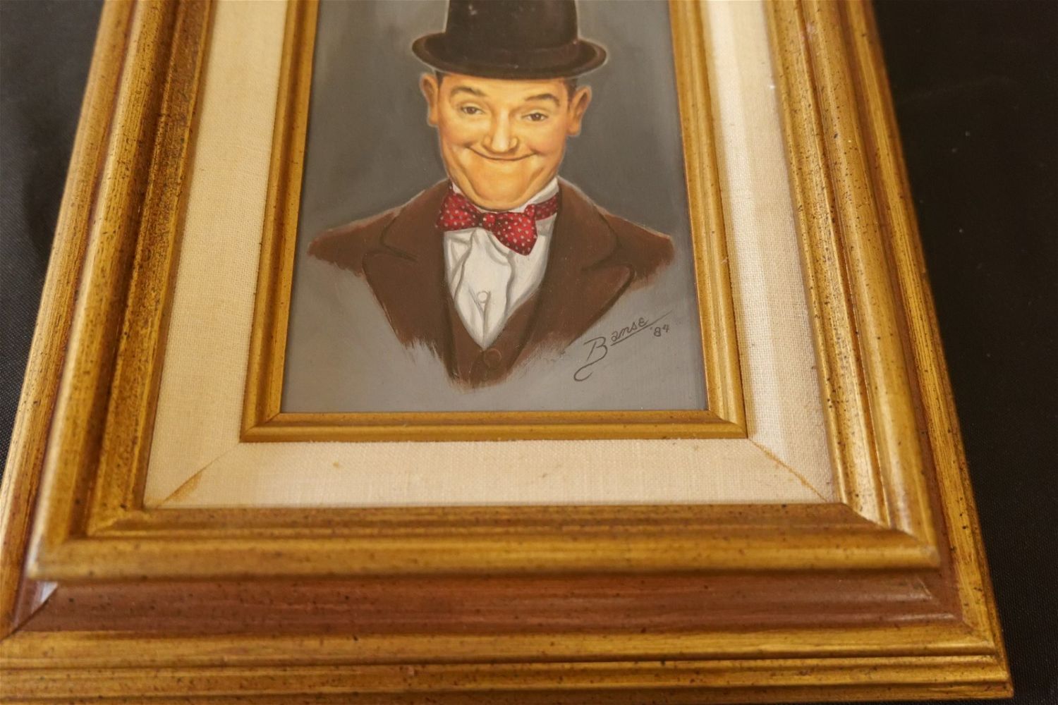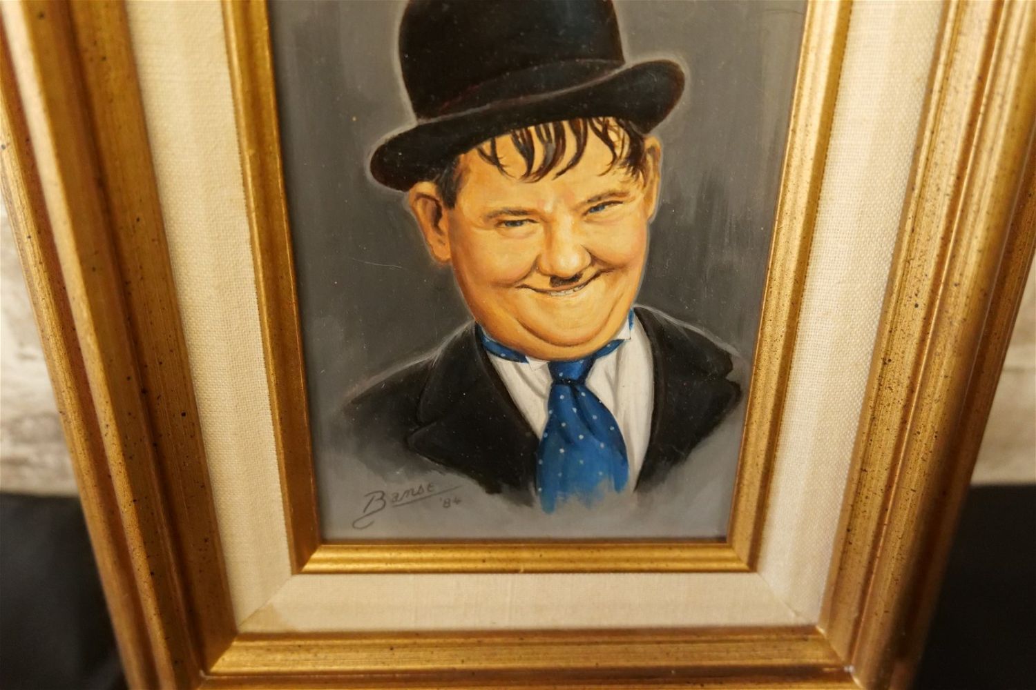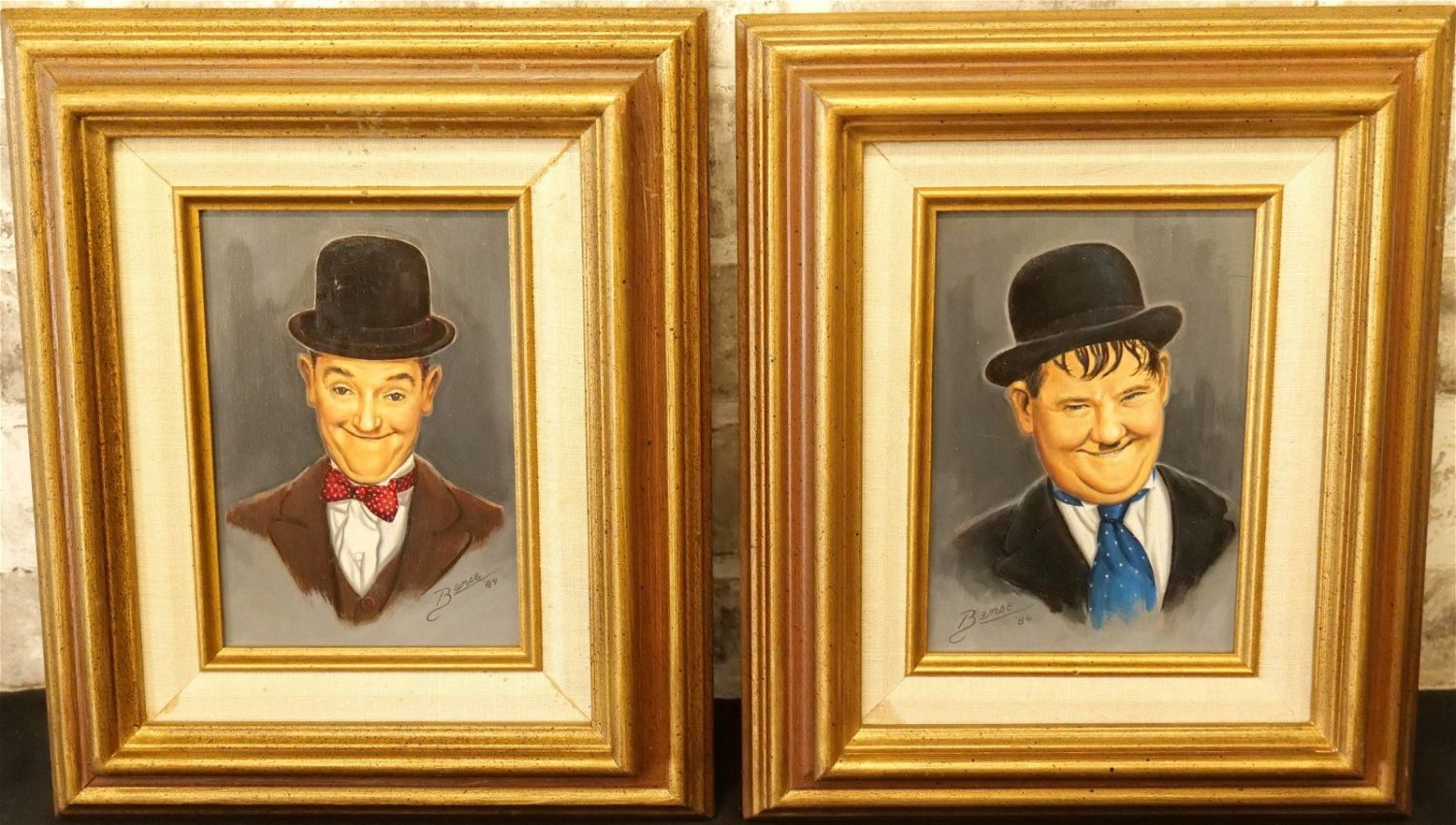 Lot of 2 Original Oil on Board by Glen Fortune Banse (1948-2018). Entitled "Stan Laurel" and "Oliver Hardy". Depicting Laurel and Hardy. Laurel Signed Bottom Right. Hardy Signed Bottle Left. Both Dated ’84. Both measure 12" tall x 10". wide. Both framed. Glen Fortune Banse (1948-2018) (aka Banse, Wayne Howell, Etienne and many other names) was born in Camden, New Jersey in 1948. He attended Ottawa University, Kansas State and The New School For Social Research in New York City, and has been a professional artist for close to 50 years. He was a co-partner in 3 Art Publishing businesses which specialized in Fine Art Signed and Numbered Limited Edition Lithography, Etchings and other fine art mediums. While publishing his own work, he was also the Art Director of all three companies and had the pleasure of working with, directing, and instructing hundreds of great nationally and internationally known artists such as Peter Max, Will Moses, John Pitre, Sarah Churchill (Daughter of Winston Churchill), Gerald Lubeck, Yanni Posnikov, and the world-famous Mr. Blackwell of Hollywood’s 10 Worst Dressed List presented each year. Throughout the 1990’s Glen was Personal Assistant, Confidant and Agent to Television Pioneer and Legend "Buffalo Bob" Smith of Howdy Doody fame, spending many years crisscrossing America with the Iconic Duo. Glen more recently focused his energy on Oils, presenting a well diversified subject matter. His works and portraits have been commissioned by the state of New Jersey, with pieces on permanent display in various State Buildings throughout the Garden State. His Art can be found in museums, galleries, celebrity collections and other venues through out the world.Provenance: This piece was consigned from the estate of Glen Fortune BanseAll invoices must be paid within 24 hours of the sale. We offer multiple shipping options, please read the terms as they have changed. We also offer Pick-Ups Thursday, Friday, Saturday, and Monday immediately following the sale. BY APPOINTMENT ONLY. PLEASE READ THE NEW TERMS!!!