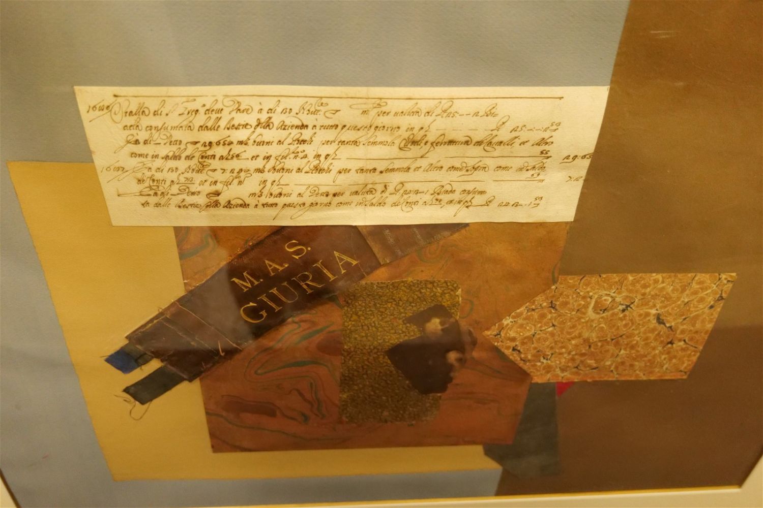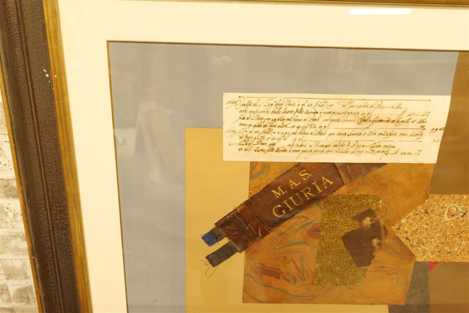 Mixed Media Collage on Board. Has M.A.S. Giuria Label. Artist Unknown – Possibly Leo Manso. Framed and Matted. Frame has a couple of nicks. Measures 43" tall x 33.5" wide. All invoices must be paid within 24 hours of the sale. We offer multiple shipping options, please read the terms as they have changed. We also offer Pick-Ups Thursday, Friday, Saturday, and Monday immediately following the sale. BY APPOINTMENT ONLY. PLEASE READ THE NEW TERMS!!!
