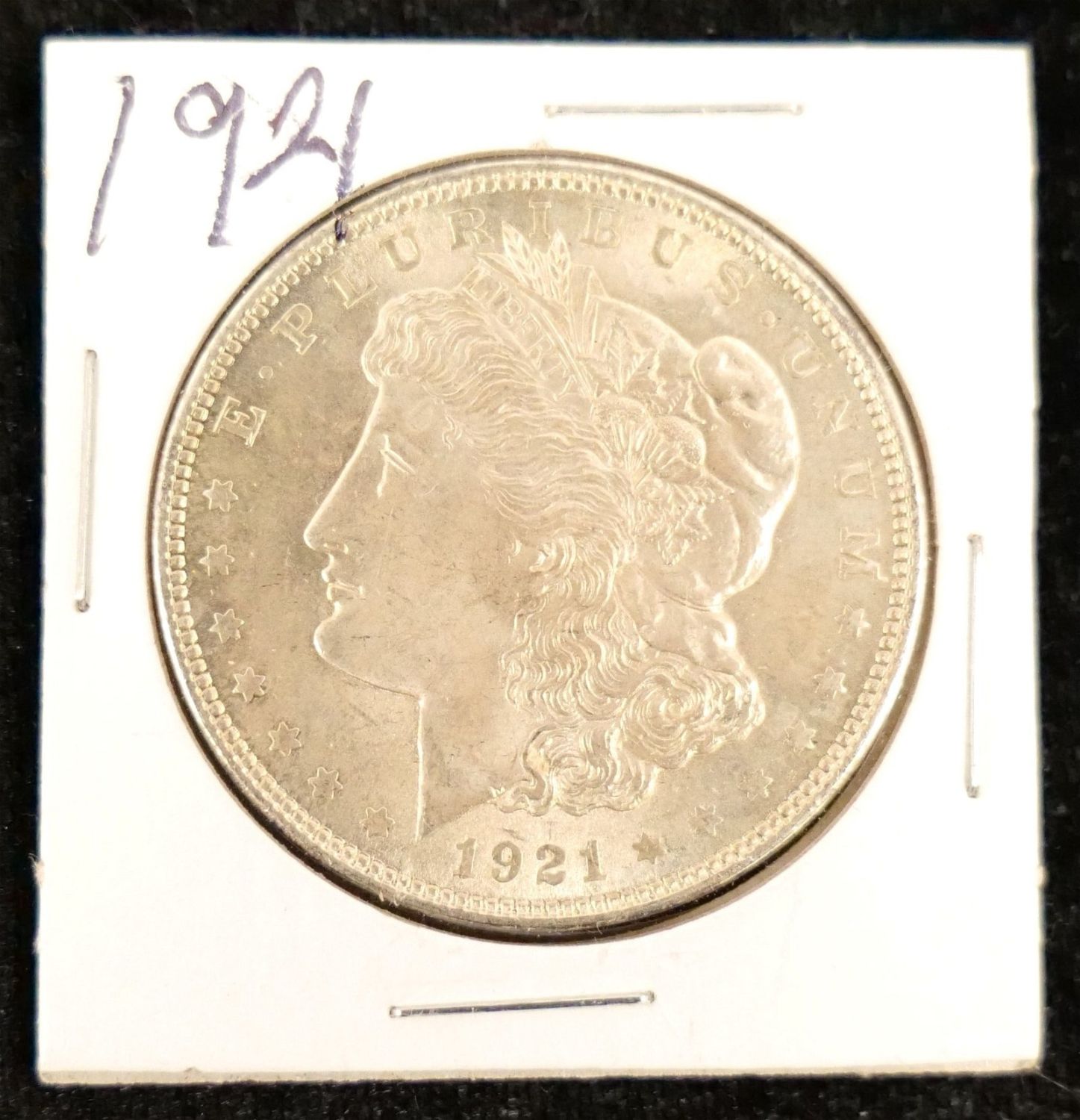 1921-P Morgan Silver Dollar. Bodnar’s Auction is not grading any coins in this sale, nor are we making any representation of the grade or condition of any of the coins. Please see the Photos for condition and ask any and all questions Prior to bidding. We will be happy to send over more Photos if requested. All invoices must be Paid within 24 hours of the sale. We offer multiple shipping options, Please read the terms as they have changed. We also offer Pick-Ups Thursday, Friday, Saturday, and Monday immediately following the sale. BY APPOINTMENT ONLY. PLEASE READ THE NEW TERMS!!!