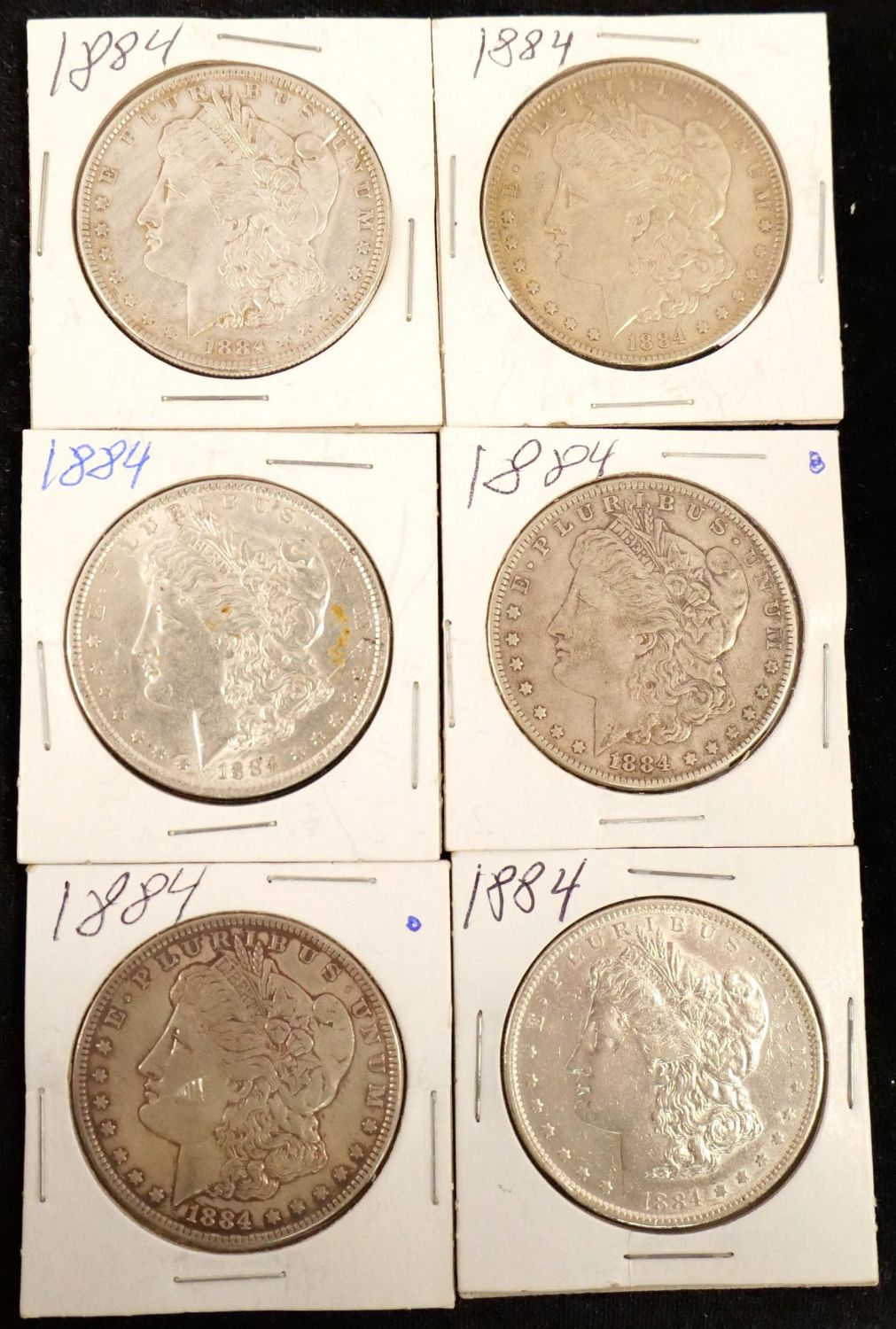 Lot of 6 1884-P Morgan Silver Dollars. Bodnar’s Auction is not grading any coins in this sale, nor are we making any representation of the grade or condition of any of the coins. Please see the Photos for condition and ask any and all questions Prior to bidding. We will be happy to send over more Photos if requested. All invoices must be Paid within 24 hours of the sale. We offer multiple shipping options, Please read the terms as they have changed. We also offer Pick-Ups Thursday, Friday, Saturday, and Monday immediately following the sale. BY APPOINTMENT ONLY. PLEASE READ THE NEW TERMS!!!