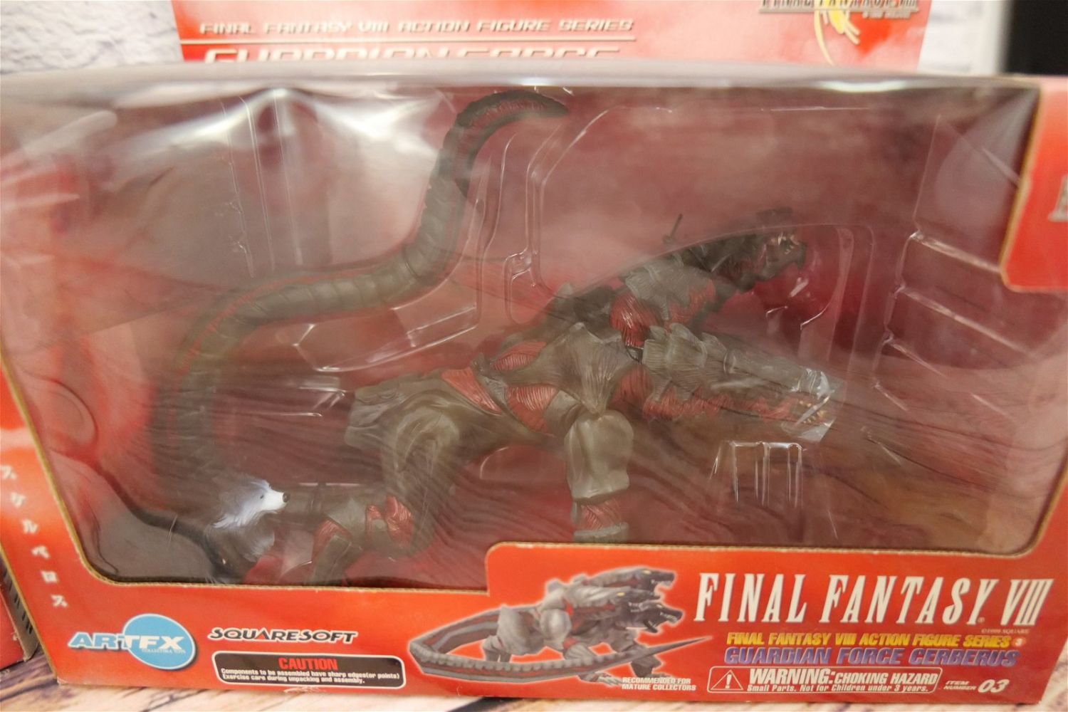 Lot of 2 Final Fantasy VIII Guardian Force Action Figures. By ArtFx. Including No. 27 and Cerebus. Both boxes need a cleaning and have wear. All invoices must be paid within 24 hours of the sale. We offer multiple shipping options, please read the terms as they have changed. We also offer Pick-Ups Friday, Saturday, and Monday immediately following the sale. BY APPOINTMENT ONLY. PLEASE READ THE NEW TERMS!!!