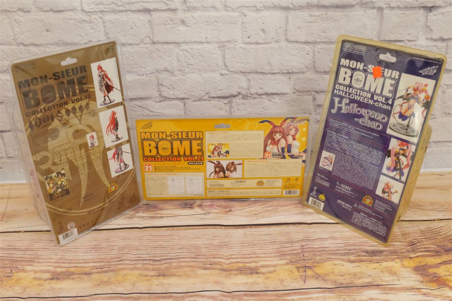 Lot of 3 Mon-Sieur Bome Action Figures by Xebec including Honey Bunny Karen & Rio Figure Set – Collection Vol. 21, Halloween-Chan – Collection Vol. 4, and Ignis "Jingai Makyo" – Collection Vol. 13. All new in Package. The Halloween-Chan does have a bit of discoloration to the plastic and Innis has some denting on the blister pack. All invoices must be paid within 24 hours of the sale. We offer multiple shipping options, please read the terms as they have changed. We also offer Pick-Ups Friday, Saturday, and Monday immediately following the sale. BY APPOINTMENT ONLY. PLEASE READ THE NEW TERMS!!!