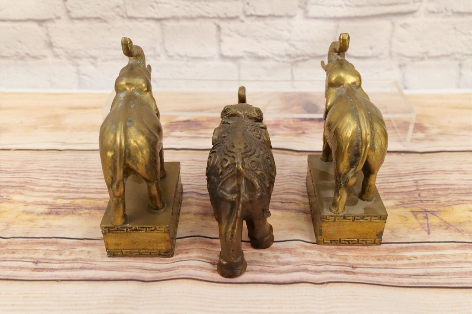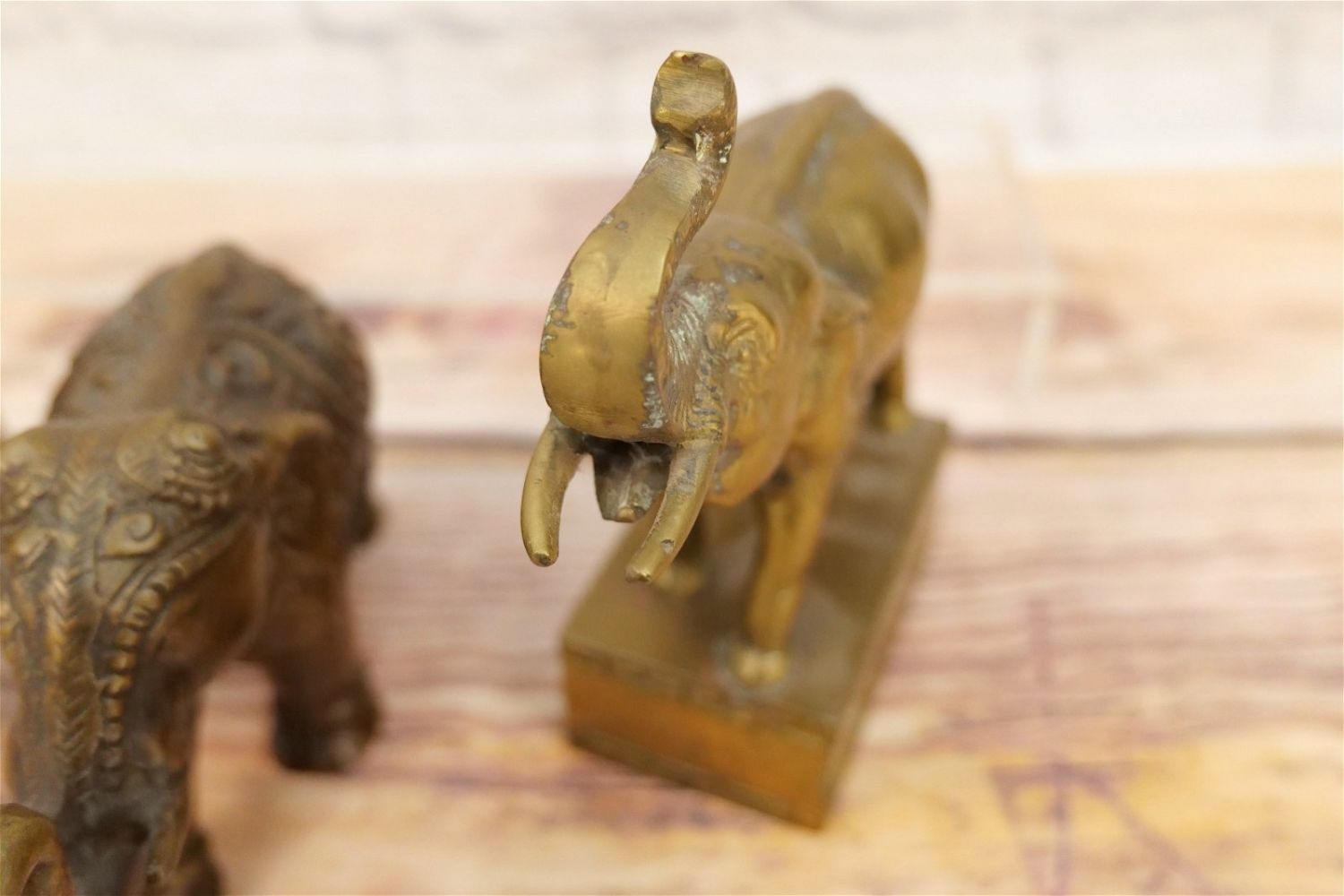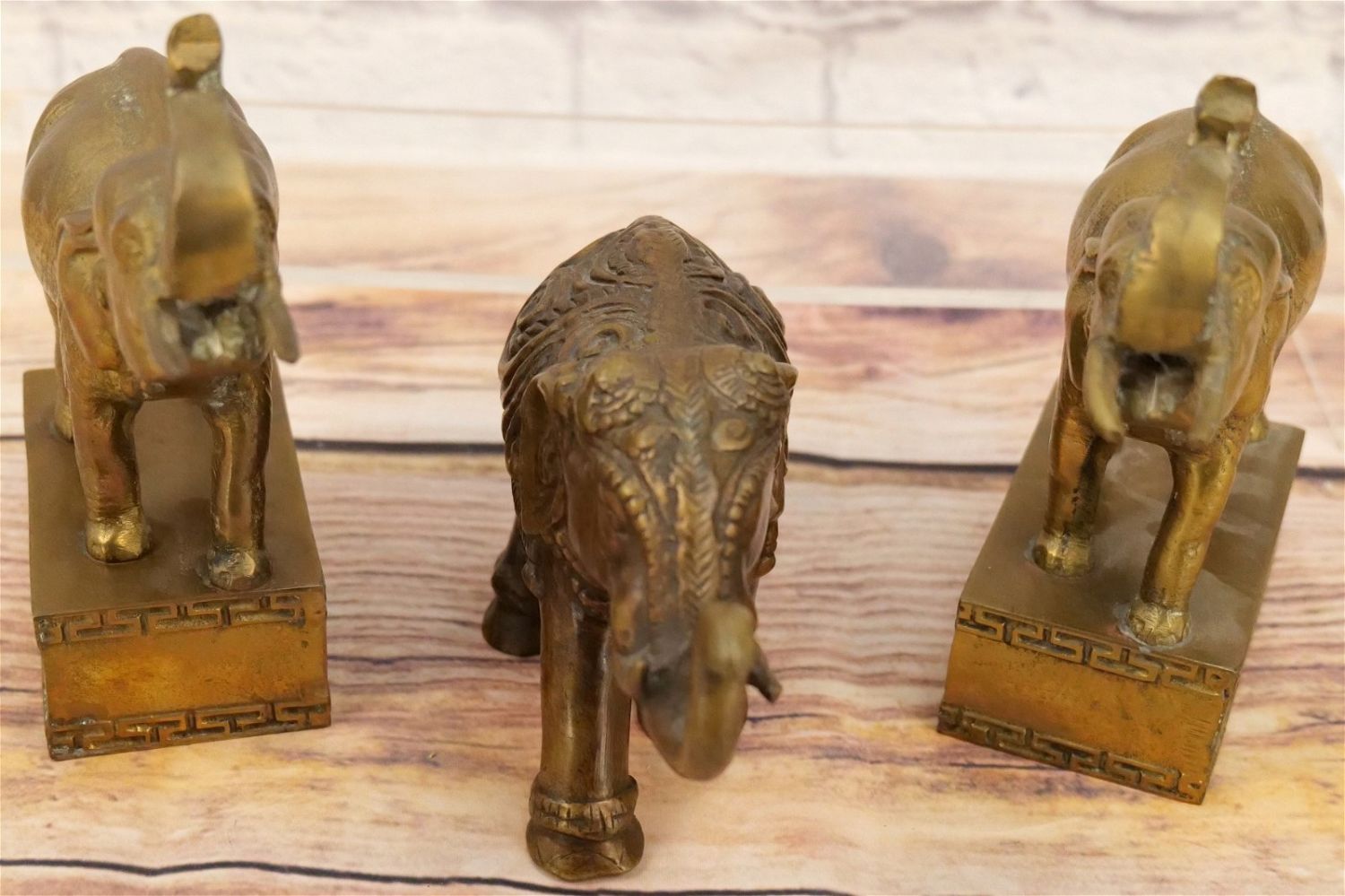 Lot of Brass and Bronze Elephant Statues including Pair of Brass Book Ends and Bronze Middle-Eastern Elephant. Largest measures 9" tall. All invoices must be paid within 24 hours of the sale. We offer multiple shipping options, please read the terms as they have changed. We also offer Pick-Ups Thursday, Friday, Saturday, and Monday immediately following the sale. BY APPOINTMENT ONLY. PLEASE READ THE NEW TERMS!!!
