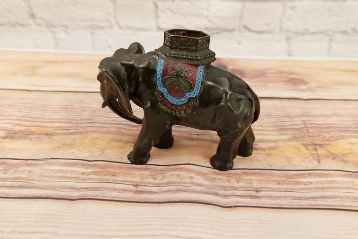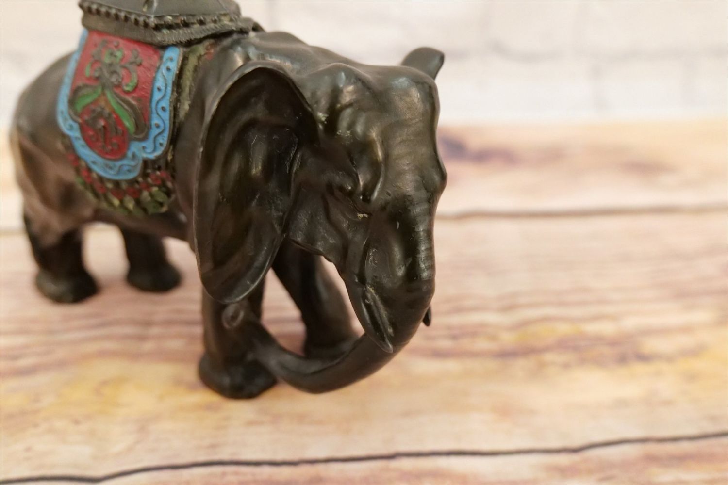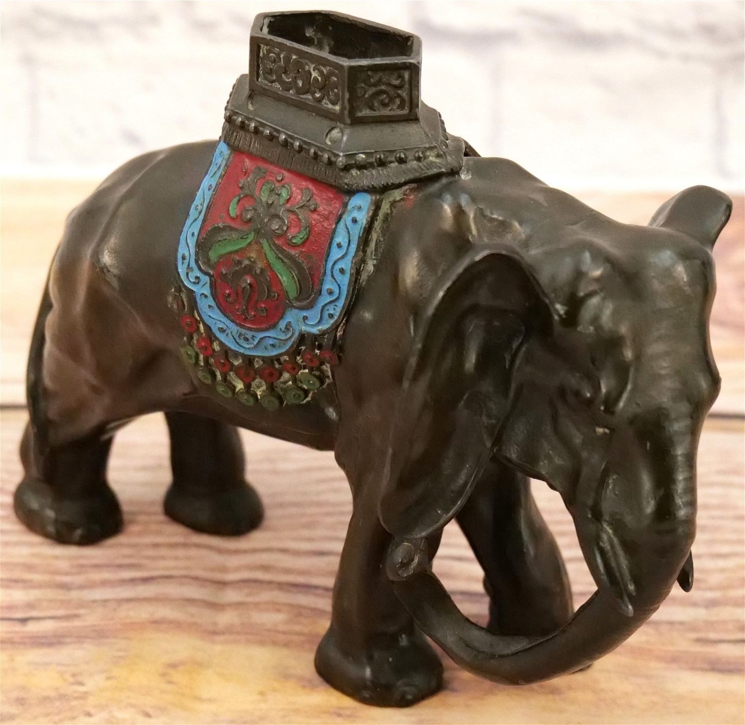Cast Metal Cold Painted Elephant Statue. Measures 7" tall x 8" long. All invoices must be paid within 24 hours of the sale. We offer multiple shipping options, please read the terms as they have changed. We also offer Pick-Ups Thursday, Friday, Saturday, and Monday immediately following the sale. BY APPOINTMENT ONLY. PLEASE READ THE NEW TERMS!!!