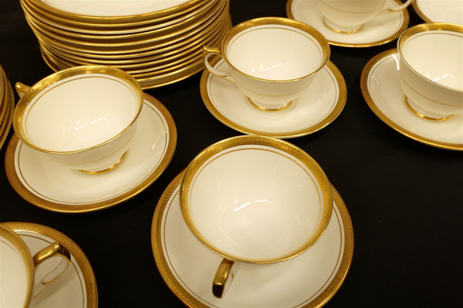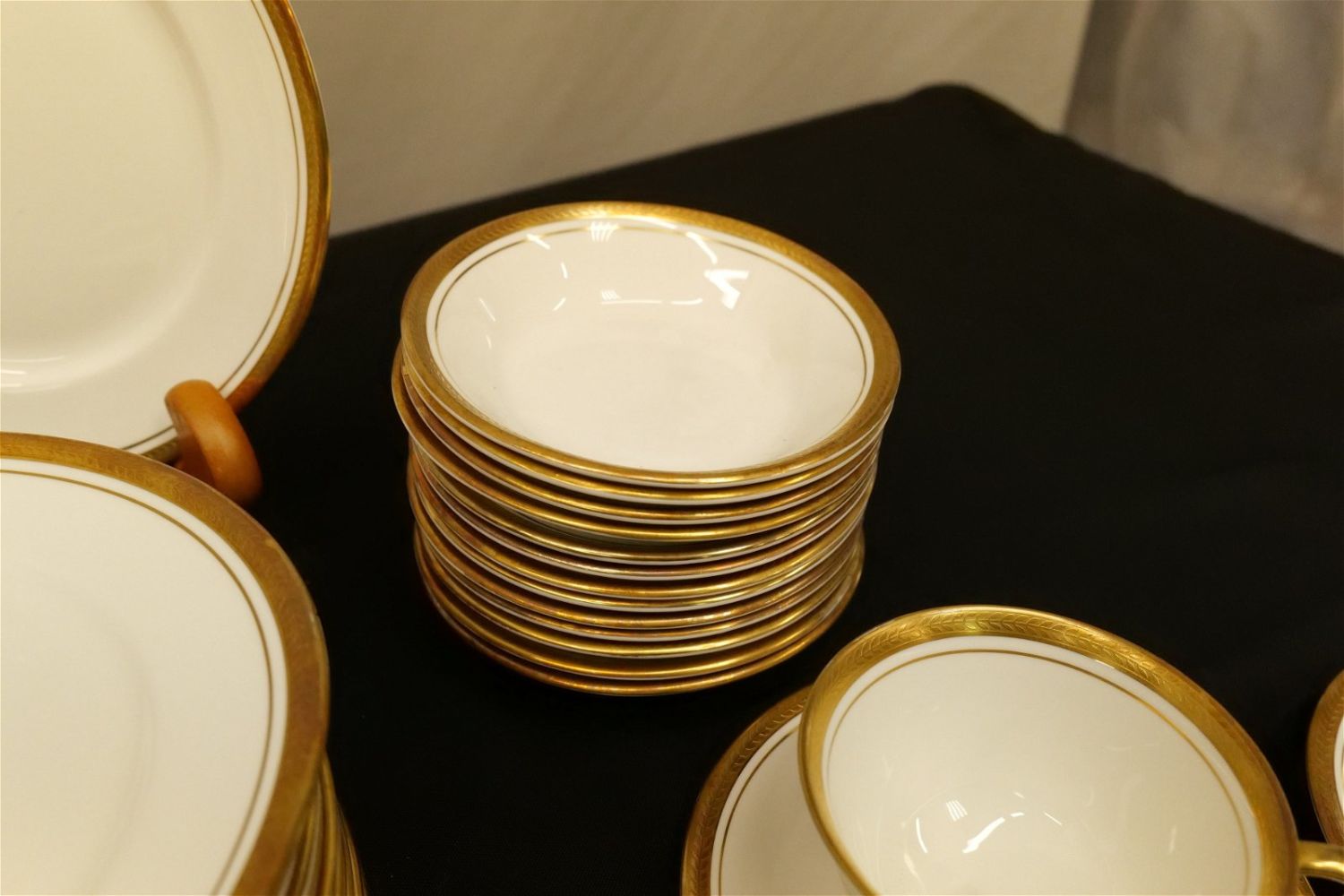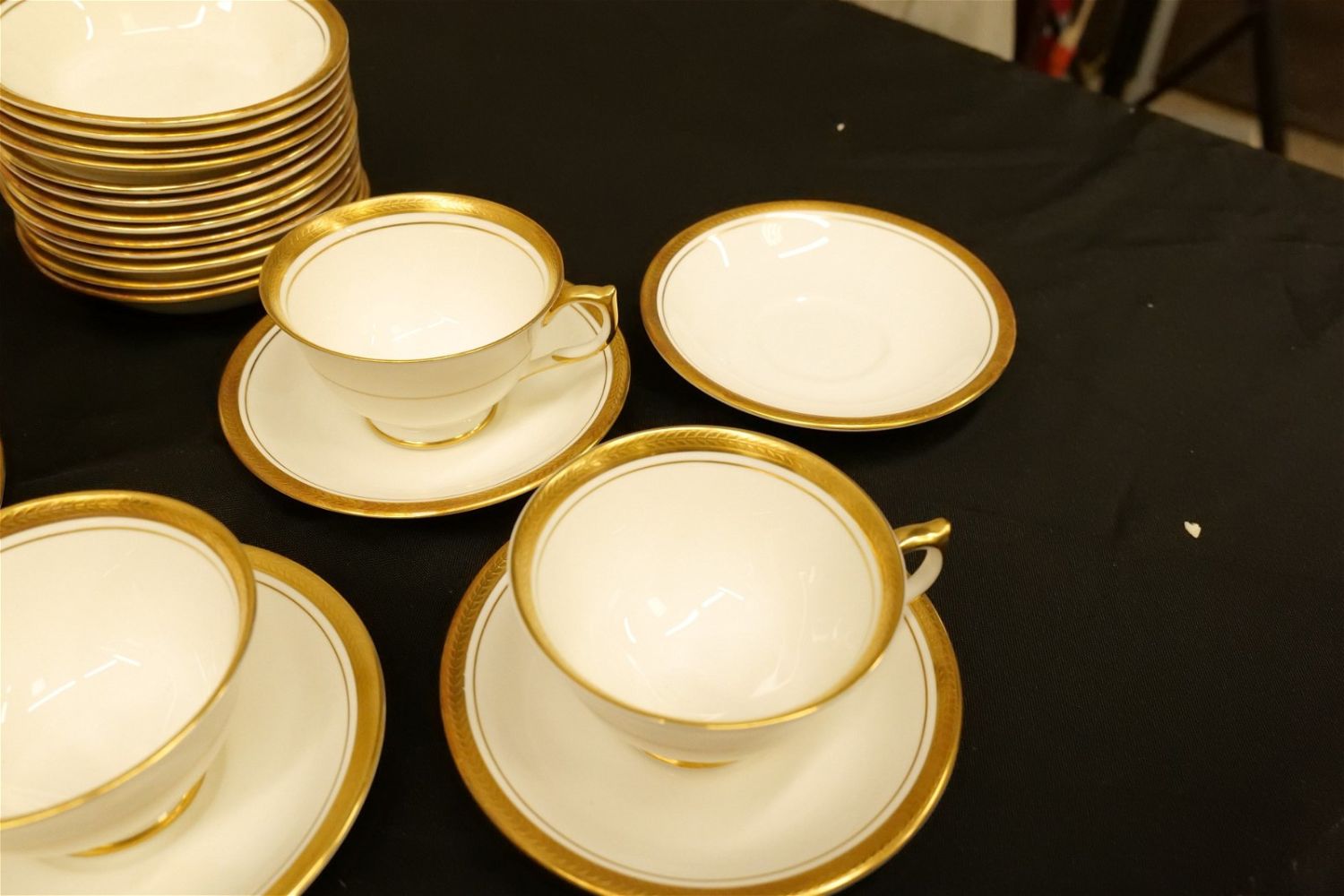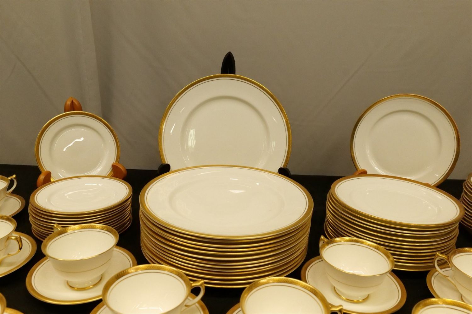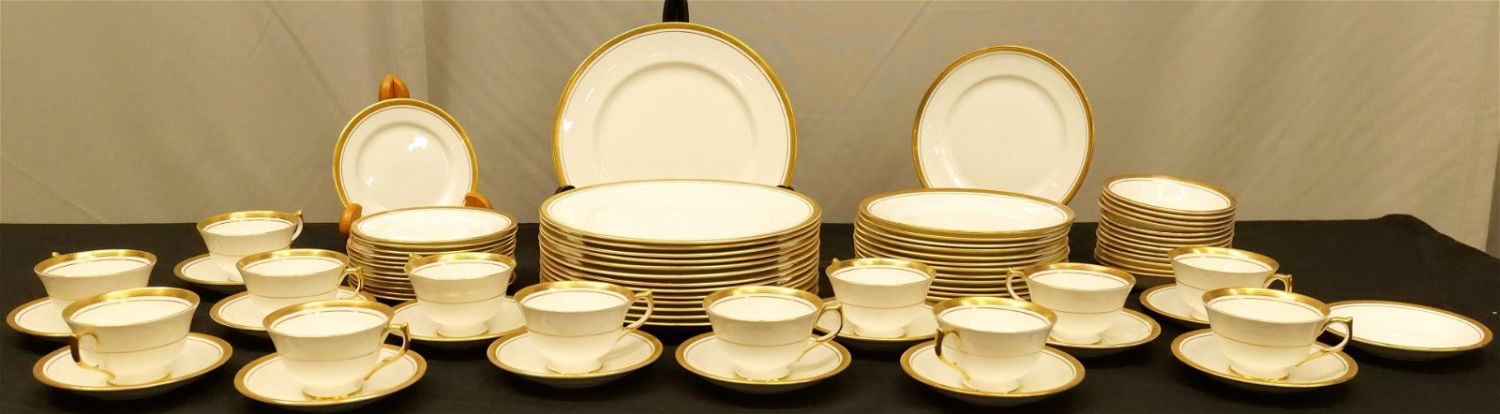 81 piece Aynsley dinnerware set in pattern Elizabeth. Set contains 14 – 10 1/2" dinner plates, 14 – 8 1/2" dinner plates, 13 – 6 1/4" bread plates, 13 – 5" fruit bowls, 13 cups and 14 saucers. In excellent condition and appears to have never been used. All invoices must be paid within 24 hours of the sale. We offer multiple shipping options, please read the terms as they have changed. We also offer Pick-Ups Thursday, Friday, Saturday, and Monday immediately following the sale. BY APPOINTMENT ONLY. PLEASE READ THE NEW TERMS!!!