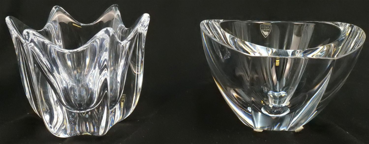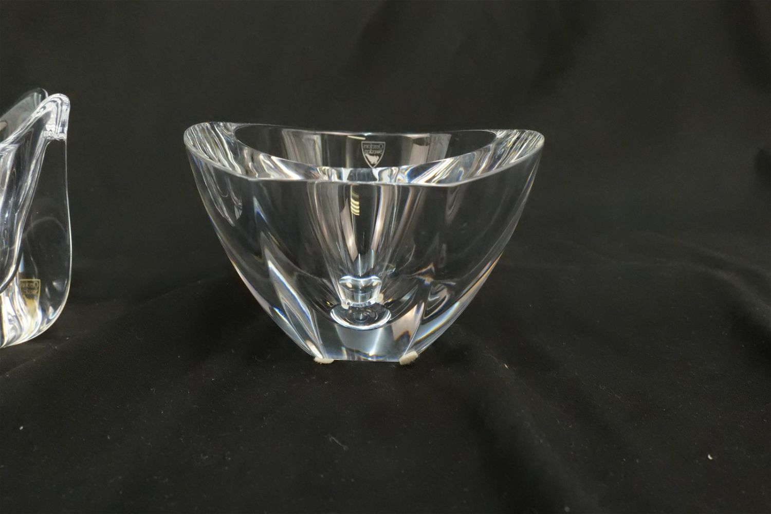 2 Orrefors vases. The mirror vase comes with box. Largest measures 4" tall x 4 1/2" in diameter. All invoices must be paid within 24 hours of the sale. We offer multiple shipping options, please read the terms as they have changed. We also offer Pick-Ups Thursday, Friday, Saturday, and Monday immediately following the sale. BY APPOINTMENT ONLY. PLEASE READ THE NEW TERMS!!!