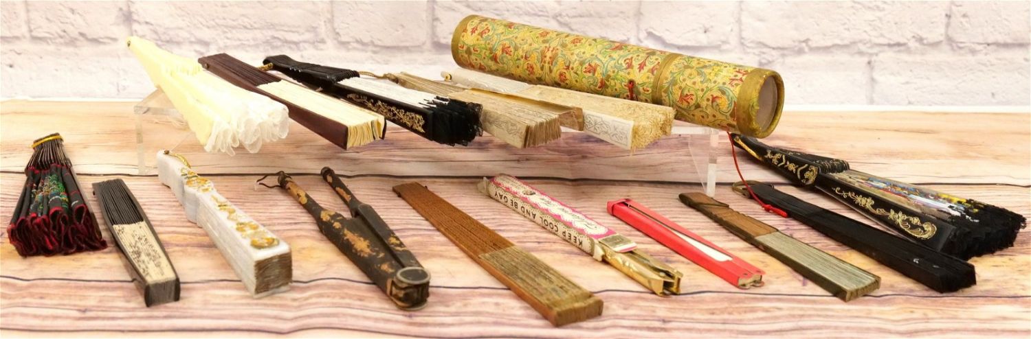 Group Lot of Decorative Fans. Including Lace, Some with French Scenes, Some with Rhinestones and More. One is AS-IS. All invoices must be paid within 24 hours of the sale. We offer multiple shipping options, please read the terms as they have changed. We also offer Pick-Ups Thursday, Friday, Saturday, and Monday immediately following the sale. BY APPOINTMENT ONLY. PLEASE READ THE NEW TERMS!!!