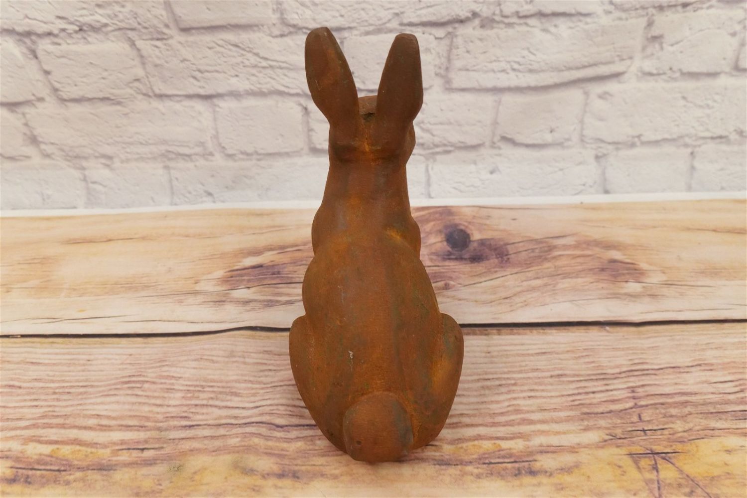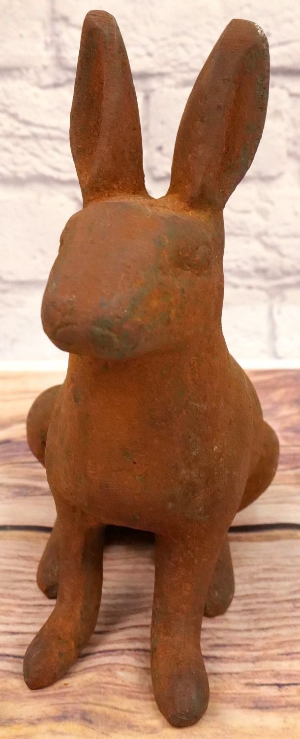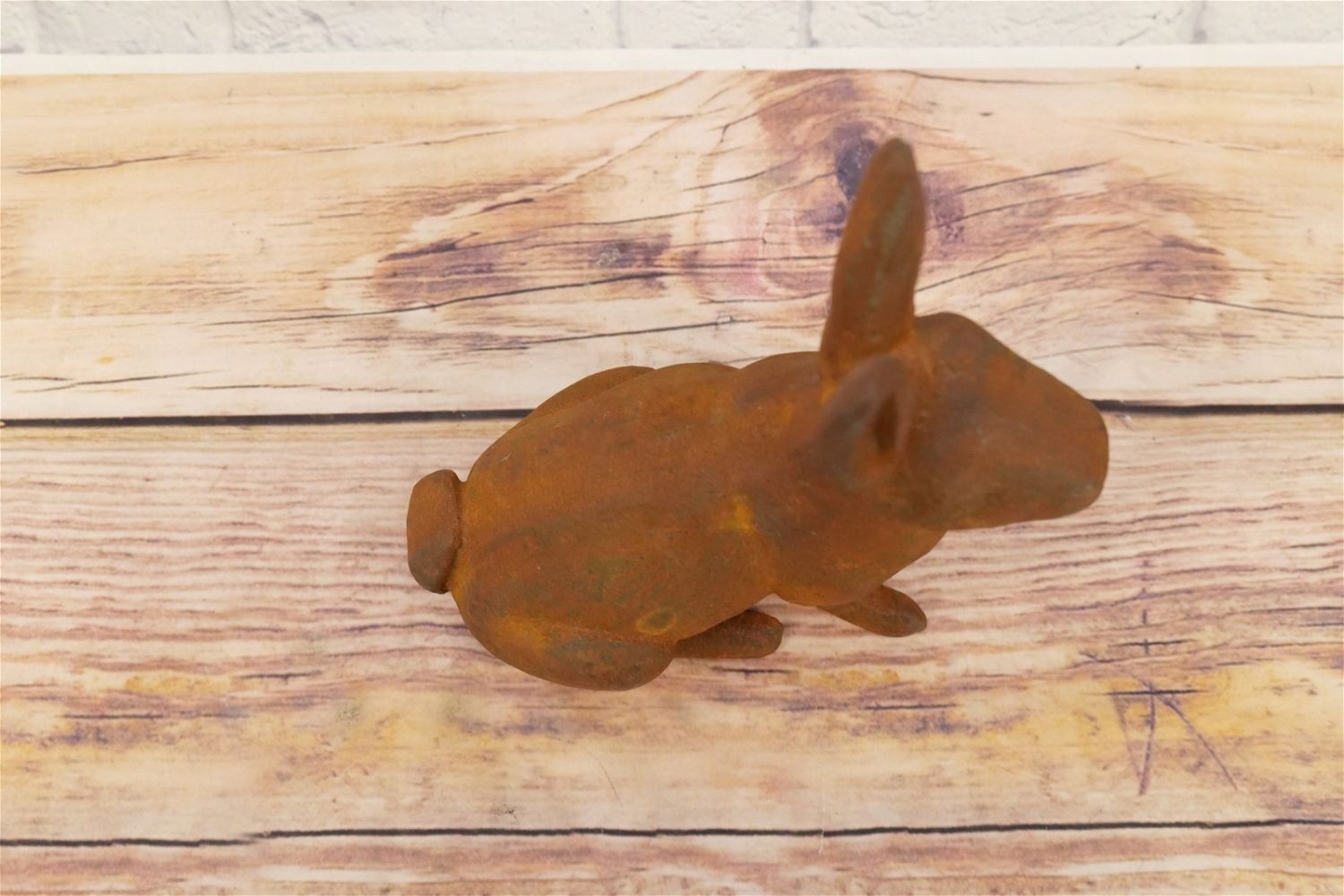 Cast Iron Bunny Rabbit. Measures 11" tall x 10" wide. All invoices must be paid within 24 hours of the sale. We offer multiple shipping options, please read the terms as they have changed. We also offer Pick-Ups Thursday, Friday, Saturday, and Monday immediately following the sale. BY APPOINTMENT ONLY. PLEASE READ THE NEW TERMS!!!