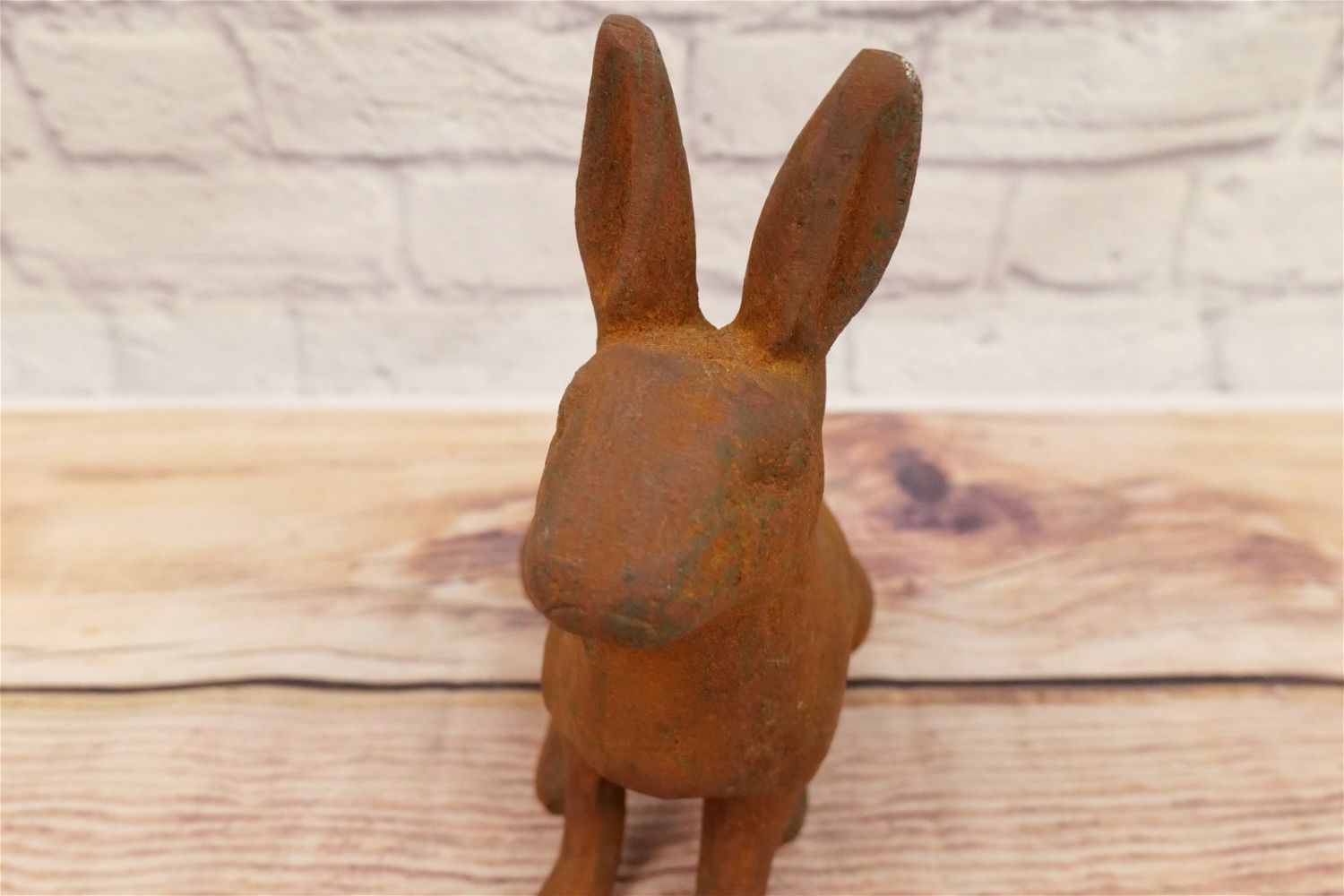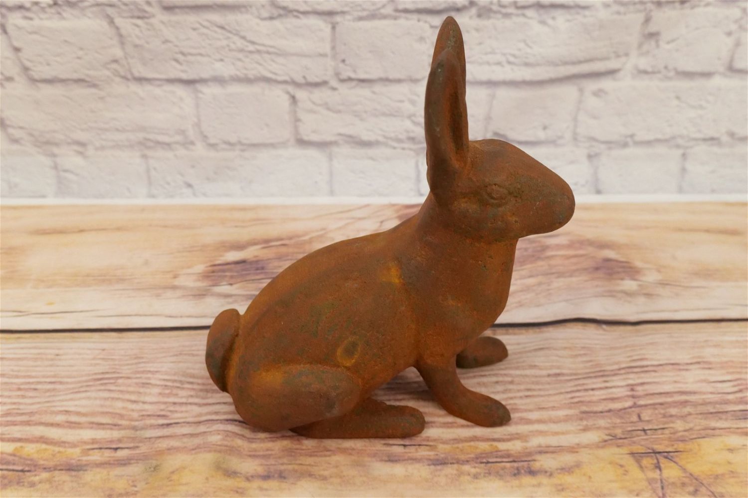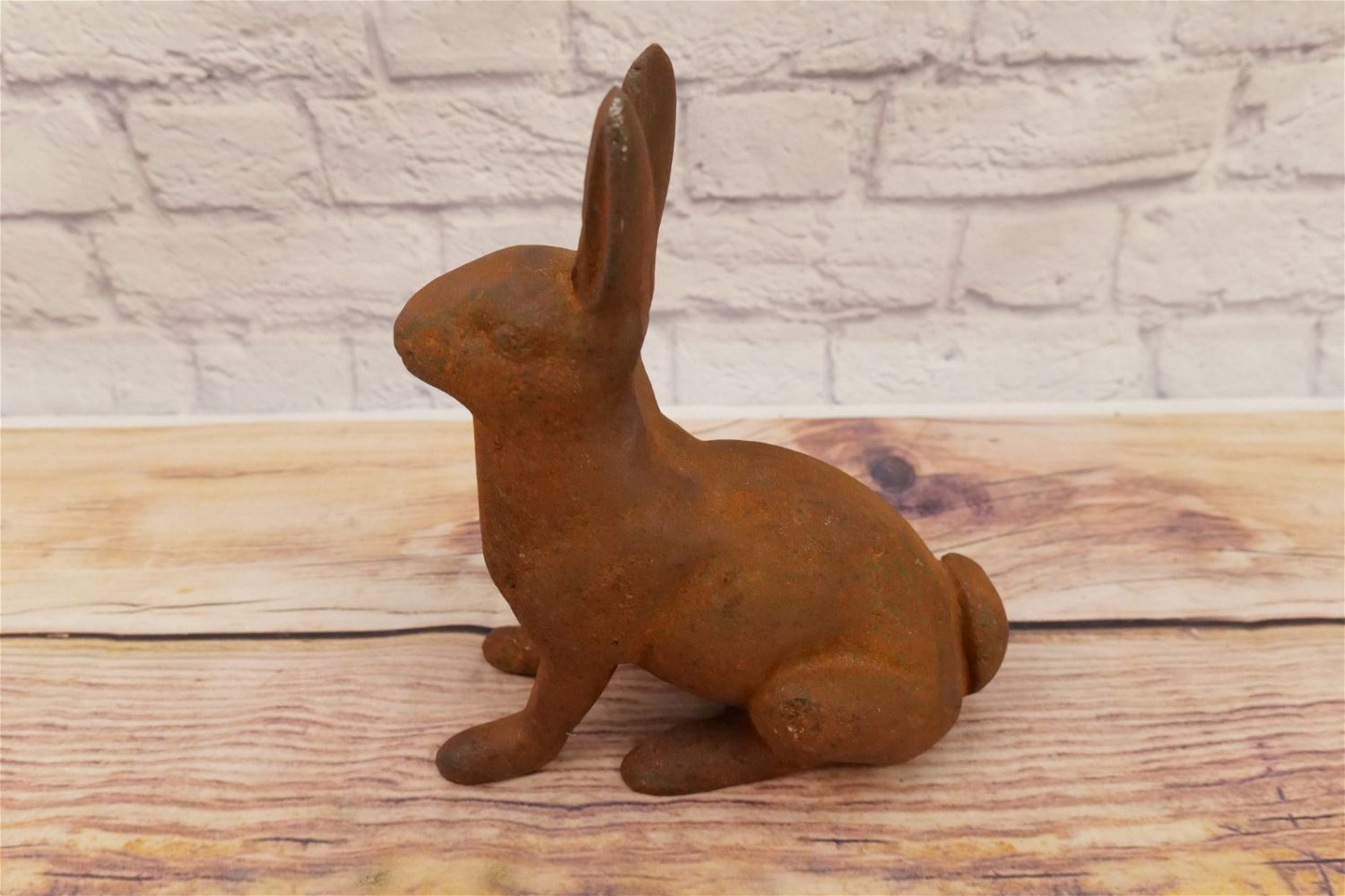Cast Iron Bunny Rabbit. Measures 11" tall x 10" wide. All invoices must be paid within 24 hours of the sale. We offer multiple shipping options, please read the terms as they have changed. We also offer Pick-Ups Thursday, Friday, Saturday, and Monday immediately following the sale. BY APPOINTMENT ONLY. PLEASE READ THE NEW TERMS!!!