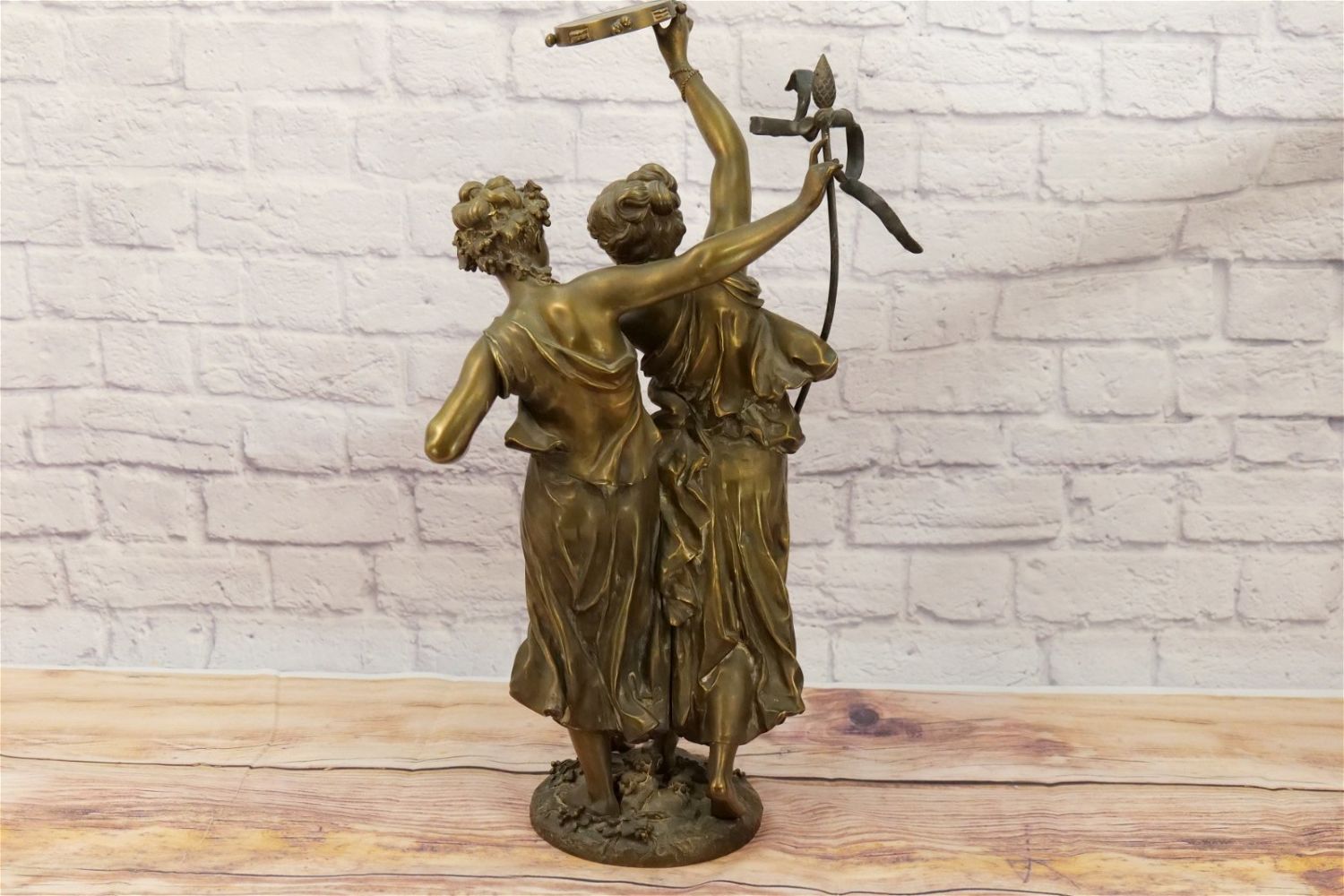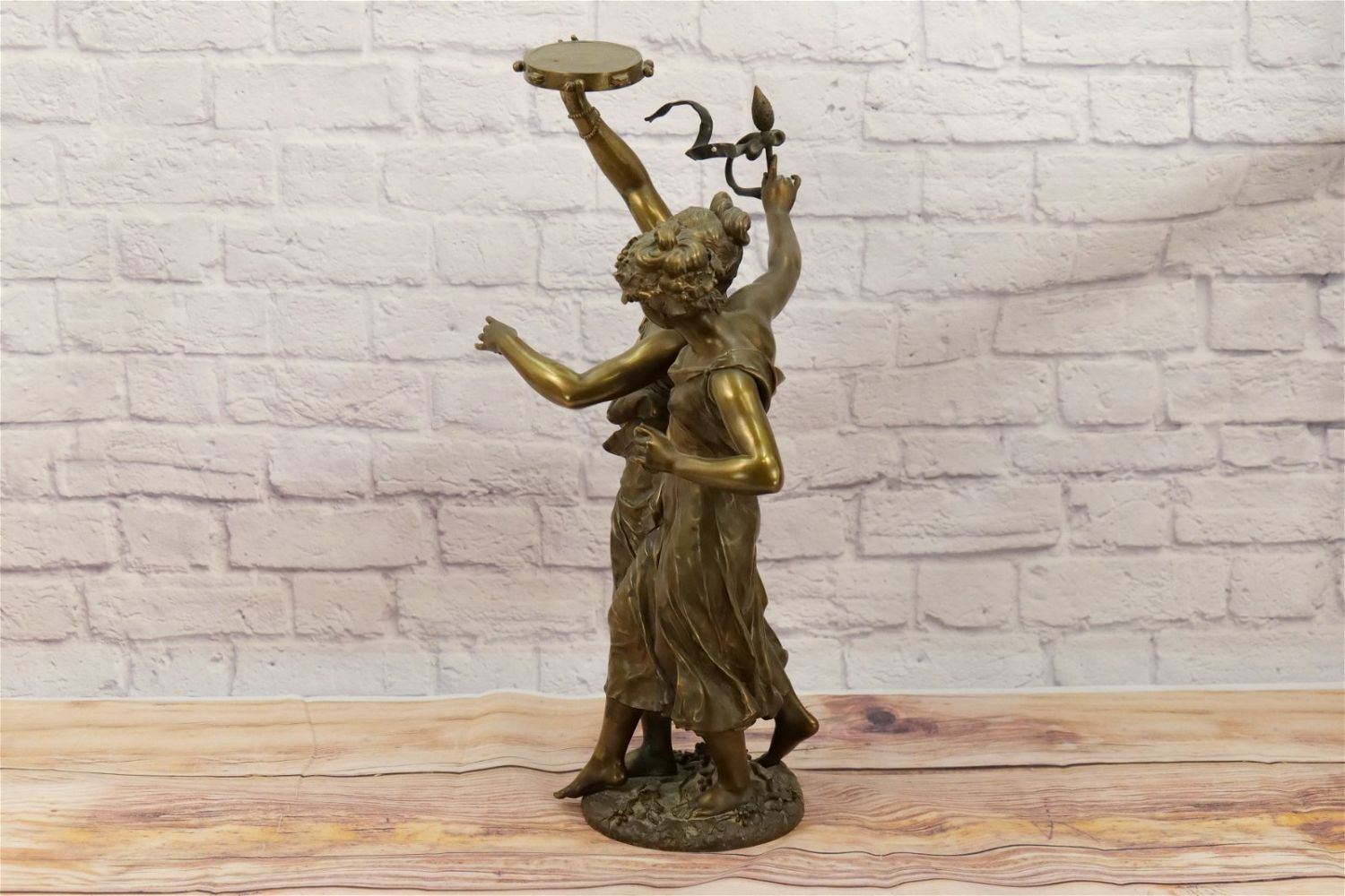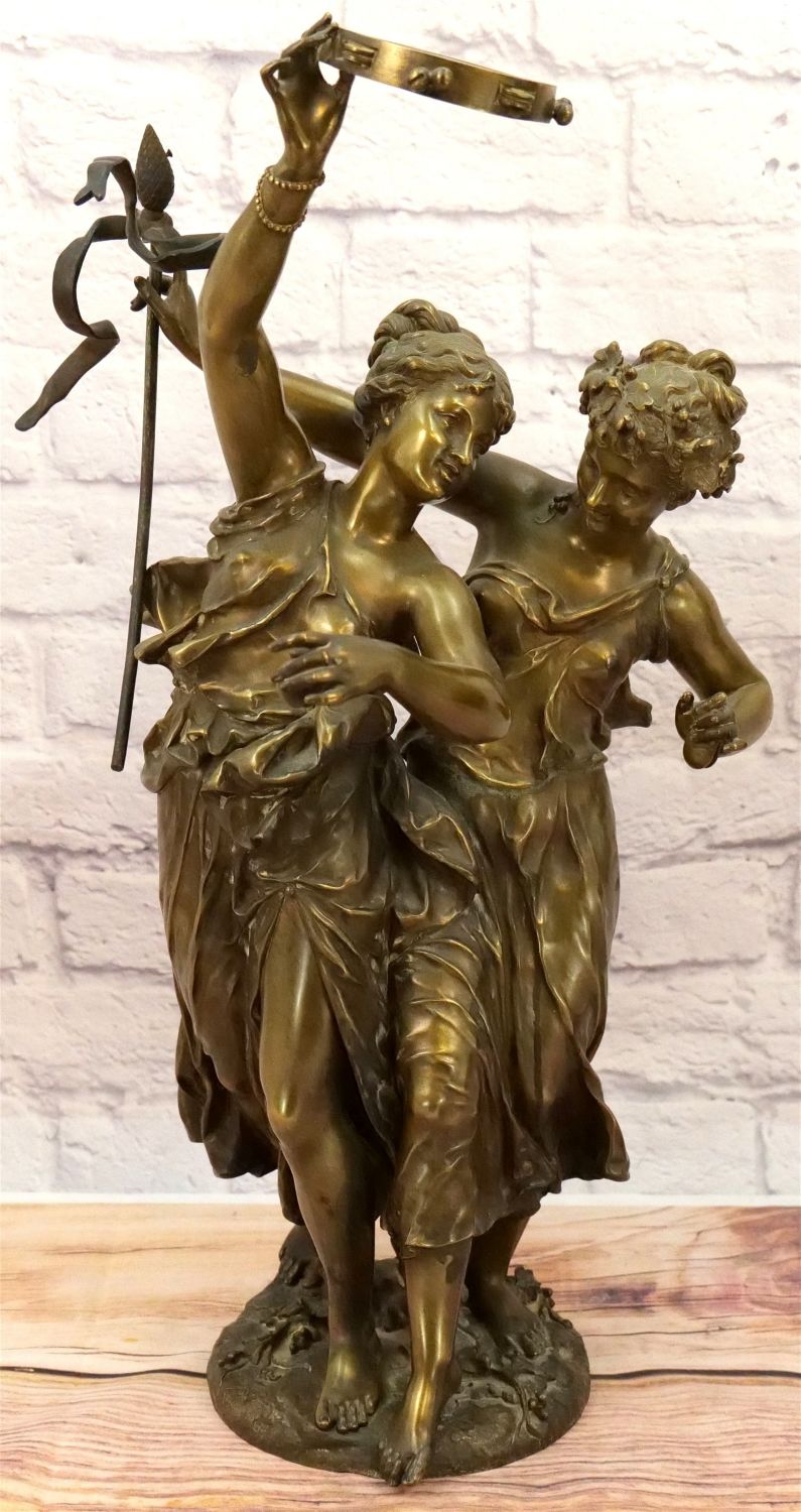 19th Century Bronze Figurine depicting Two Women Dancing with Tambourine. Signed on base. Measures 25" tall x 15" wide. All invoices must be paid within 24 hours of the sale. We offer multiple shipping options, please read the terms as they have changed. We also offer Pick-Ups Thursday, Friday, Saturday, and Monday immediately following the sale. BY APPOINTMENT ONLY. PLEASE READ THE NEW TERMS!!!