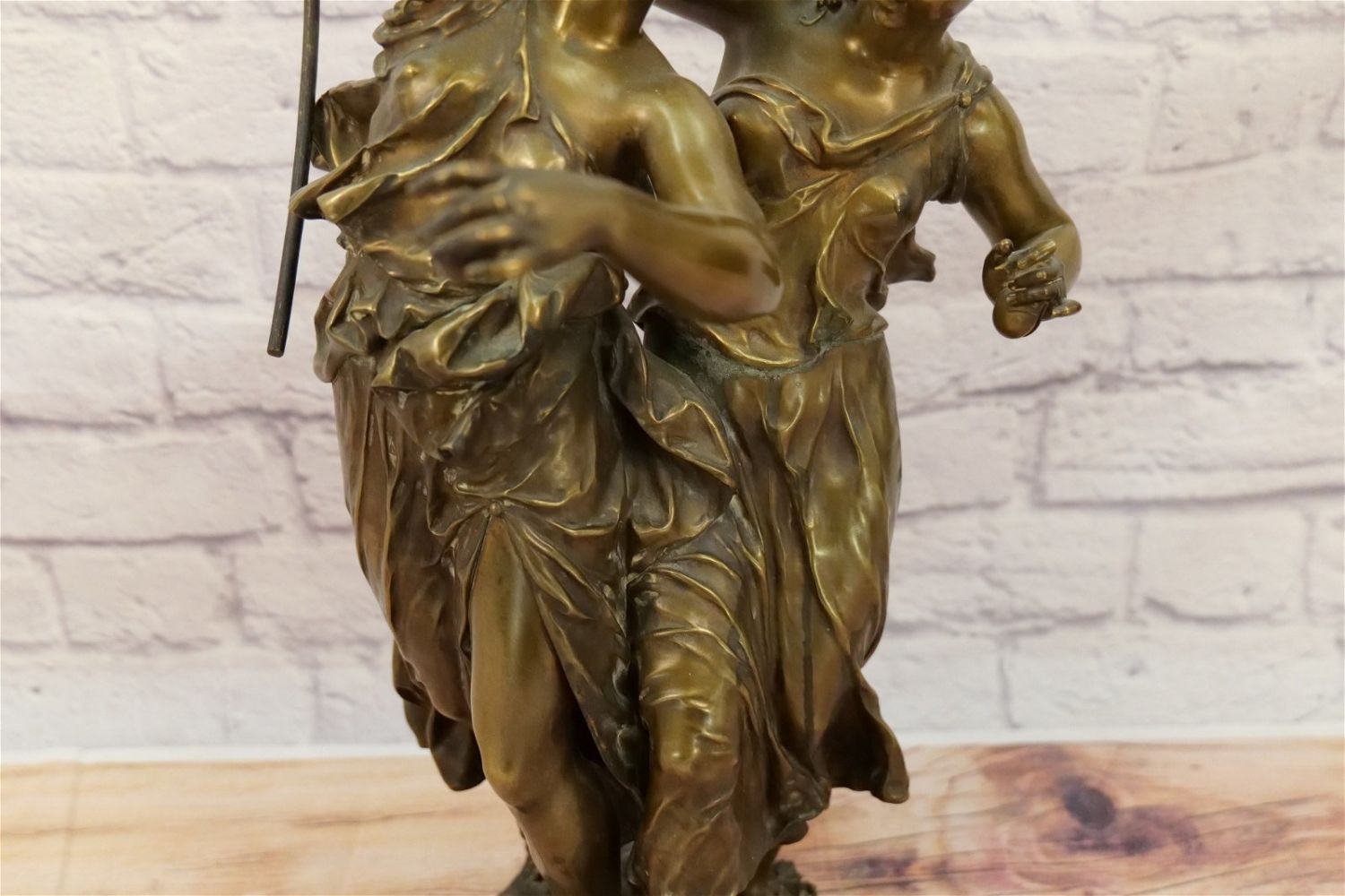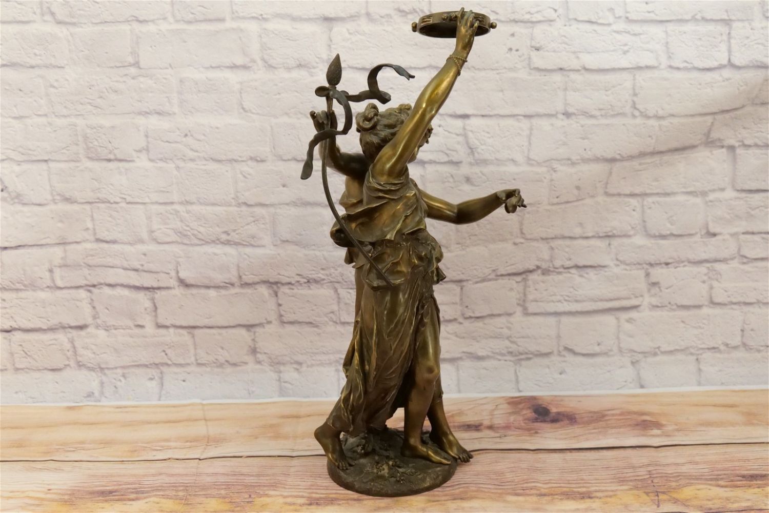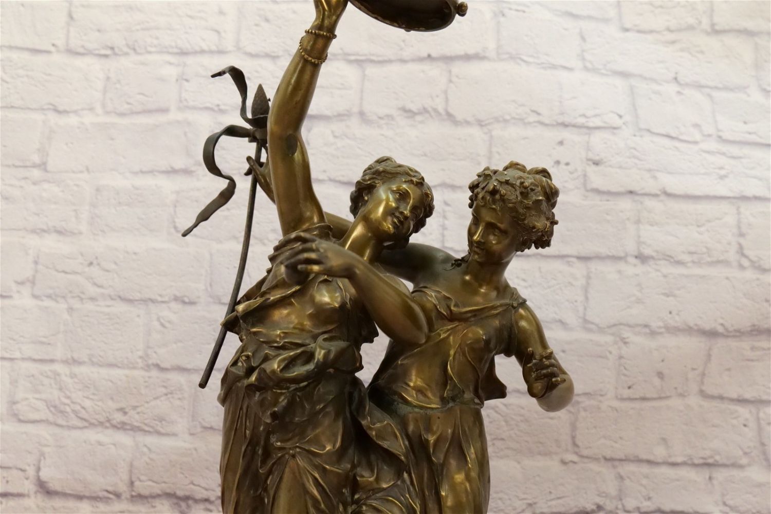 19th Century Bronze Figurine depicting Two Women Dancing with Tambourine. Signed on base. Measures 25" tall x 15" wide. All invoices must be paid within 24 hours of the sale. We offer multiple shipping options, please read the terms as they have changed. We also offer Pick-Ups Thursday, Friday, Saturday, and Monday immediately following the sale. BY APPOINTMENT ONLY. PLEASE READ THE NEW TERMS!!!