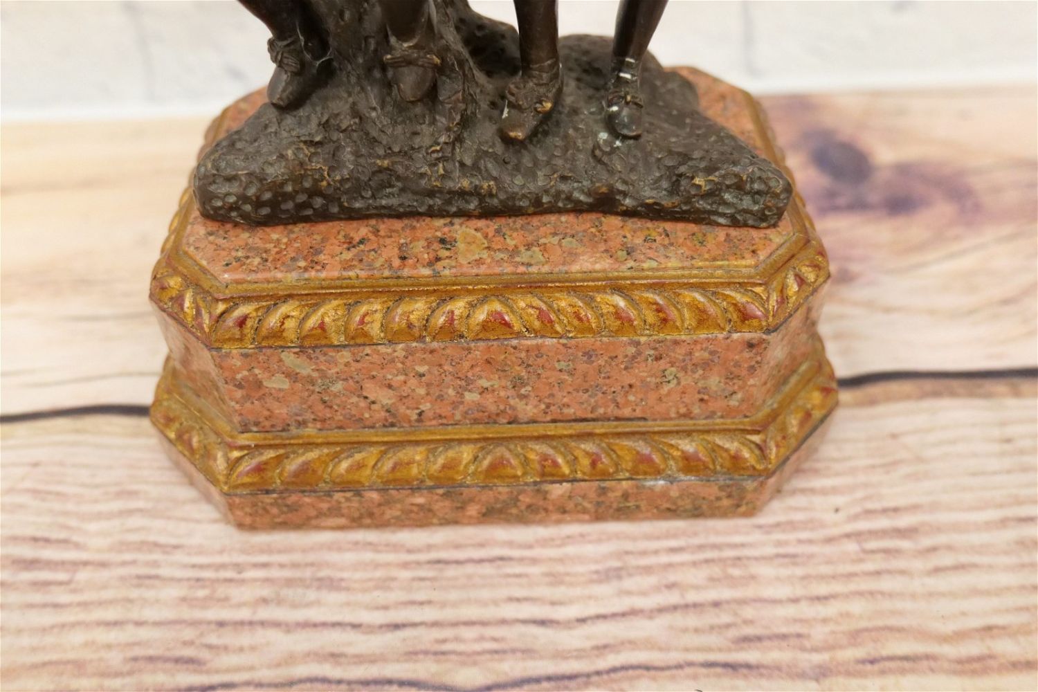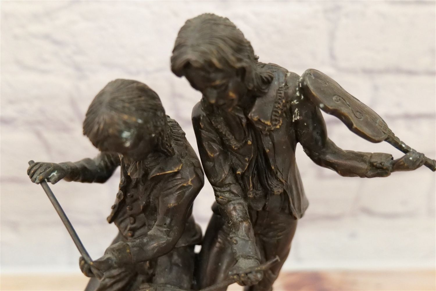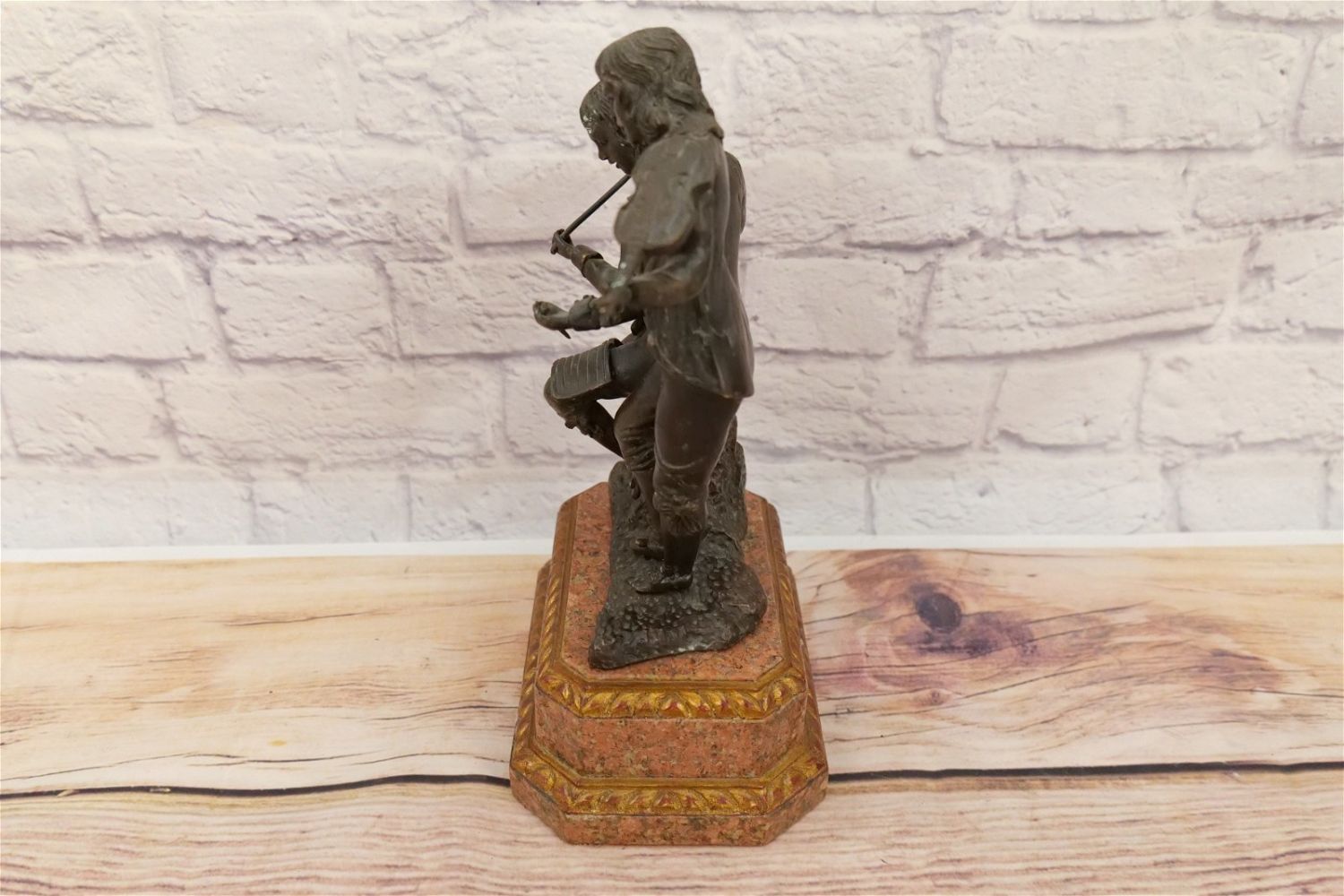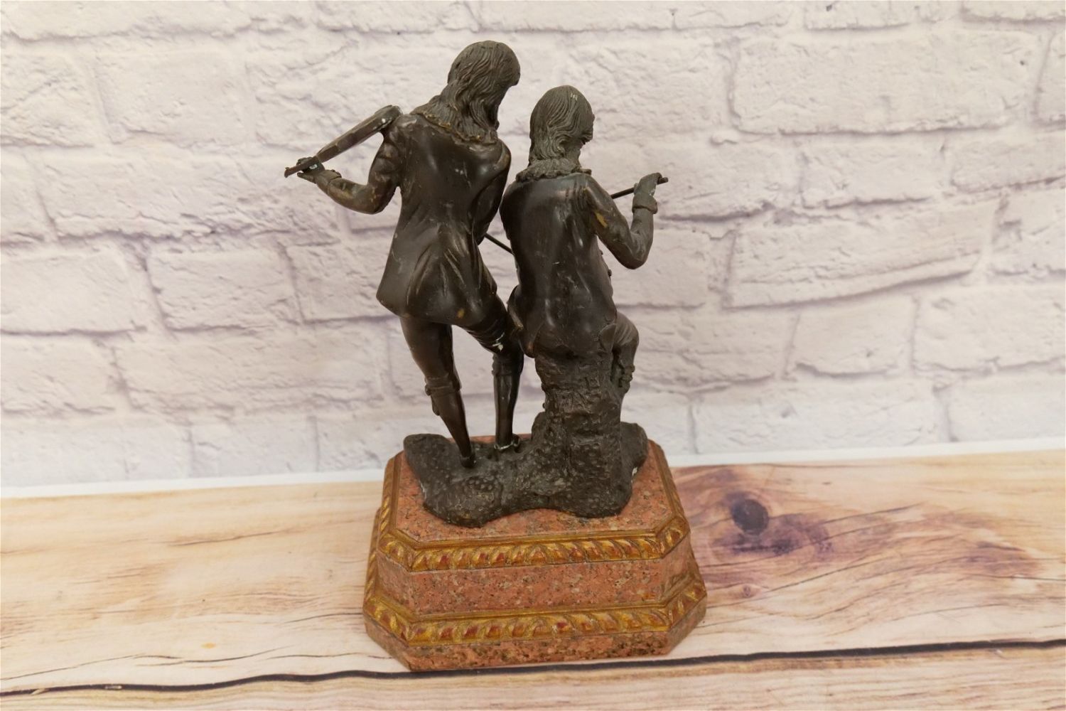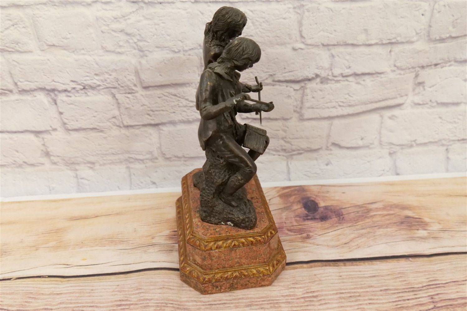 Bronze Statue depicting Music Scene of Man Playing Violin and Gentlemen Holding a Flute. Comes on Marble Base. Measures 14" tall x 9" wide. All invoices must be paid within 24 hours of the sale. We offer multiple shipping options, please read the terms as they have changed. We also offer Pick-Ups Thursday, Friday, Saturday, and Monday immediately following the sale. BY APPOINTMENT ONLY. PLEASE READ THE NEW TERMS!!!