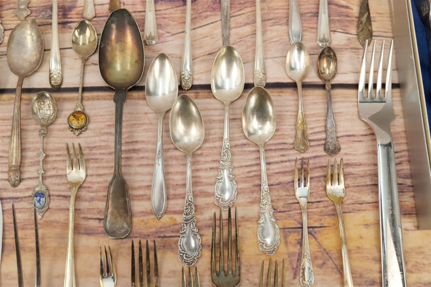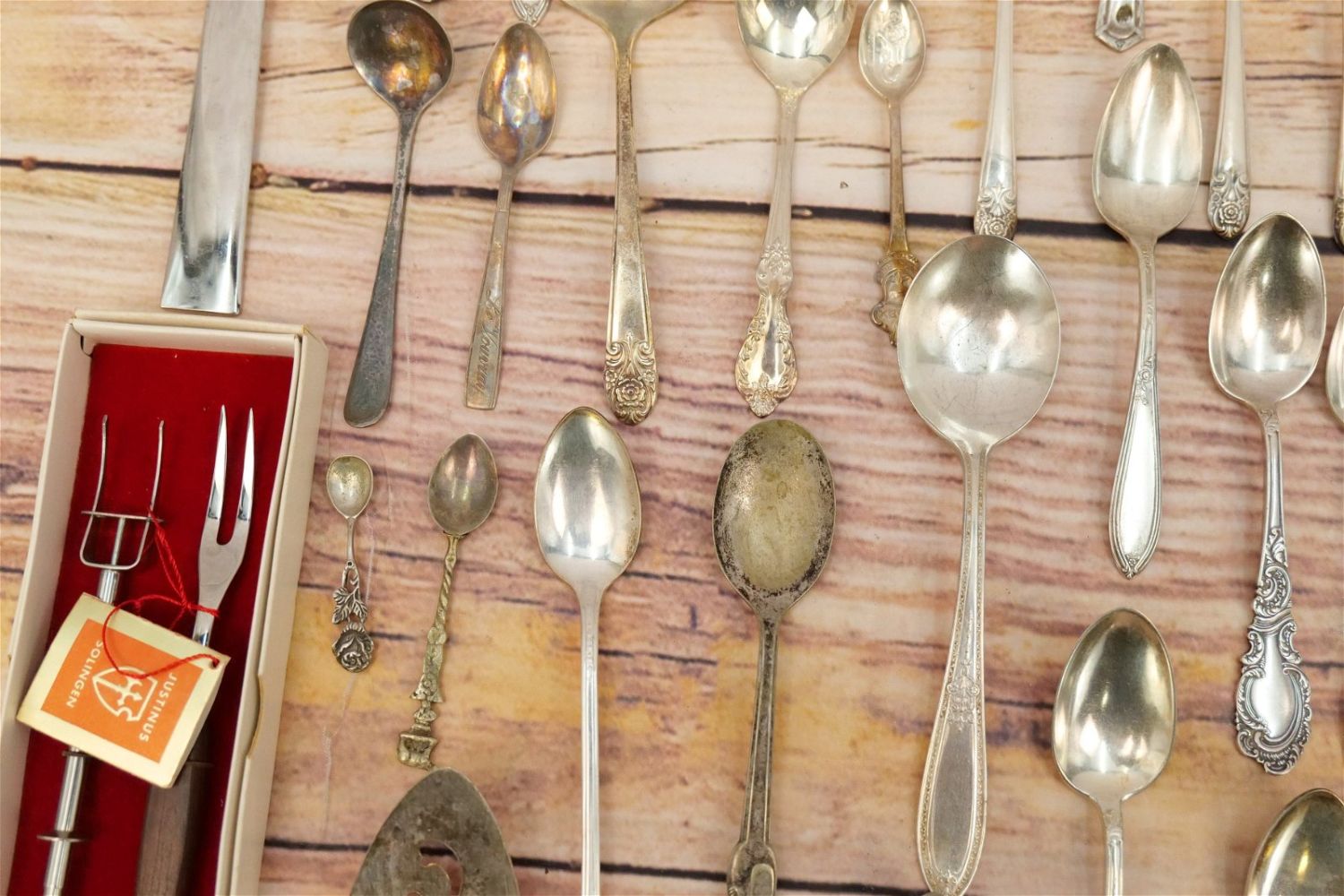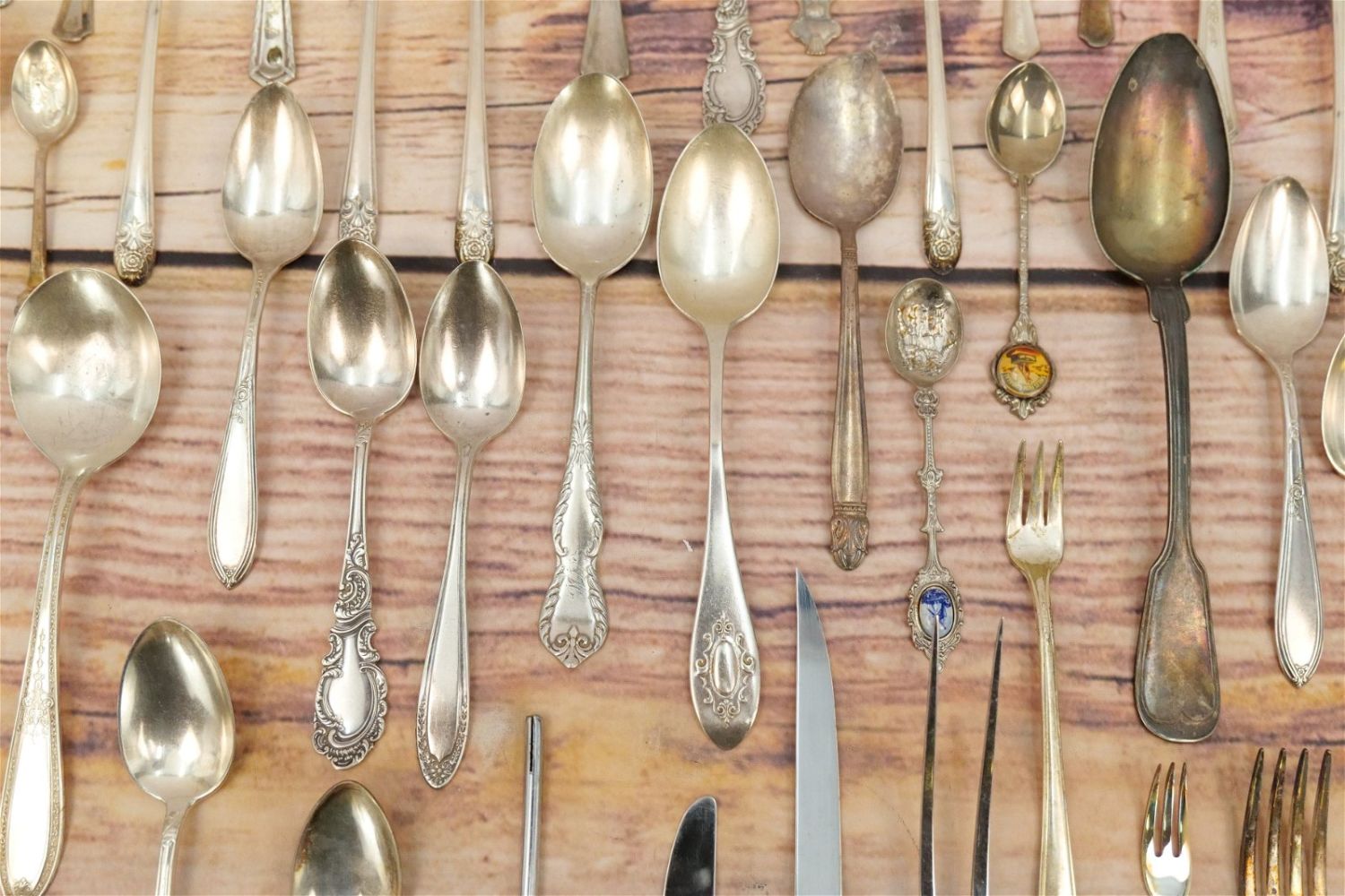 Group Lot of Silverplate Flatware. Mostly Serving Pieces and Souvenir Spoons. Various Makers. All invoices must be paid within 24 hours of the sale. We offer multiple shipping options, please read the terms as they have changed. We also offer Pick-Ups Thursday, Friday, Saturday, and Monday immediately following the sale. BY APPOINTMENT ONLY. PLEASE READ THE NEW TERMS!!!