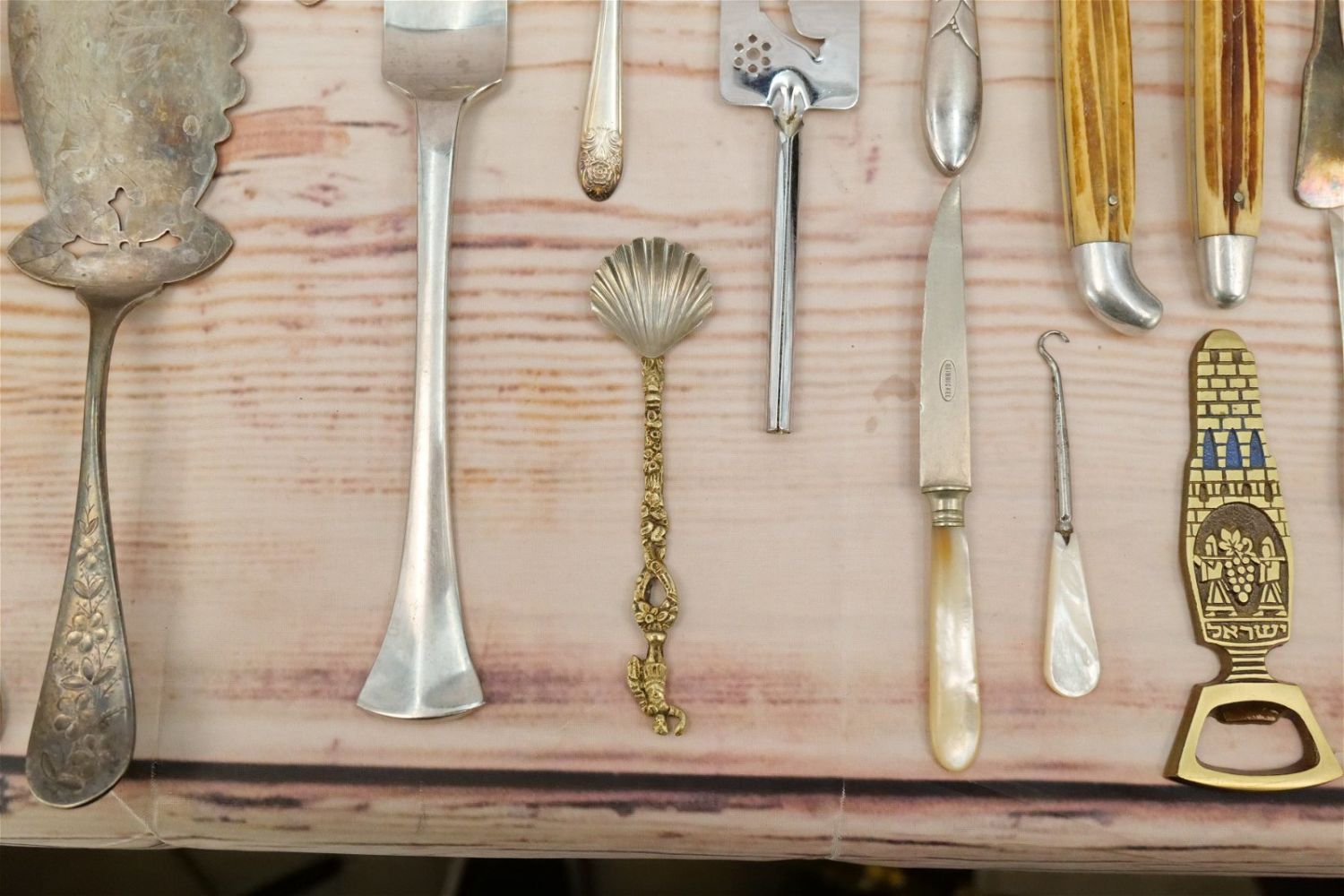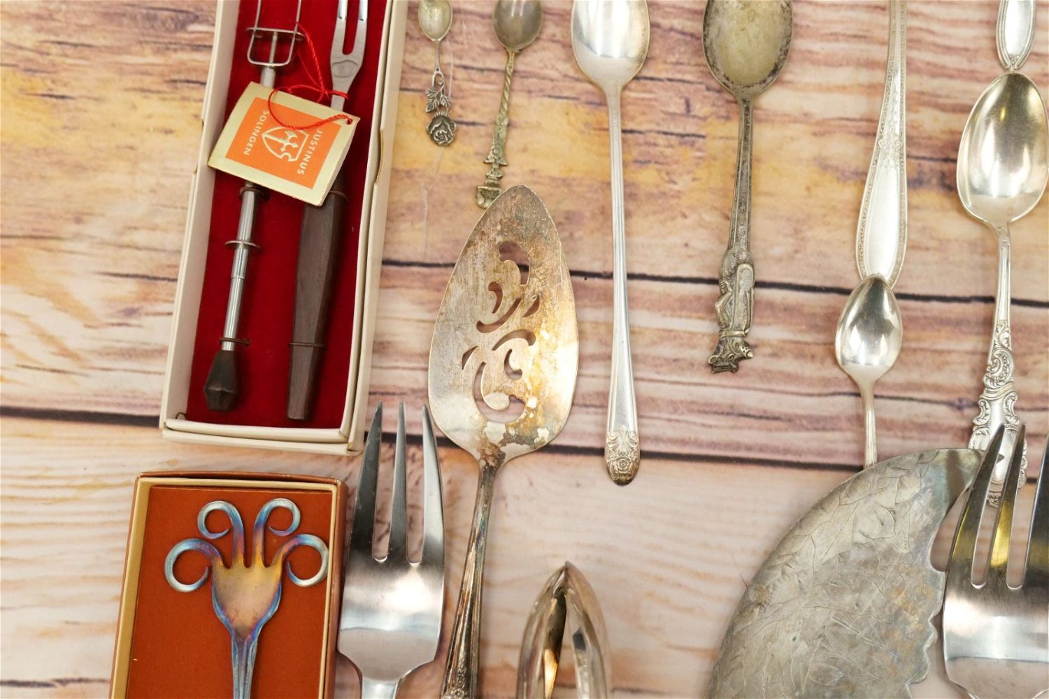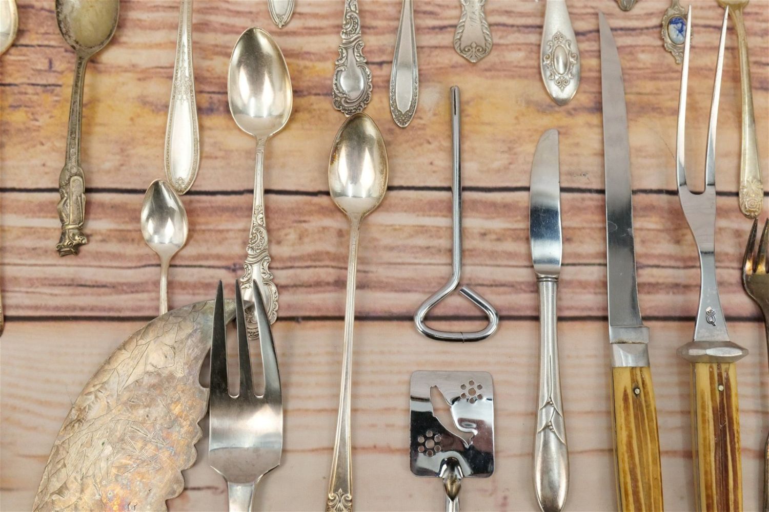 Group Lot of Silverplate Flatware. Mostly Serving Pieces and Souvenir Spoons. Various Makers. All invoices must be paid within 24 hours of the sale. We offer multiple shipping options, please read the terms as they have changed. We also offer Pick-Ups Thursday, Friday, Saturday, and Monday immediately following the sale. BY APPOINTMENT ONLY. PLEASE READ THE NEW TERMS!!!