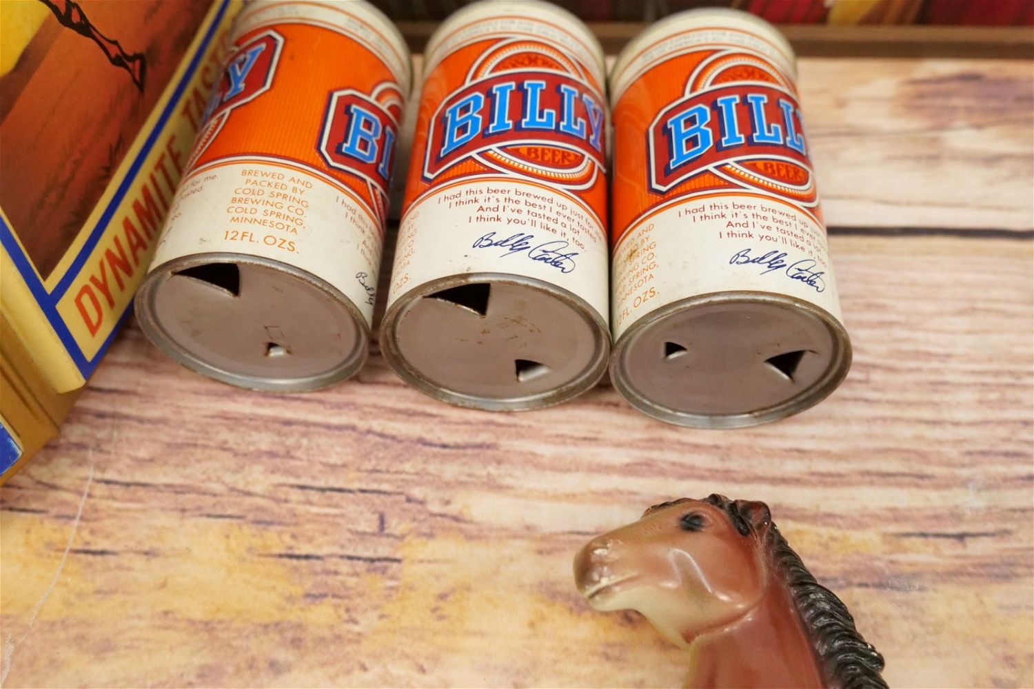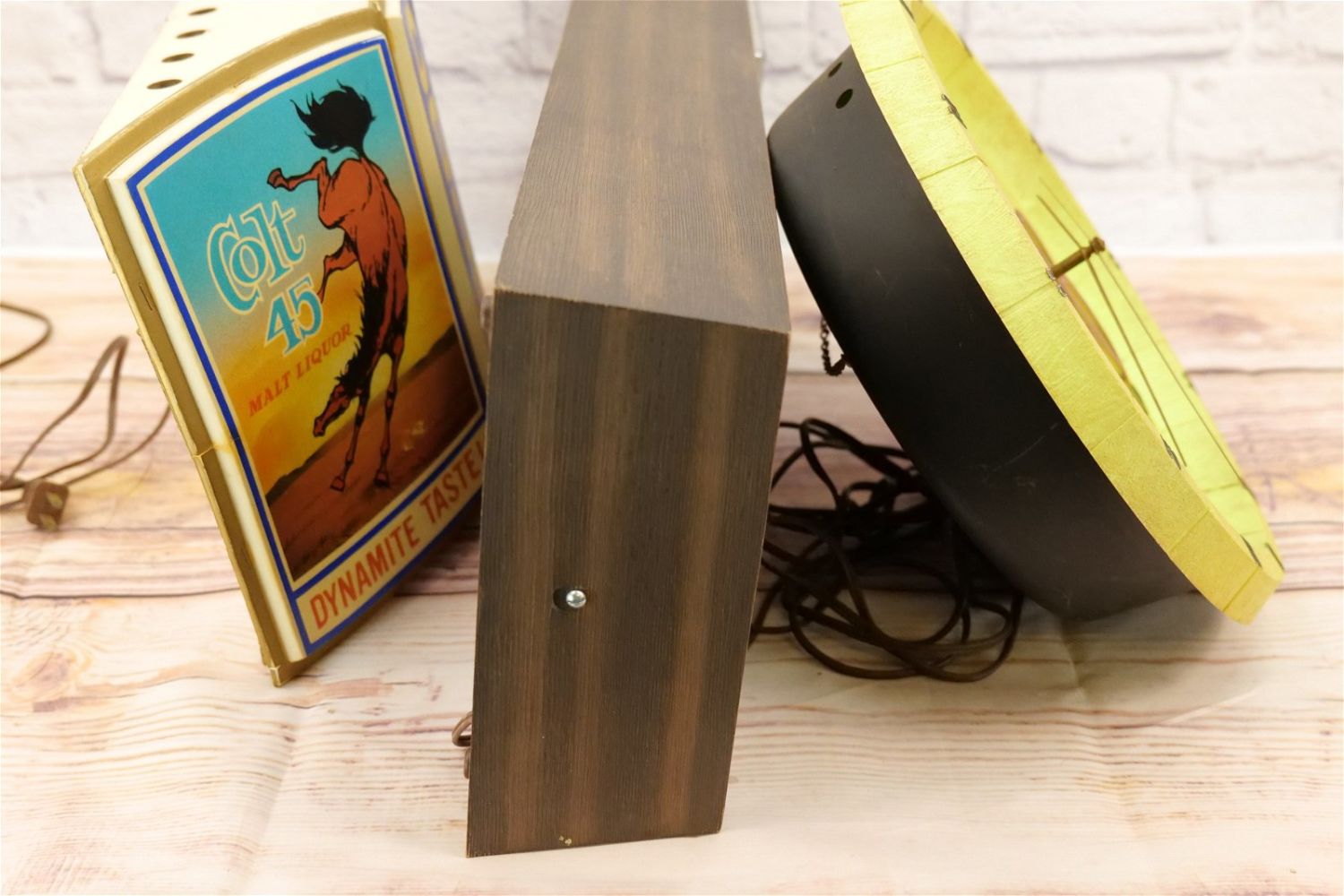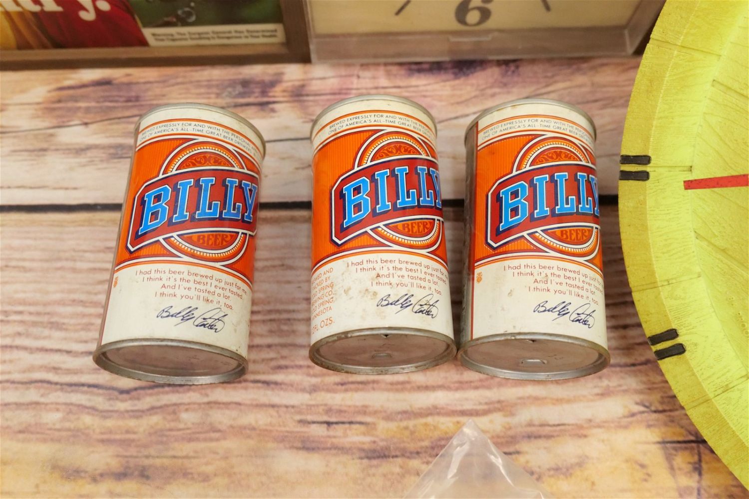 Group Lot of Advertising including Come to Marlboro Cigarette Clock – Tested and Working, J&B Clock – Clock Runs – Needs Lightbulb, Colt 45 Lighted Advertisement – Untested, and Rolling Rock Premium Beer Chalkware Barback Sign, Carlings Red Ale Sign, and 6 Pack of Vintage Billy Beer Tin Cans. Marlboro Clock measures 10" tall x 25" wide. All invoices must be paid within 24 hours of the sale. We offer multiple shipping options, please read the terms as they have changed. We also offer Pick-Ups Thursday, Friday, Saturday, and Monday immediately following the sale. BY APPOINTMENT ONLY. PLEASE READ THE NEW TERMS!!!