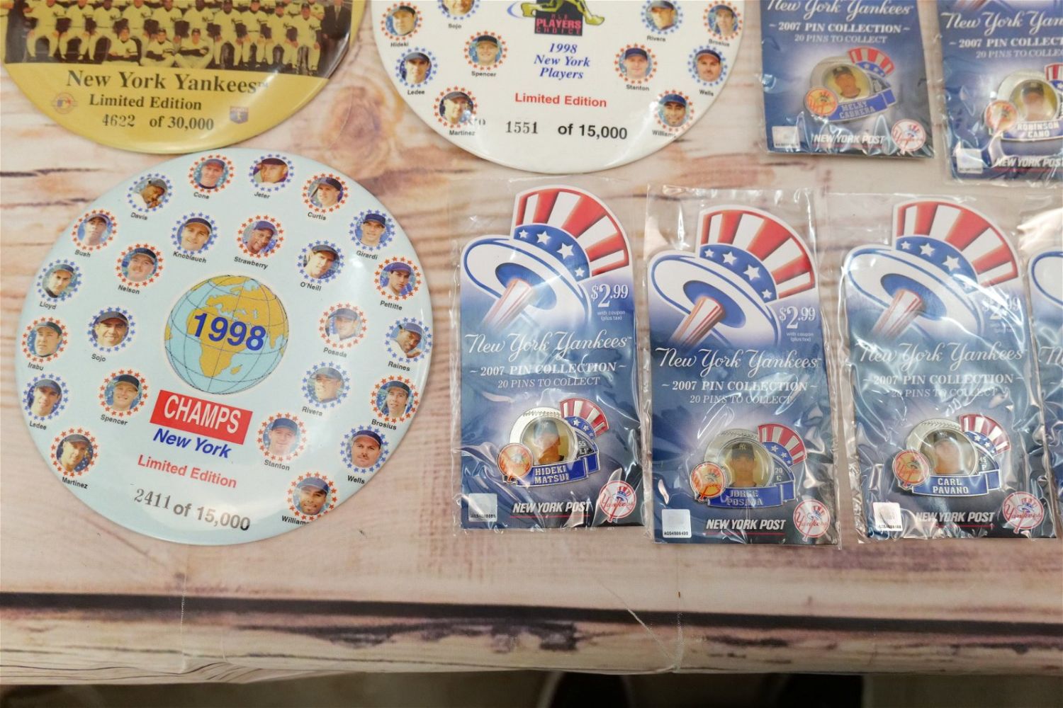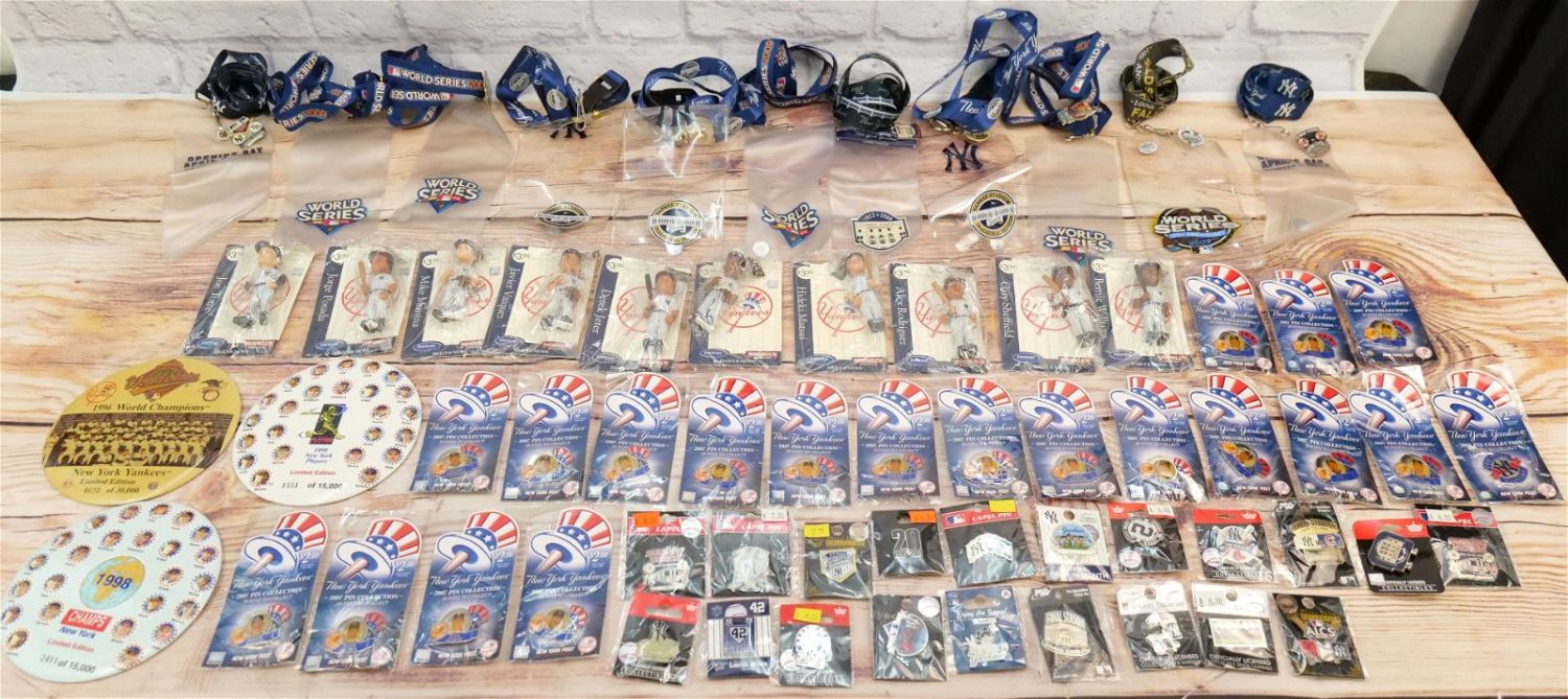 Lot of New York Yankees Memorabilia including Lanyards – Some from various World Series Games, Ticket Holders with a couple special pins attached to the holders, Daily News Forever Collectibles Ornaments, Pins from The New York Post 2007 Pin Collection and other various pins. Most pins are in new condition. All invoices must be paid within 24 hours of the sale. We offer multiple shipping options, please read the terms as they have changed. We also offer Pick-Ups Thursday, Friday, Saturday, and Monday immediately following the sale. BY APPOINTMENT ONLY. PLEASE READ THE NEW TERMS!!!