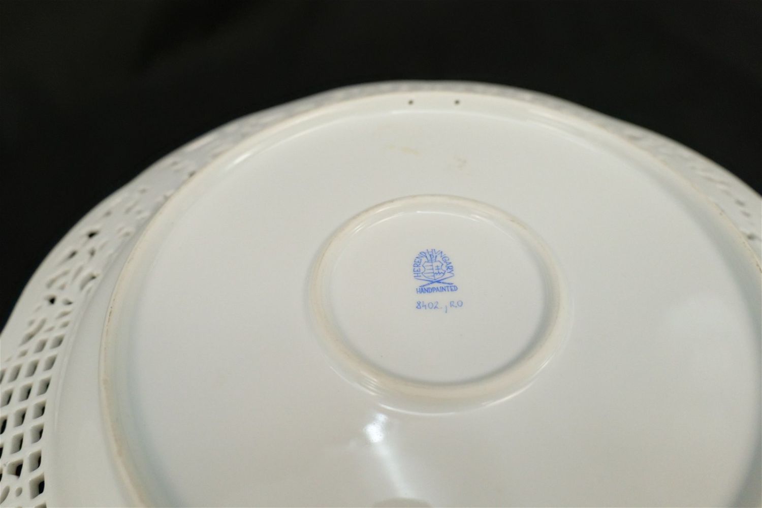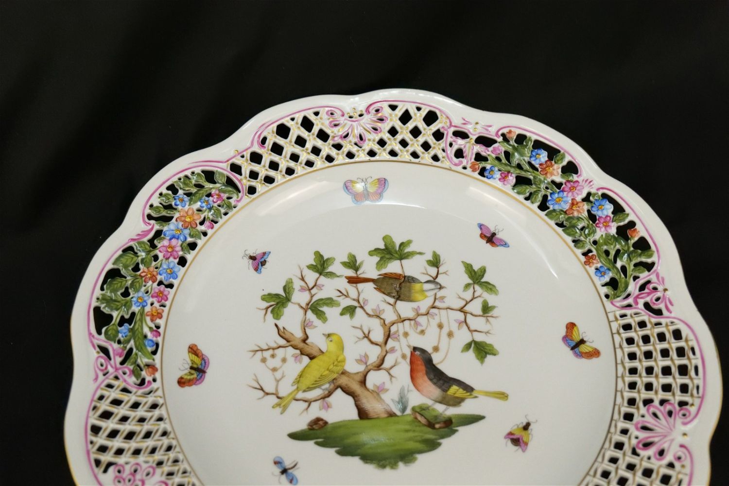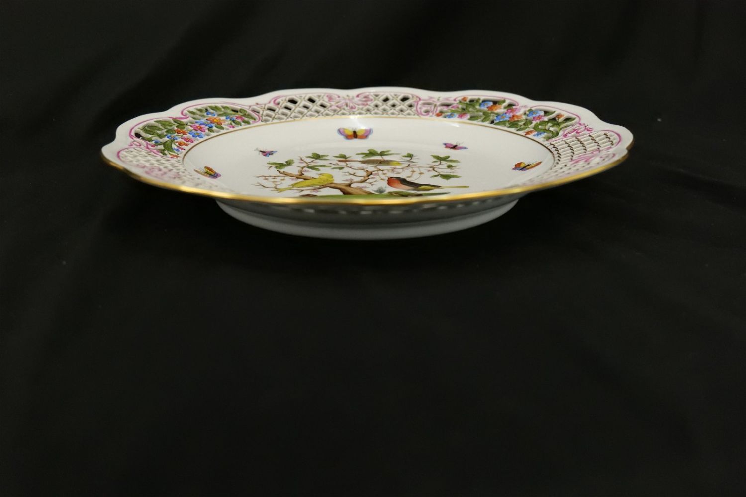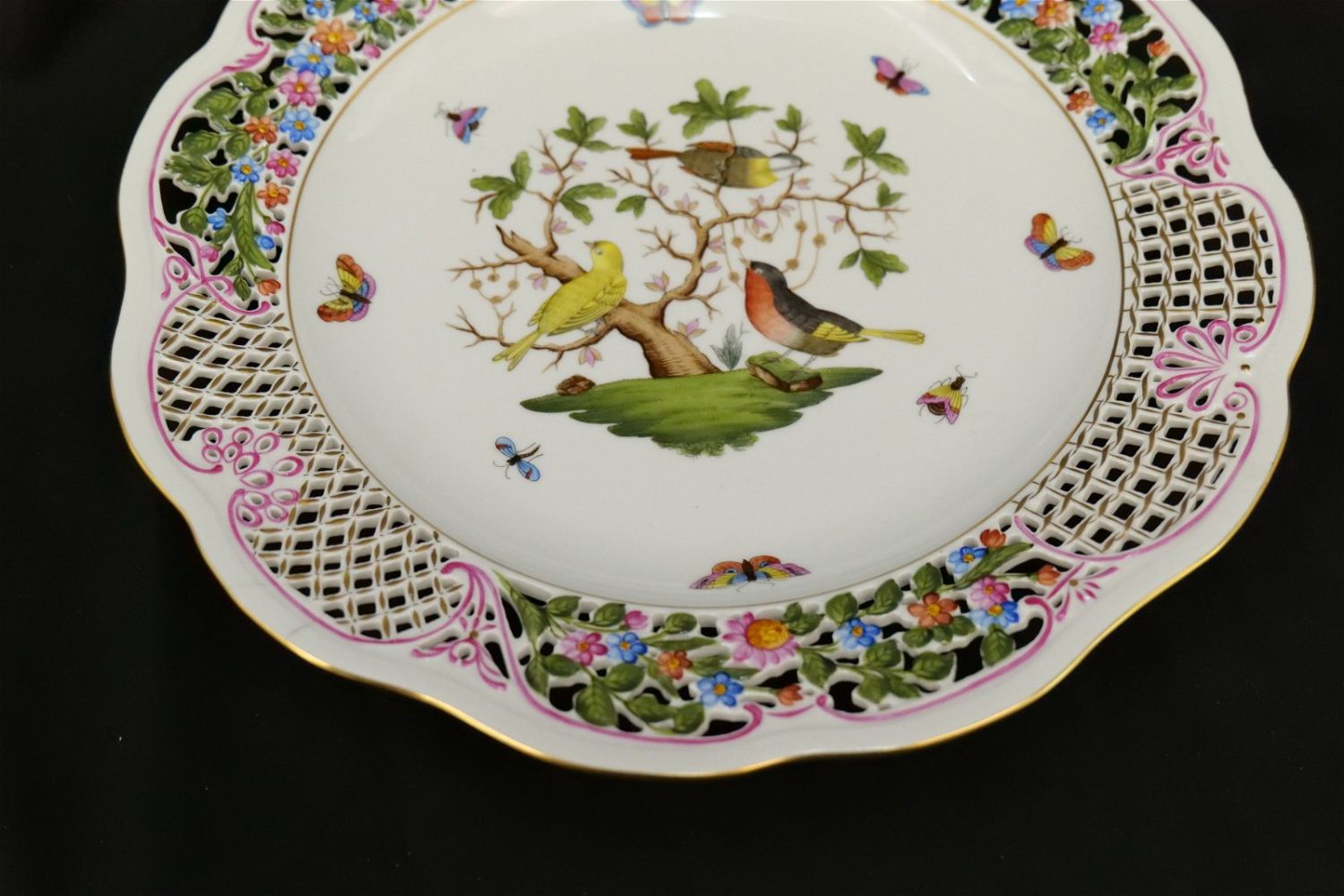 Herend 13″ Rothchild Serving Plate with Reticulated Open Piecework Border. #3402. Measures 13″ diameter. IT HAS A CRACK AND STRESS MARK ABOUT 1 INCH LONG NEAR THE OPEN PIERCE WORK ON THE RIGHT. All invoices must be paid within 24 hours of the sale. We offer multiple shipping options, please read the terms as they have changed. We also offer Pick-Ups Thursday, Friday, Saturday, and Monday immediately following the sale. BY APPOINTMENT ONLY. PLEASE READ THE NEW TERMS!!!