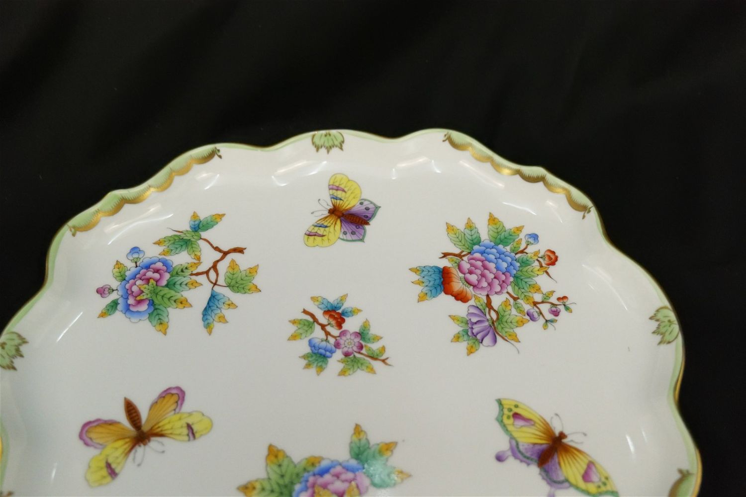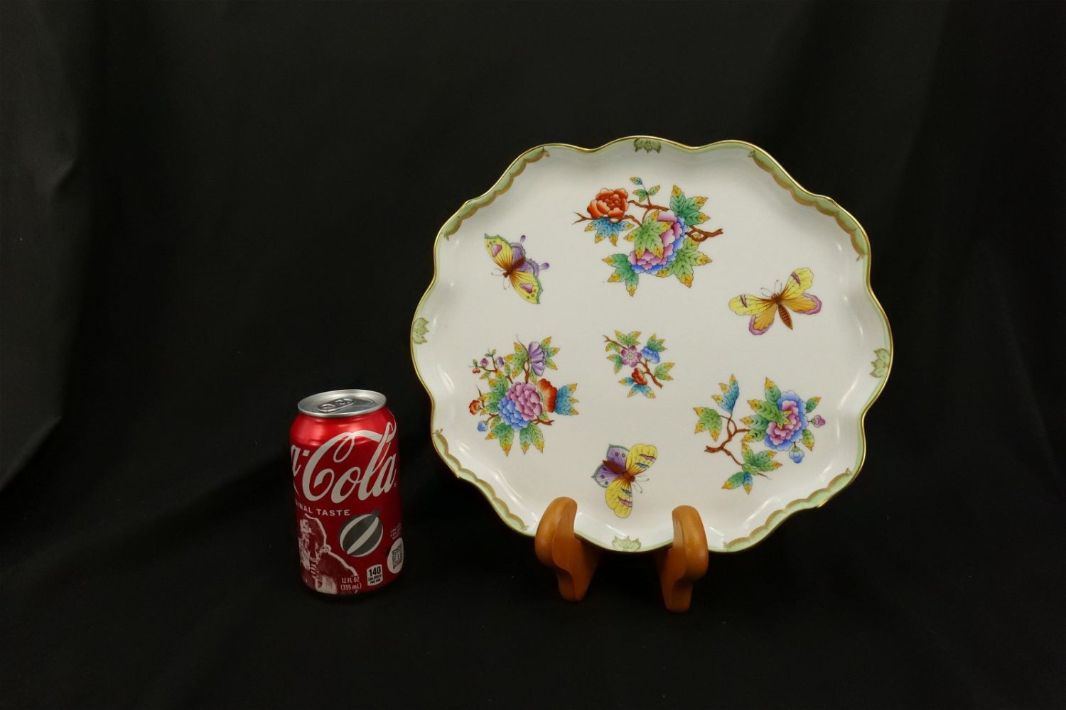 Herend 11.5" Queen Victoria Serving Tray with Scalloped Edge Design. Measures 11" x 10". All invoices must be paid within 24 hours of the sale. We offer multiple shipping options, please read the terms as they have changed. We also offer Pick-Ups Thursday, Friday, Saturday, and Monday immediately following the sale. BY APPOINTMENT ONLY. PLEASE READ THE NEW TERMS!!!