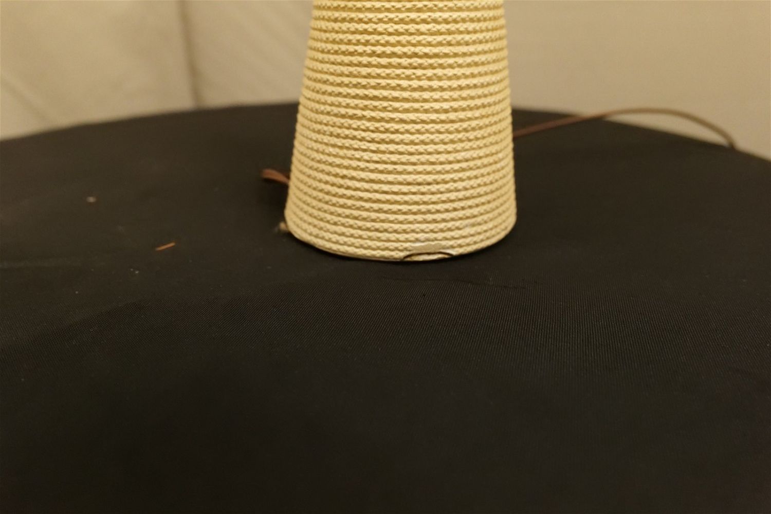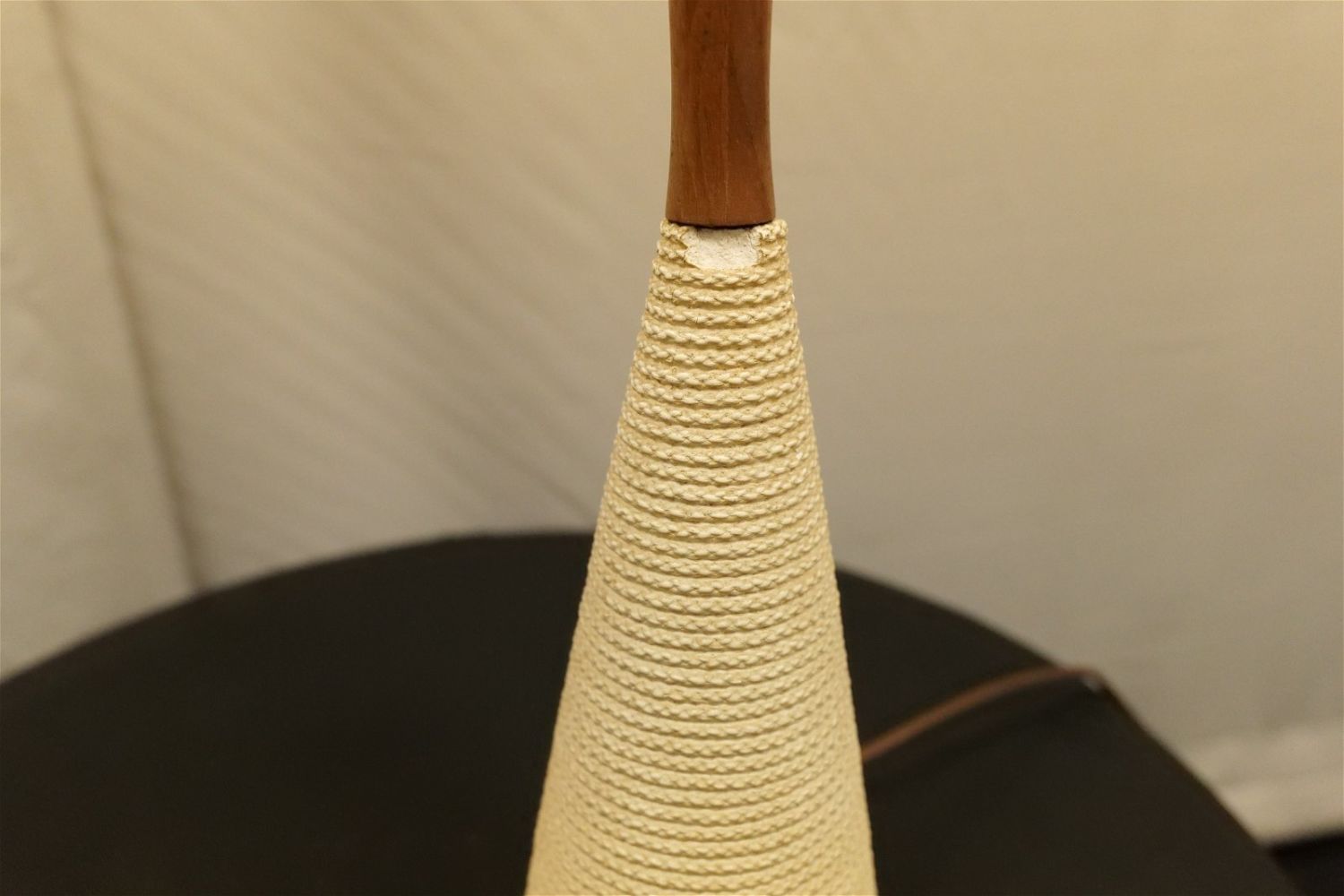 Mid Century Modern Table Lamp, Does have some chipping and repairs. Measures 27" tall with a 15" shade. All invoices must be paid within 24 hours of the sale. We offer multiple shipping options, please read the terms as they have changed. We also offer Pick-Ups Thursday, Friday, Saturday, and Monday immediately following the sale. BY APPOINTMENT ONLY. PLEASE READ THE NEW TERMS!!!