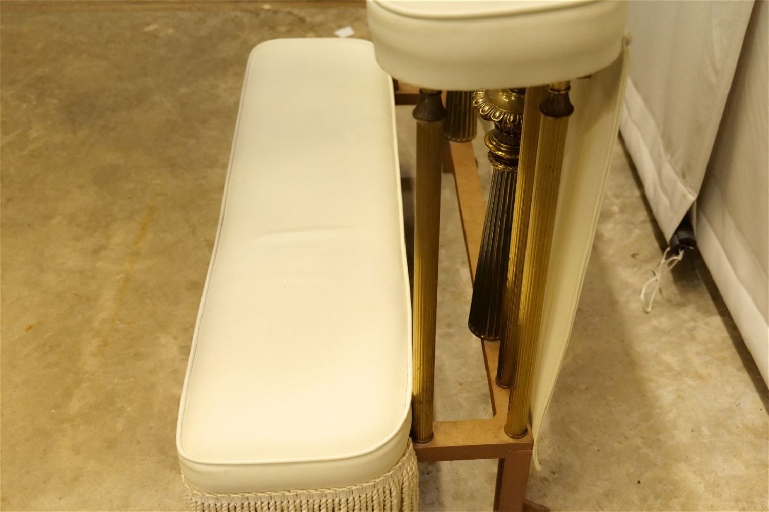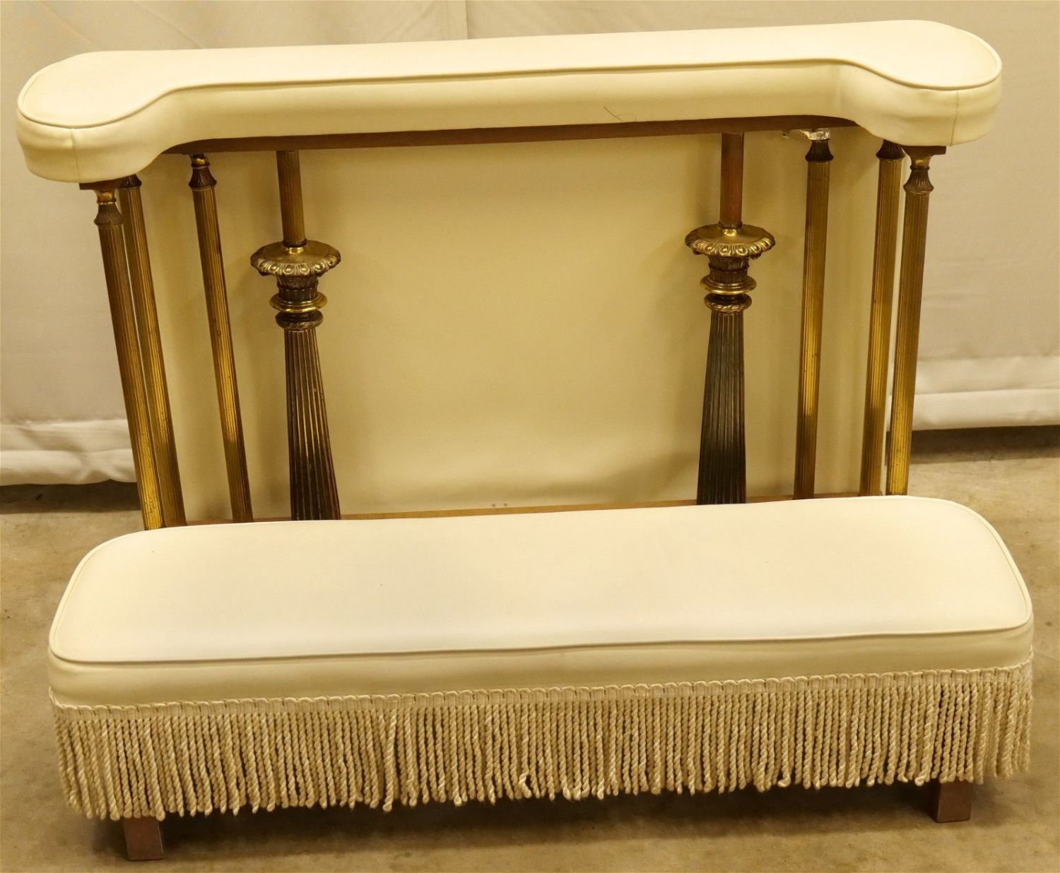 Brass and Mixed Metal Prayer Kneeler. Has leather cushions. Measures 31" tall x 42" wide x 18" deep. All invoices must be paid within 24 hours of the sale. We offer multiple shipping options, please read the terms as they have changed. We also offer Pick-Ups Thursday, Friday, Saturday, and Monday immediately following the sale. BY APPOINTMENT ONLY. PLEASE READ THE NEW TERMS!!!