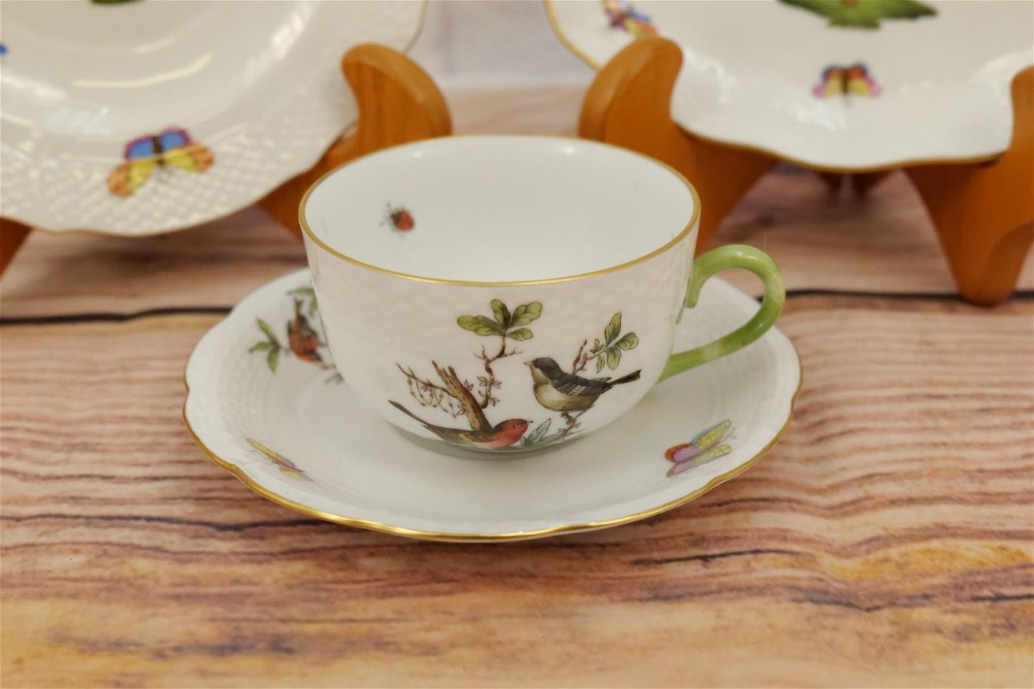 Group Lot of Herend Rothchild Dinnerware including Teacup/Saucer/Underplate, and 7.5" Serving Dish. All invoices must be paid within 24 hours of the sale. We offer multiple shipping options, please read the terms as they have changed. We also offer Pick-Ups Thursday, Friday, Saturday, and Monday immediately following the sale. BY APPOINTMENT ONLY. PLEASE READ THE NEW TERMS!!!