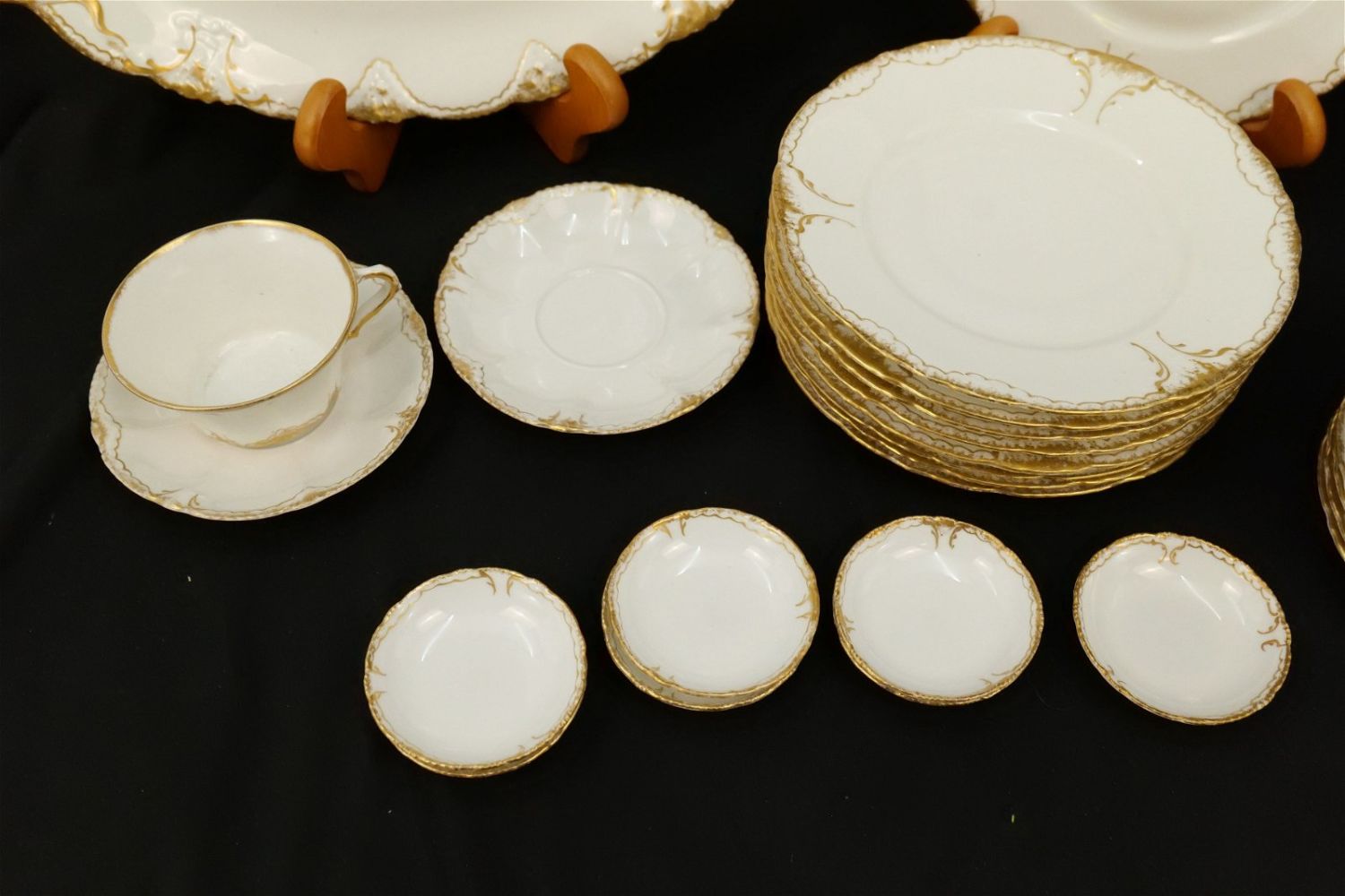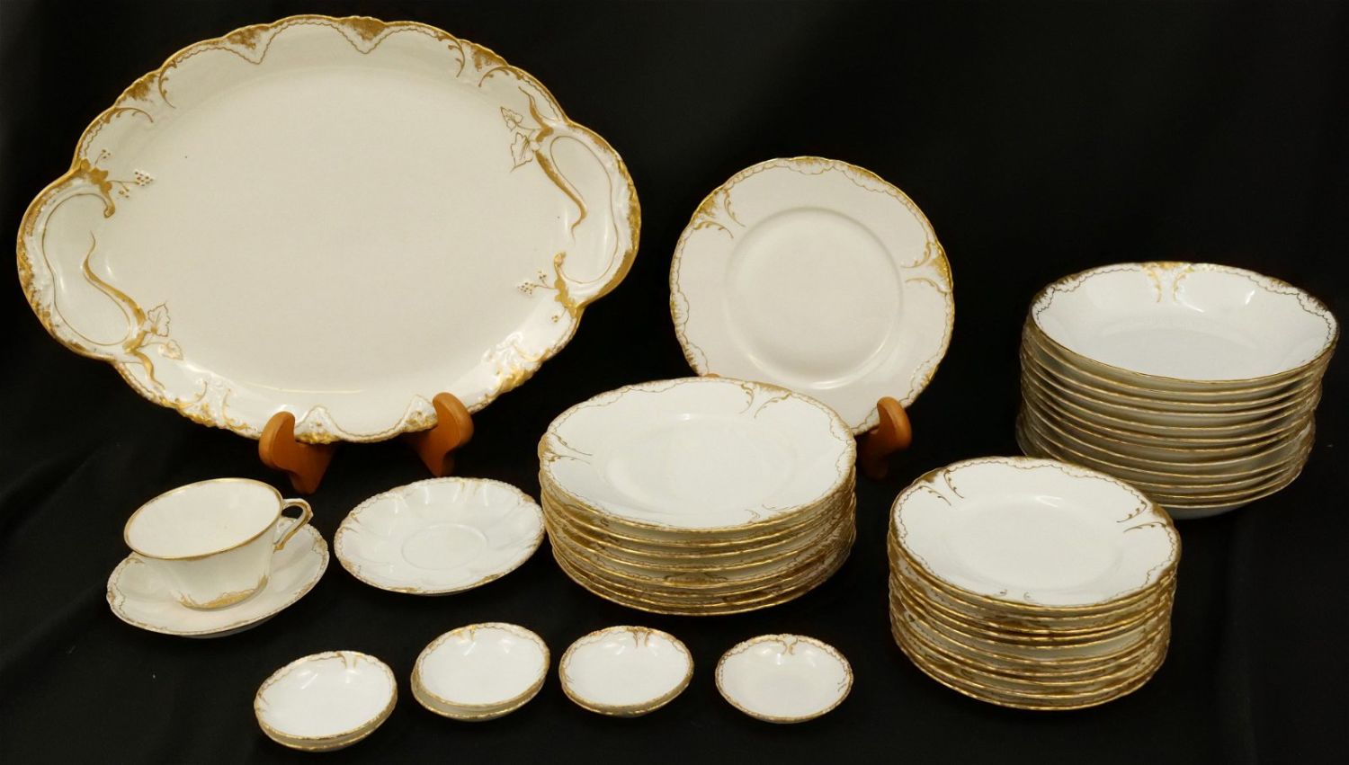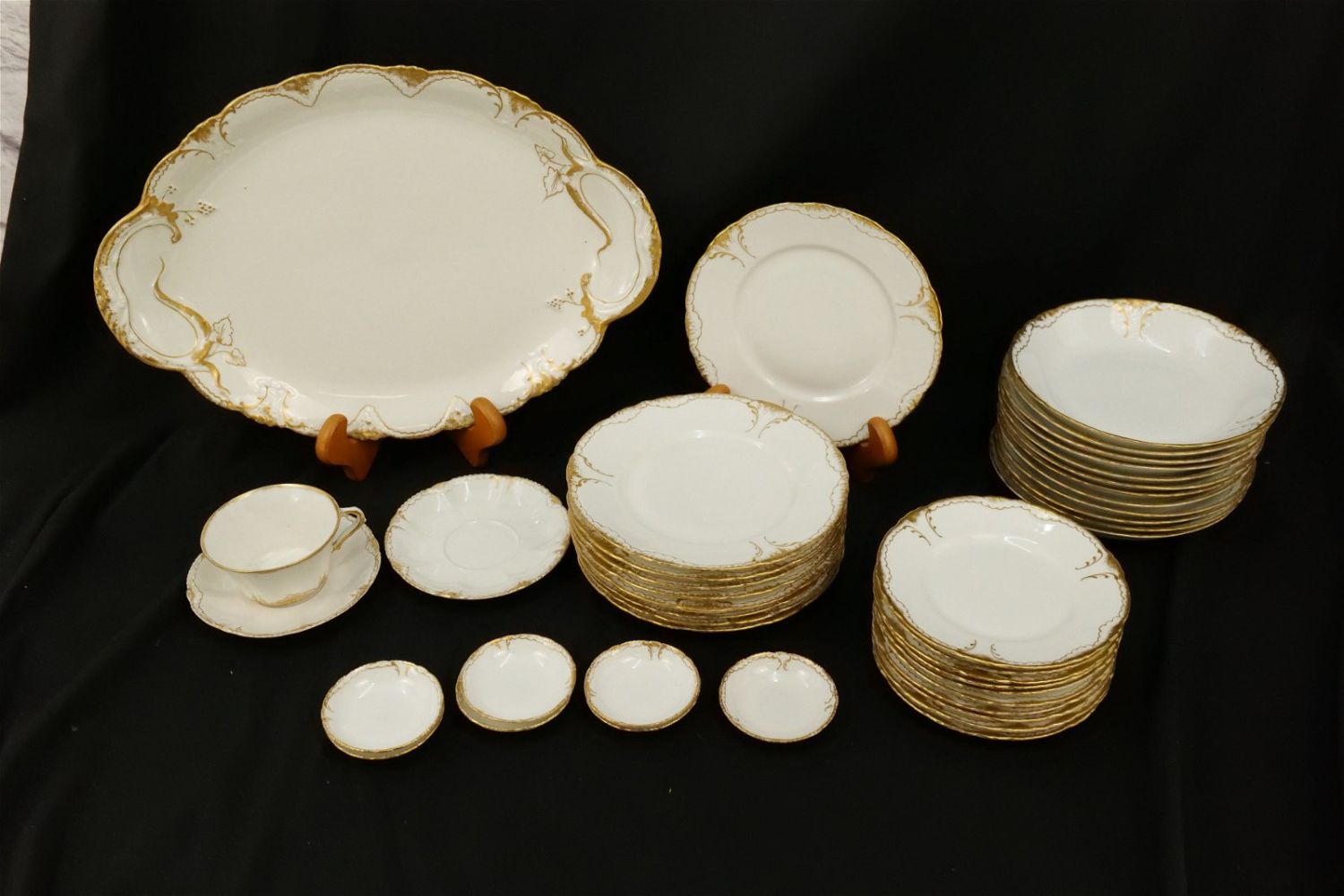 42 Piece Theodore Haviland Limoges France Partial Dinnerware Set. Lot includes (12) 7.5" Soups, (10) 6.25" Bread Plates, (9) 8" Salad Plates, (7) 3" Table Salts, 1 Cup, (2) Saucers and 16" Platter. All invoices must be paid within 24 hours of the sale. We offer multiple shipping options, please read the terms as they have changed. We also offer Pick-Ups Thursday, Friday, Saturday, and Monday immediately following the sale. BY APPOINTMENT ONLY. PLEASE READ THE NEW TERMS!!!