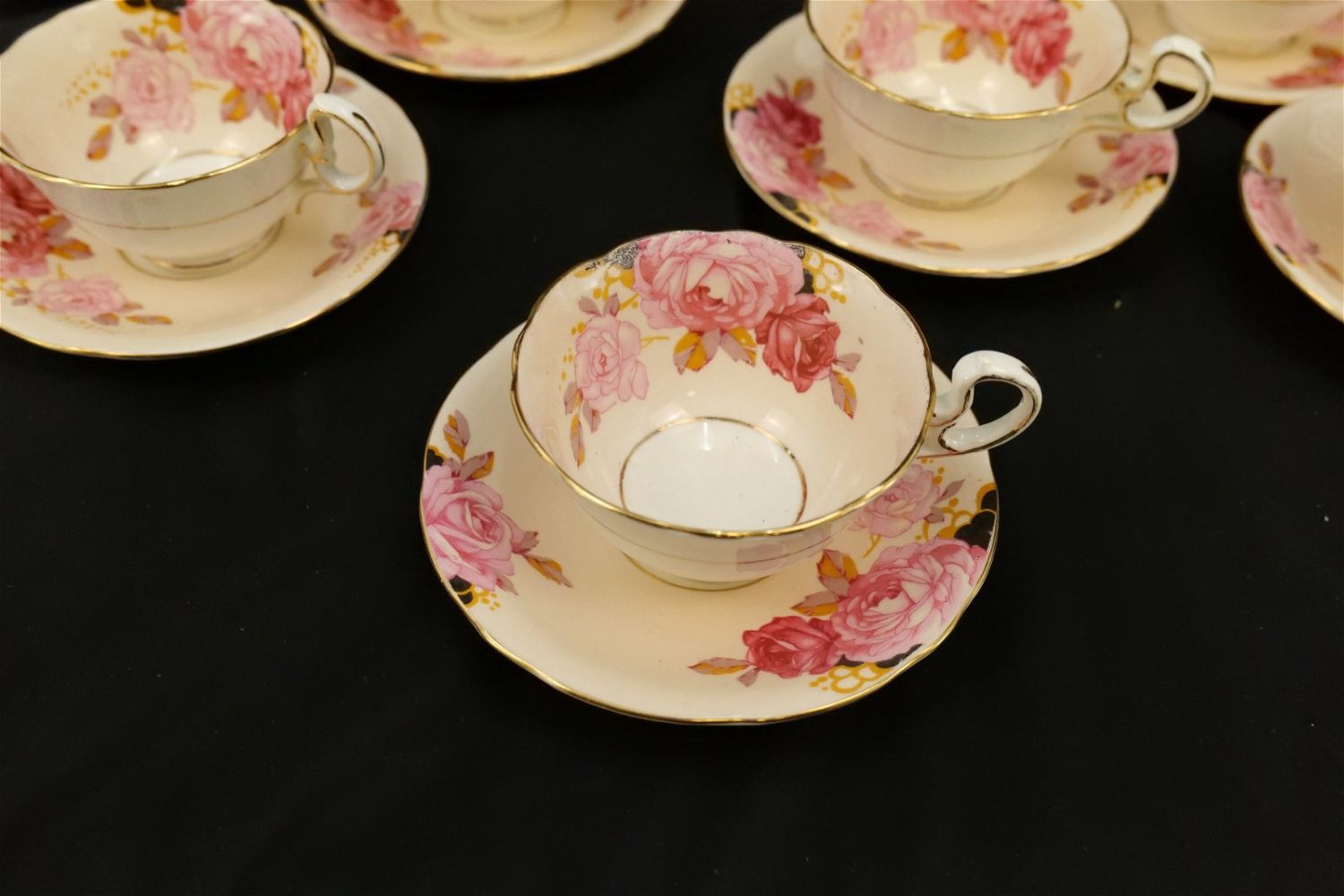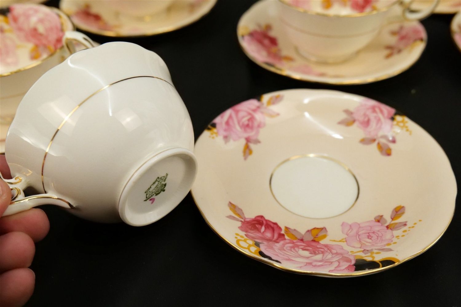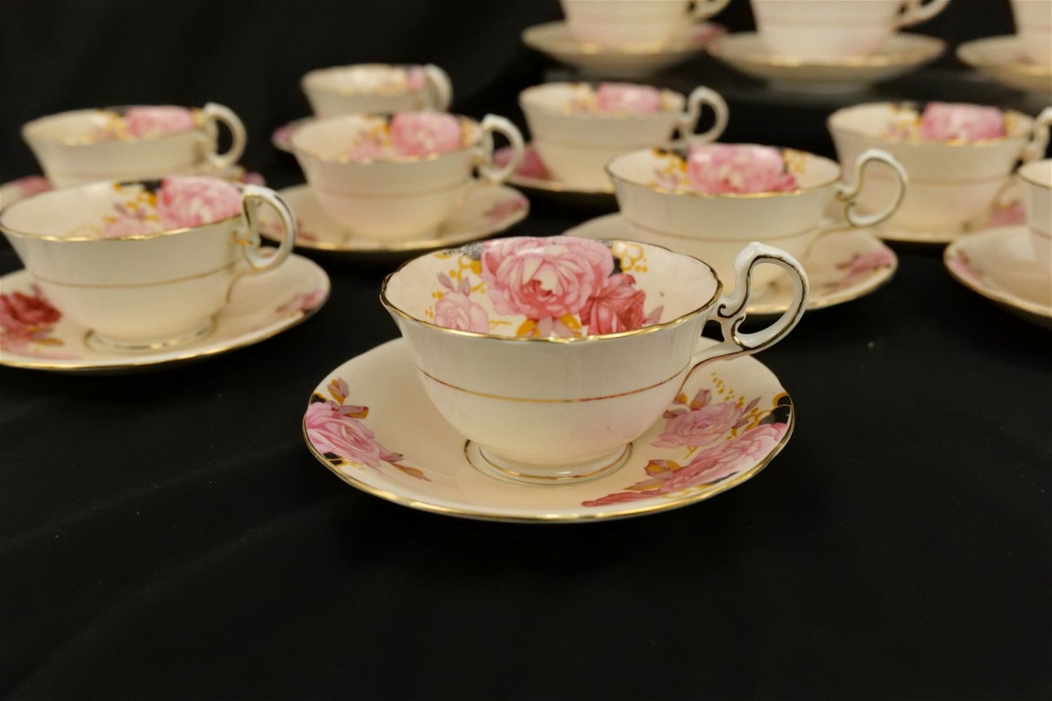 Set of 12 Ainsley Bone China English Cups and Saucers in Rose Pattern. Cups measure 2.5" tall x 3.5" wide. Saucer measures 5.5" diameter. All invoices must be paid within 24 hours of the sale. We offer multiple shipping options, please read the terms as they have changed. We also offer Pick-Ups Thursday, Friday, Saturday, and Monday immediately following the sale. BY APPOINTMENT ONLY. PLEASE READ THE NEW TERMS!!!