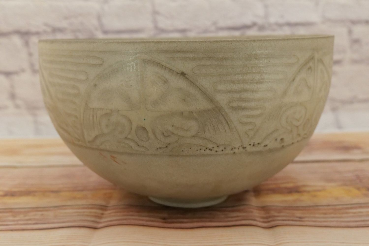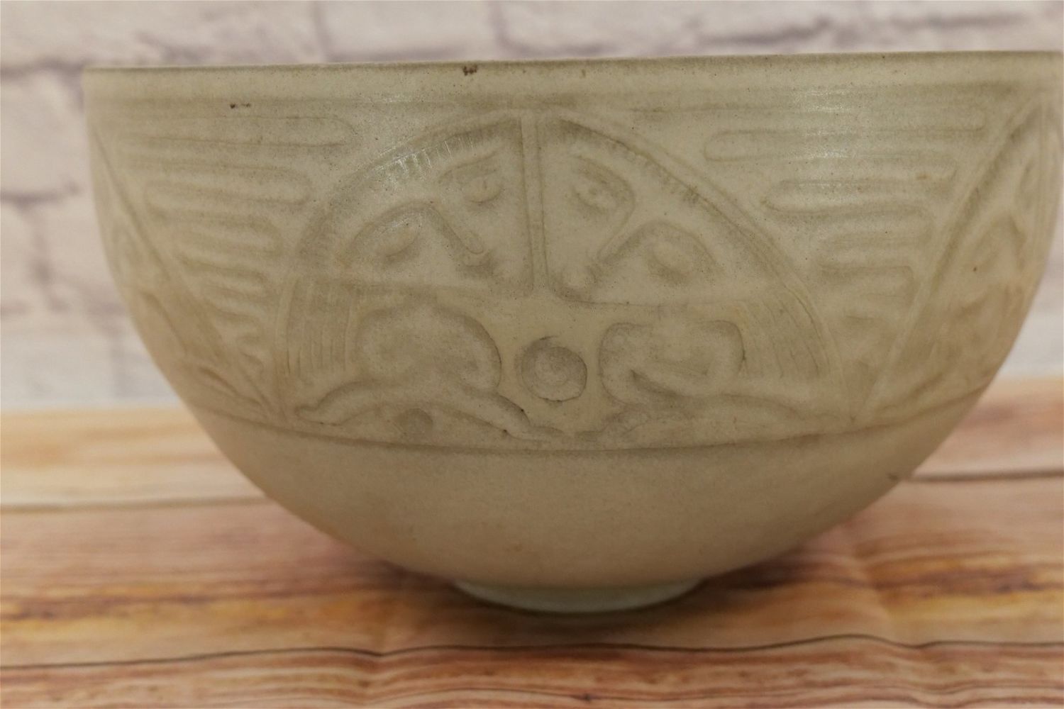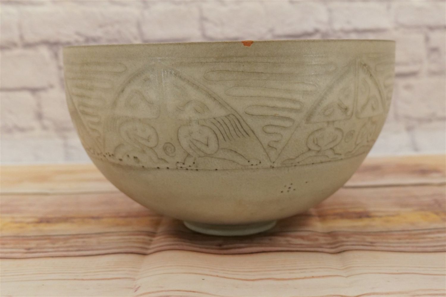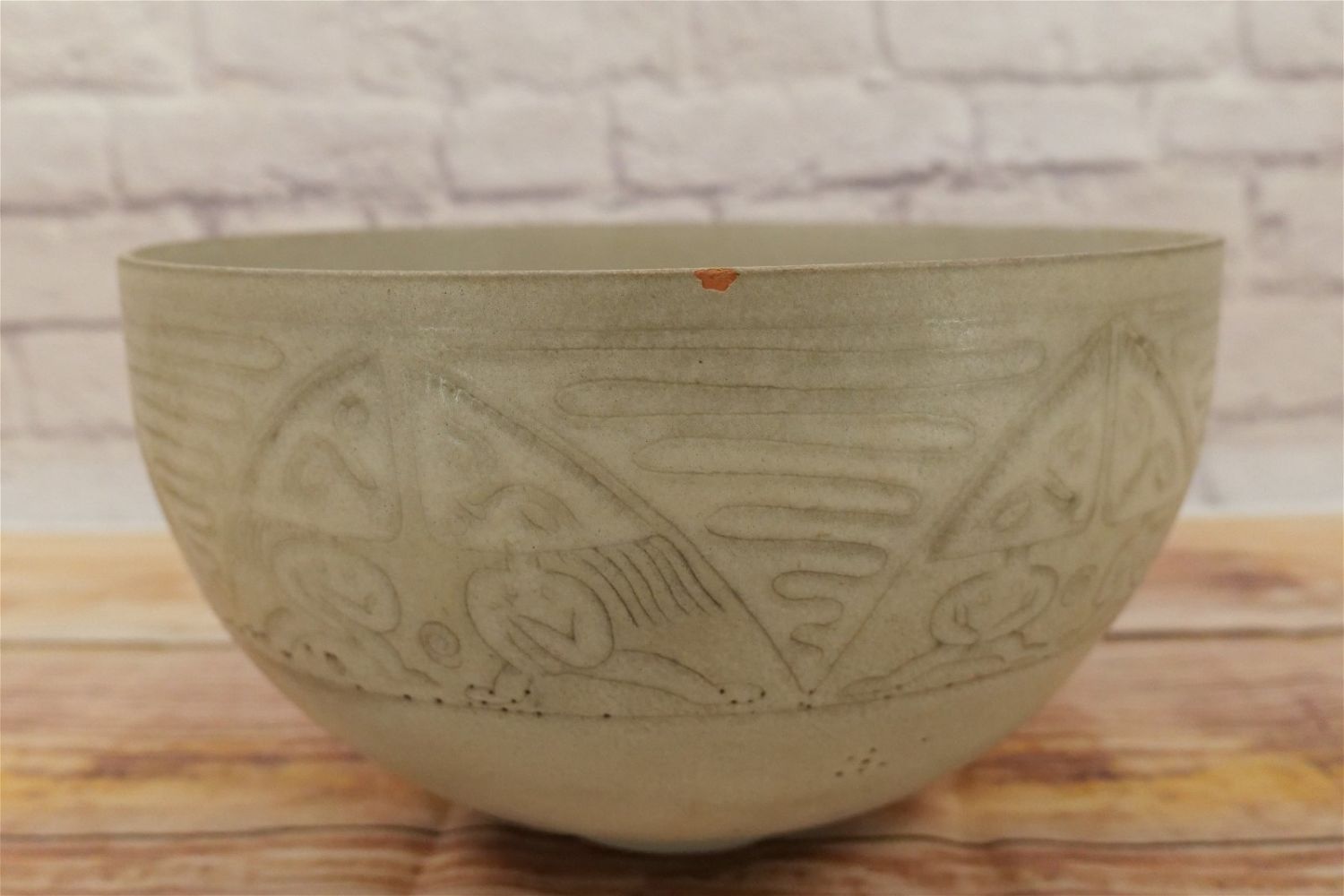 Oversized Mid Century Modern Art Pottery Center Bowl with Mythological Full Body Figures on all 4 Sides. Signed Edwin Scheier (1910-2008). Has a paint chip loss on rim. Otherwise overall in very good condition. Measures 8" tall x 14" wide. All invoices must be paid within 24 hours of the sale. We offer multiple shipping options, please read the terms as they have changed. We also offer Pick-Ups Thursday, Friday, Saturday, and Monday immediately following the sale. BY APPOINTMENT ONLY. PLEASE READ THE NEW TERMS!!!