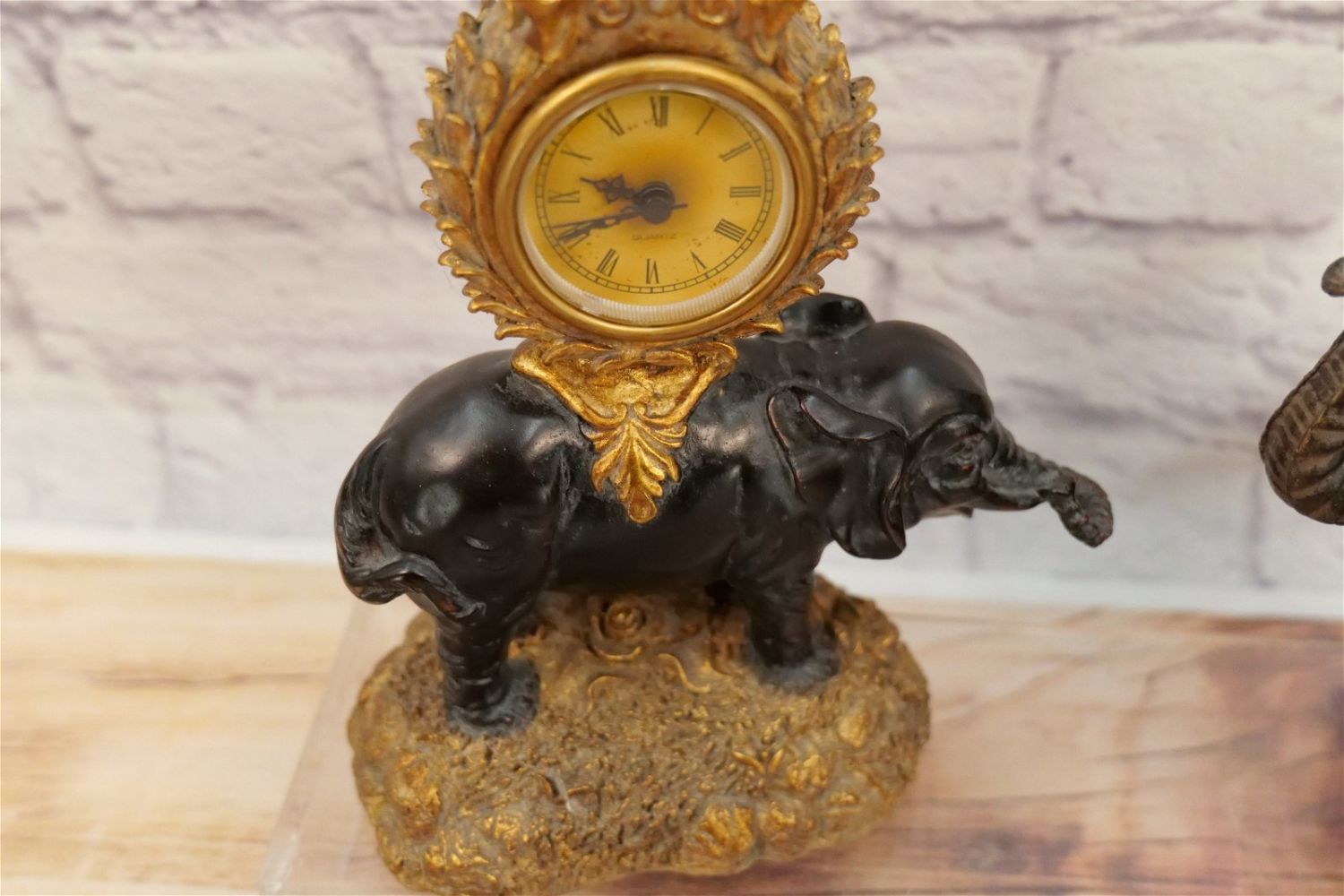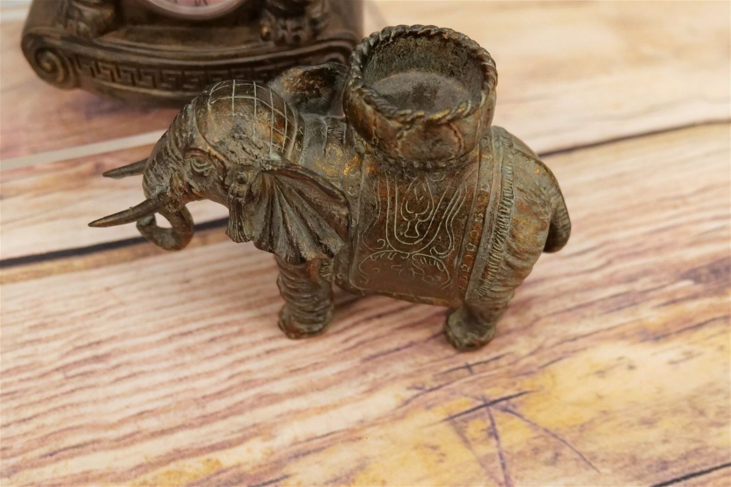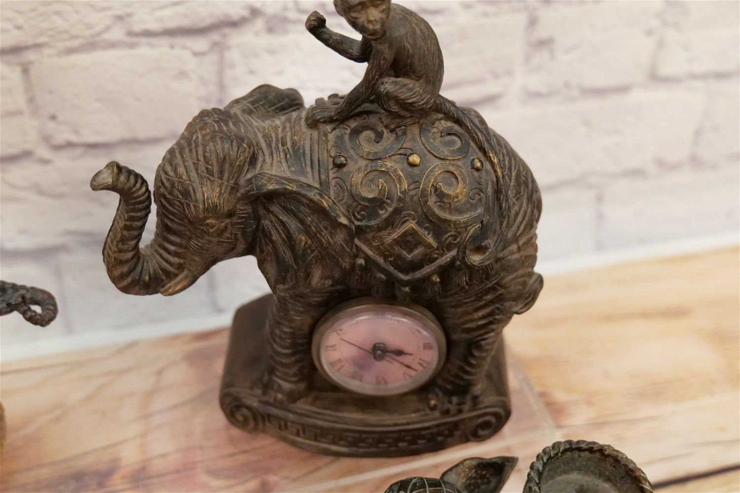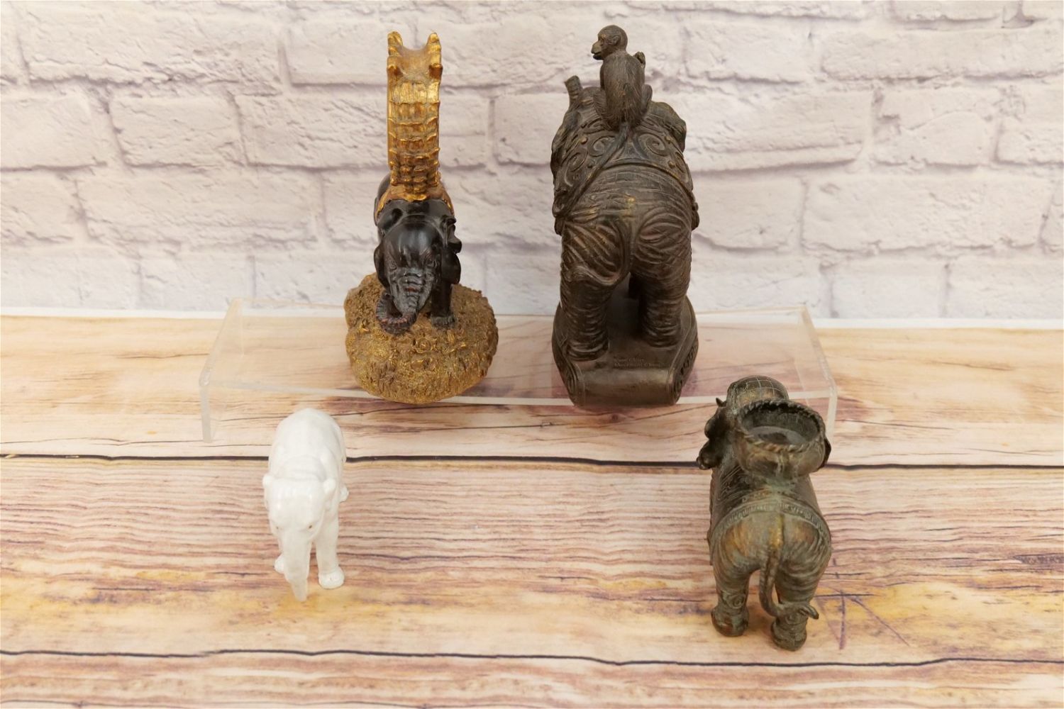 Group Lot of Decorative Elephants including Resin Elephant Clock, Resin Clock with Monkey Riding Elephant, Resin Candle Holder, and 19th Century Porcelain Elephant with Hand Painted Eyes. Largest measures 10" tall. All invoices must be paid within 24 hours of the sale. We offer multiple shipping options, please read the terms as they have changed. We also offer Pick-Ups Thursday, Friday, Saturday, and Monday immediately following the sale. BY APPOINTMENT ONLY. PLEASE READ THE NEW TERMS!!!