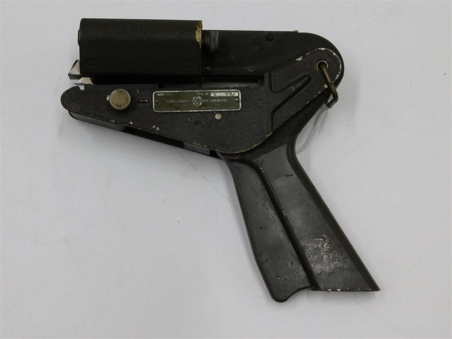 Model 70 Addressograph Pistol Type Imprinting Machine. Used by Army Medical Dept. to transfer dog or burial dogs ID data directly to medical records. Has serial number 08936. Has missing paint consistent with age. All invoices must be paid within 24 hours of the sale. All items are shipped USPS or UPS and will be billed separately. A $12 handling fee is added to the shipping price per lot if shipped in house. Some items or large quantity of purchases will be packed and shipped via the Monmouth Junction UPS store. Local pickups are at our Monmouth Junction location on Friday, Saturday and Monday ONLY! All pickups are by appointment only. Any condition issues will be listed in the description. Please read the terms for full information.
