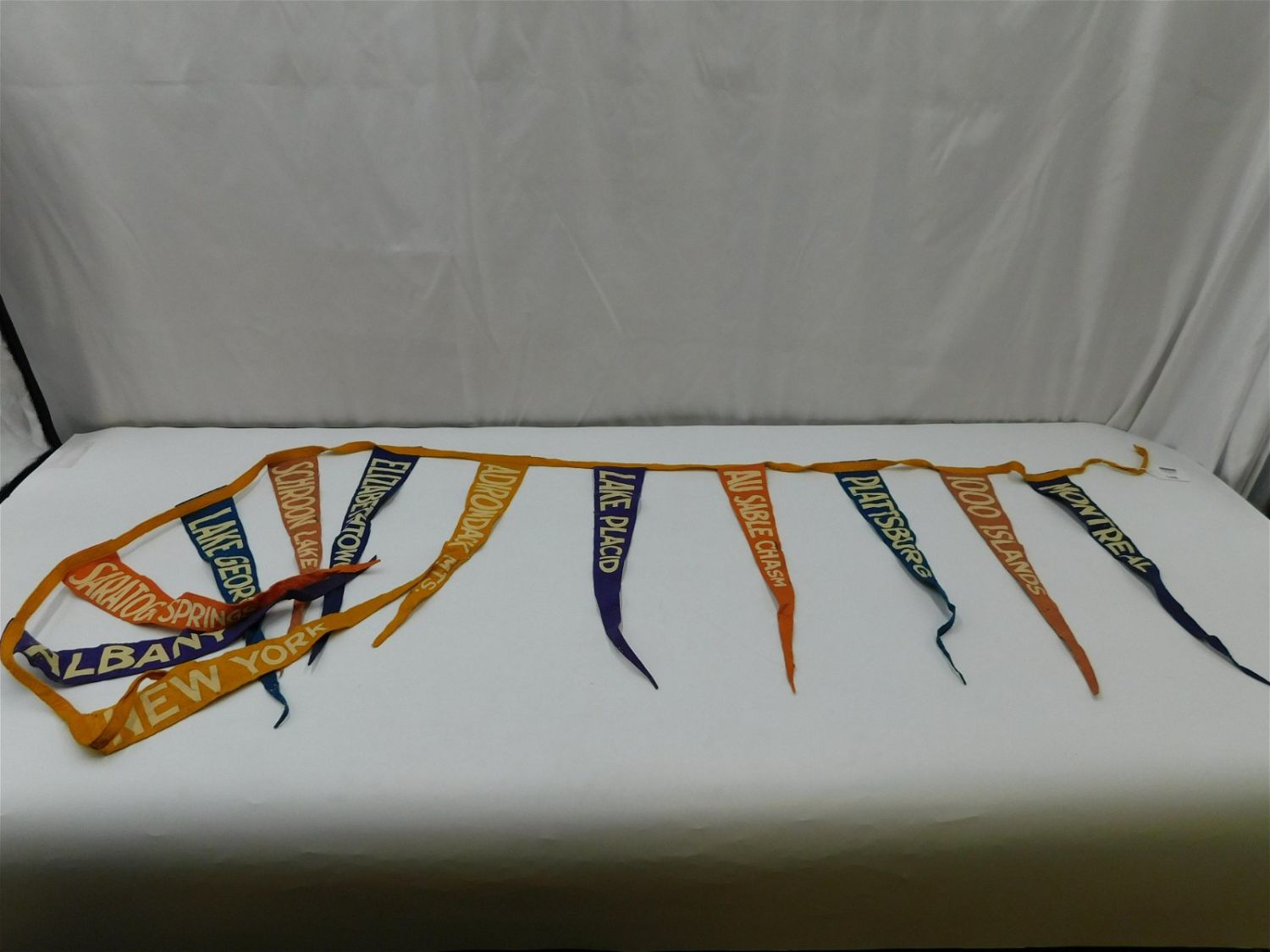 Vintage Pennant Banner of New York Locations including Albany, Lake George, Lake Placid and More. In fair condition with some loss to the felt. All invoices must be paid within 24 hours of the sale. All items are shipped USPS or UPS and will be billed separately. A $12 handling fee is added to the shipping price per lot if shipped in house. Some items or large quantity of purchases will be packed and shipped via the Monmouth Junction UPS store. Local pickups are at our Monmouth Junction location on Friday, Saturday and Monday ONLY! All pickups are by appointment only. Any condition issues will be listed in the description. Please read the terms for full information.