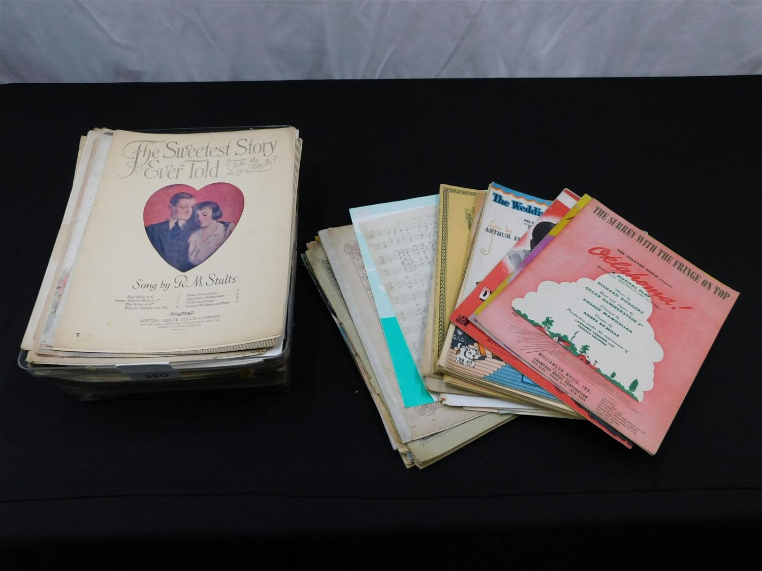 Lot of Sheet Music including Umbrella Man, Oklahoma, Doll Dance, and other various piano and piano forte sheet music. Edges have fraying. All invoices must be paid within 24 hours of the sale. All items are shipped USPS or UPS and will be billed separately. A $12 handling fee is added to the shipping price per lot if shipped in house. Some items or large quantity of purchases will be packed and shipped via the Monmouth Junction UPS store. Local pickups are at our Monmouth Junction location on Friday, Saturday and Monday ONLY! All pickups are by appointment only. Any condition issues will be listed in the description. Please read the terms for full information.