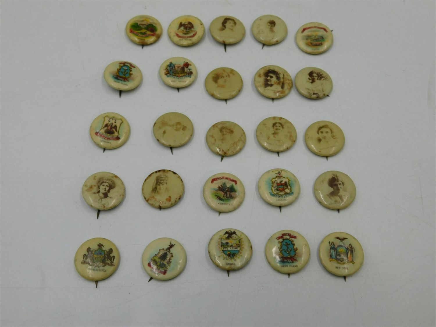 Lot of Sweet Caporal Cigarette State Seal Button Pins. Also included are a few actress buttons. Some loss and discoloration but otherwise good condition. All invoices must be paid within 24 hours of the sale. All items are shipped USPS or UPS and will be billed separately. A $12 handling fee is added to the shipping price per lot if shipped in house. Some items or large quantity of purchases will be packed and shipped via the Monmouth Junction UPS store. Local pickups are at our Monmouth Junction location on Friday, Saturday and Monday ONLY! All pickups are by appointment only. Any condition issues will be listed in the description. Please read the terms for full information.
