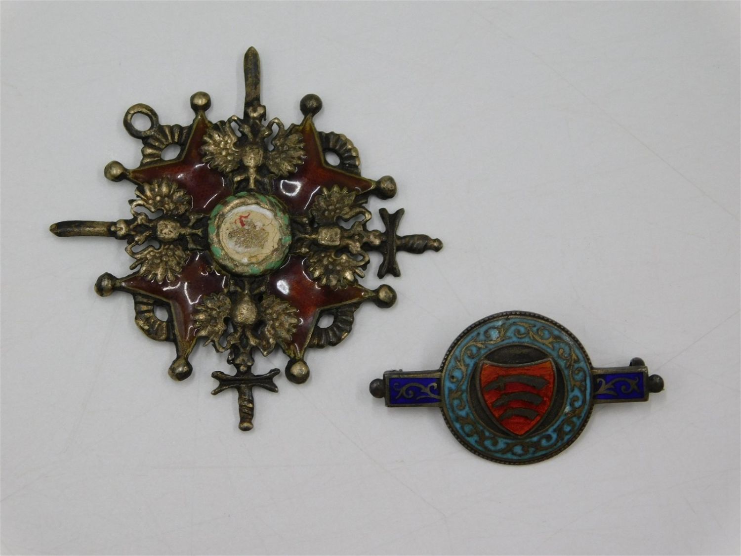 Lot of 2 Sterling and Enamel Insignias of Unknown Origin – One is bar pin with 3 sword coat of arms and other is crossed swords with enamel center. Measures 1.75" – 2.25". All invoices must be paid within 24 hours of the sale. All items are shipped USPS or UPS and will be billed separately. A $12 handling fee is added to the shipping price per lot if shipped in house. Some items or large quantity of purchases will be packed and shipped via the Monmouth Junction UPS store. Local pickups are at our Monmouth Junction location on Friday, Saturday and Monday ONLY! All pickups are by appointment only. Any condition issues will be listed in the description. Please read the terms for full information.
