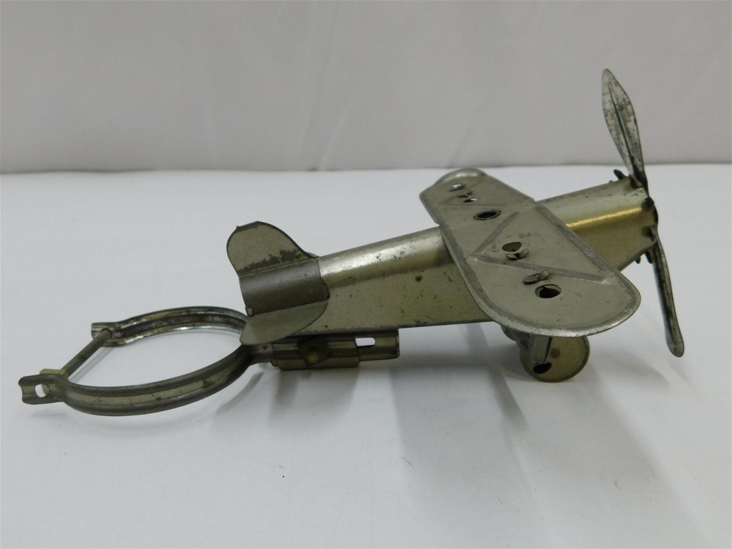 Antique Airplane Whirligig Attachment for a Bicycle. Made of Tin. Measures 3.5" tall x 9" long x 7" wingspan. All invoices must be paid within 24 hours of the sale. There are 3 Shipping Options. Please read the Terms of Sale and Shipping Options in the Terms. If you don’t read the terms, you will be upset because you don’t know what is happening. Local pickups are at our Monmouth Junction location on Thursday, Friday, Saturday and Monday ONLY! All pickups are by appointment only. Any condition issues will be listed in the description. Please read the terms for full information.