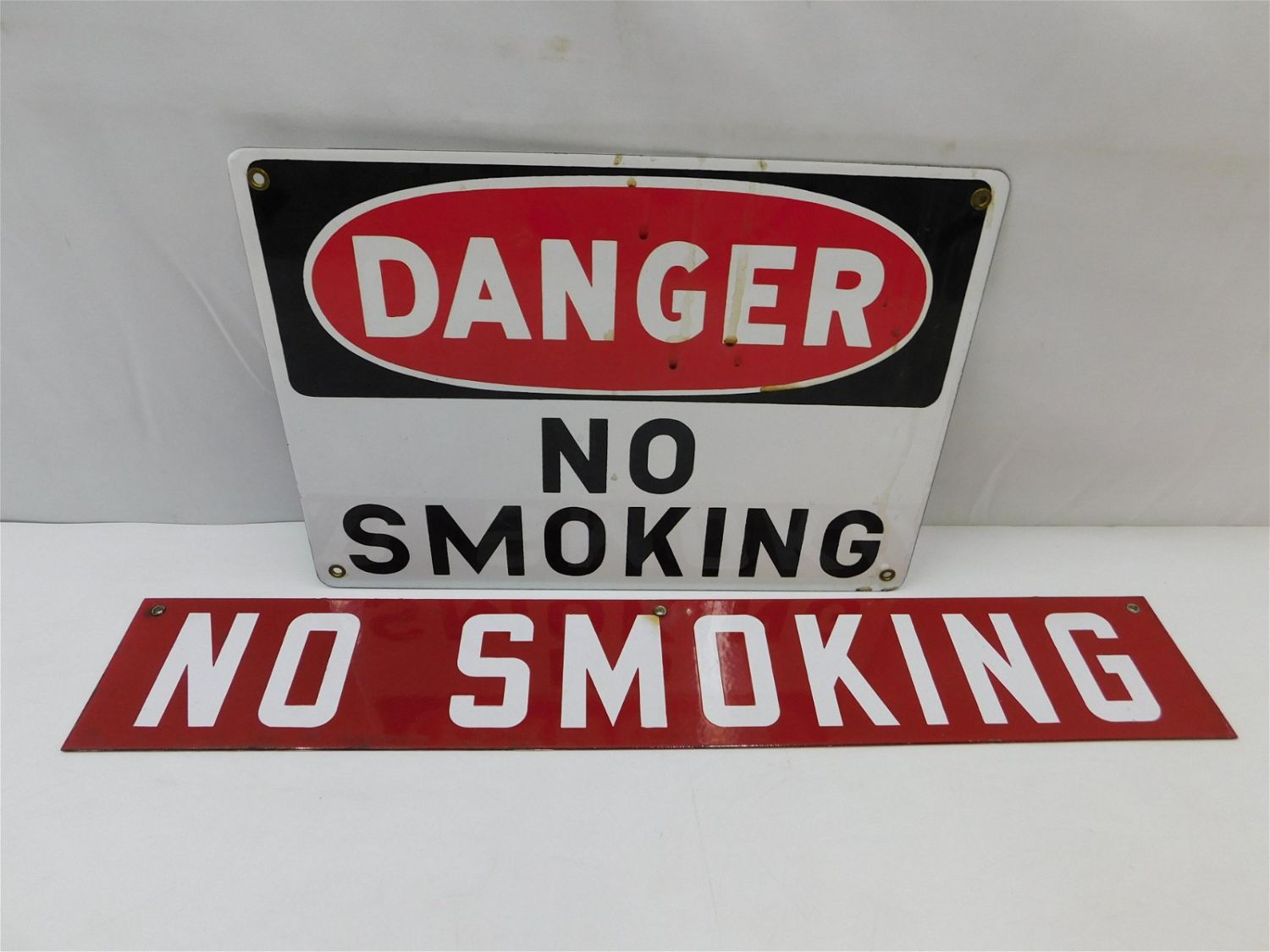 Lot of 2 Vintage Porcelain Signs including "Danger – No Smoking" and Double Sided "No Smoking". Largest measures 4" tall x 24" wide. All invoices must be paid within 24 hours of the sale. There are 3 Shipping Options. Please read the Terms of Sale and Shipping Options in the Terms. If you don’t read the terms, you will be upset because you don’t know what is happening. Local pickups are at our Monmouth Junction location on Friday, Saturday and Monday ONLY! All pickups are by appointment only. Any condition issues will be listed in the description. Please read the terms for full information.