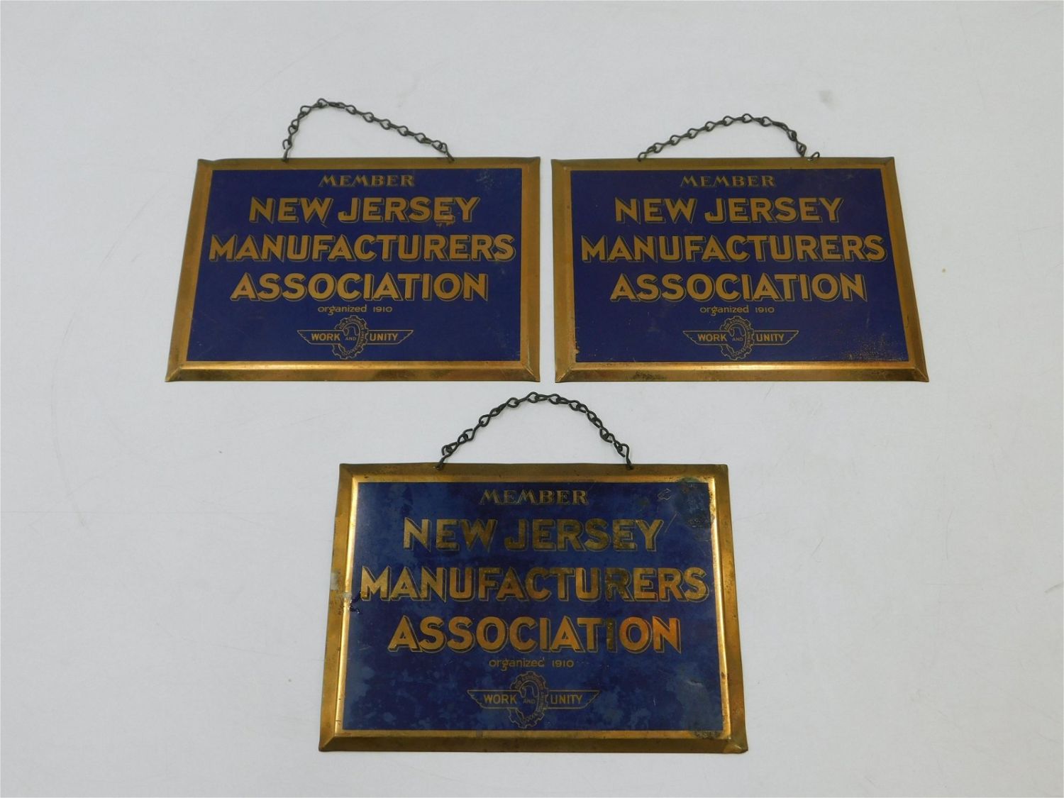 Lot of 3 Vintage Tin Signs – Member New Jersey Mfg. Assoc. Organized 1910 Work and Unity. Minor scratching but overall good to excellent condition. Measures 5" tall x 7" wide. All invoices must be paid within 24 hours of the sale. There are 3 Shipping Options. Please read the Terms of Sale and Shipping Options in the Terms. If you don’t read the terms, you will be upset because you don’t know what is happening. Local pickups are at our Monmouth Junction location on Friday, Saturday and Monday ONLY! All pickups are by appointment only. Any condition issues will be listed in the description. Please read the terms for full information.