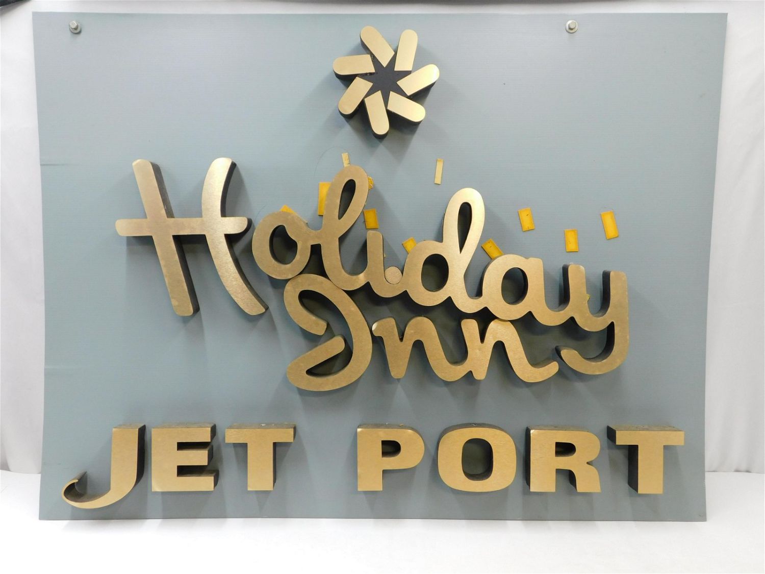 Oversized Holiday Inn Jet Port Sign. Not sure of age. Possibly Homemade. Made out of Styrofoam with Metal Highlights on laminate board back. Measures 42" tall x 57" wide. All invoices must be paid within 24 hours of the sale. There are 3 Shipping Options. Please read the Terms of Sale and Shipping Options in the Terms. If you don’t read the terms, you will be upset because you don’t know what is happening. Local pickups are at our Monmouth Junction location on Friday, Saturday and Monday ONLY! All pickups are by appointment only. Any condition issues will be listed in the description. Please read the terms for full information.