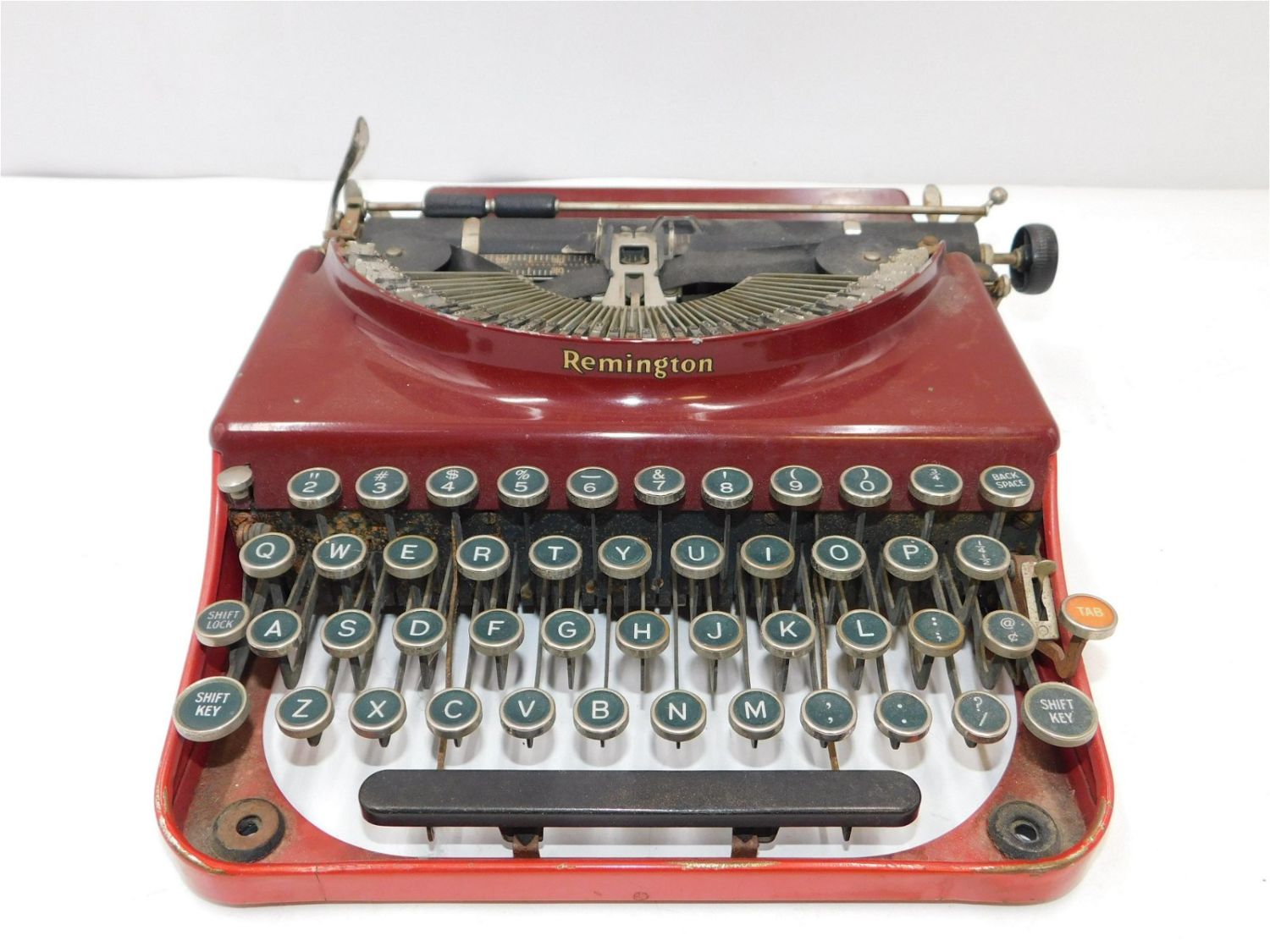Antique Remington Typewriter. Has a red case. In working condition. Measures 4" tall x 11" wide. All invoices must be paid within 24 hours of the sale. There are 3 Shipping Options. Please read the Terms of Sale and Shipping Options in the Terms. If you don’t read the terms, you will be upset because you don’t know what is happening. Local pickups are at our Monmouth Junction location on Friday, Saturday and Monday ONLY! All pickups are by appointment only. Any condition issues will be listed in the description. Please read the terms for full information.