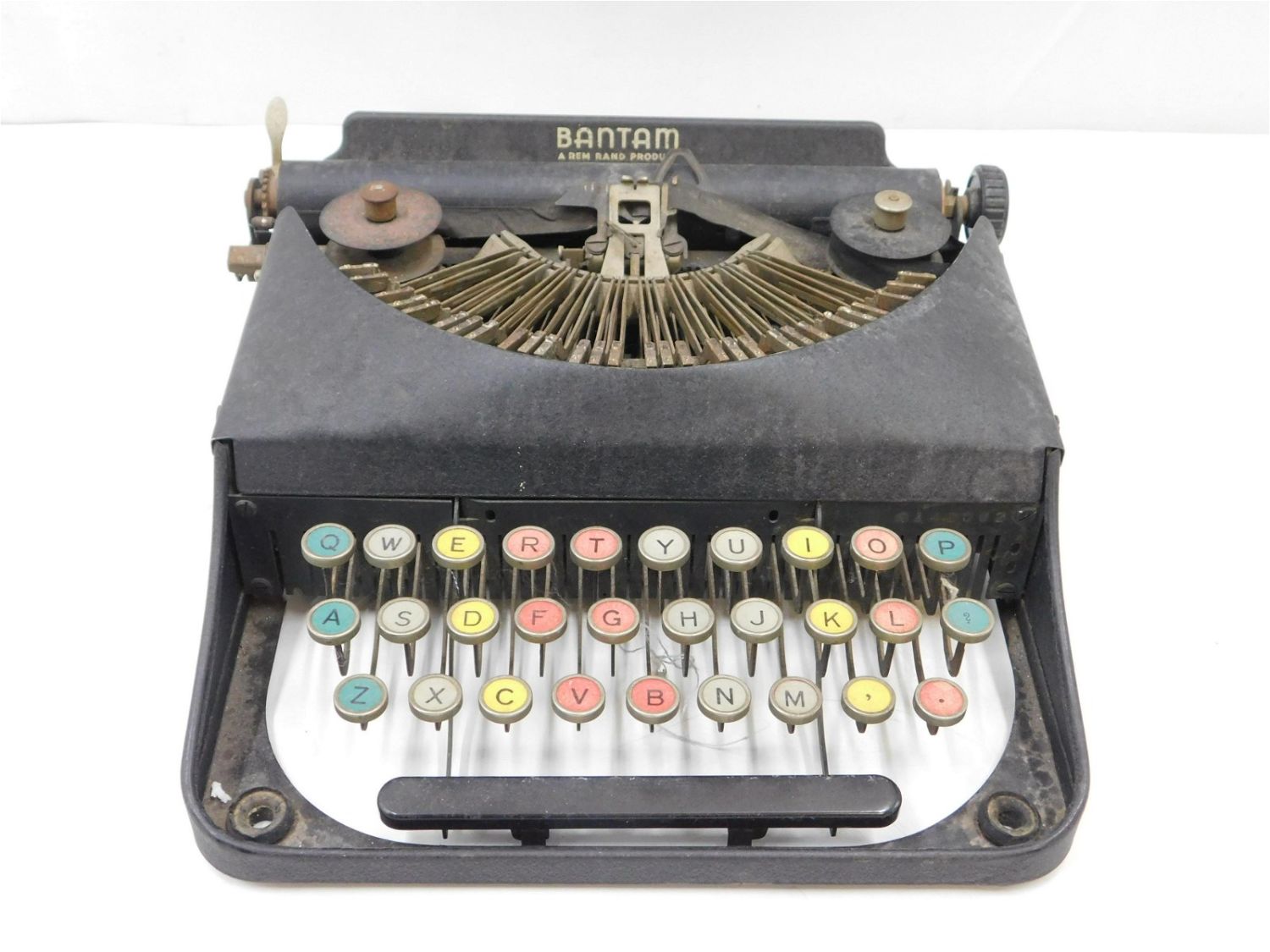 Antique Bantam Typewriter. Serial # C142082. Has multi-colored keyboard. Wants to work but needs a good oiling. Measures 3.5" tall x 10" wide. All invoices must be paid within 24 hours of the sale. There are 3 Shipping Options. Please read the Terms of Sale and Shipping Options in the Terms. If you don’t read the terms, you will be upset because you don’t know what is happening. Local pickups are at our Monmouth Junction location on Friday, Saturday and Monday ONLY! All pickups are by appointment only. Any condition issues will be listed in the description. Please read the terms for full information.