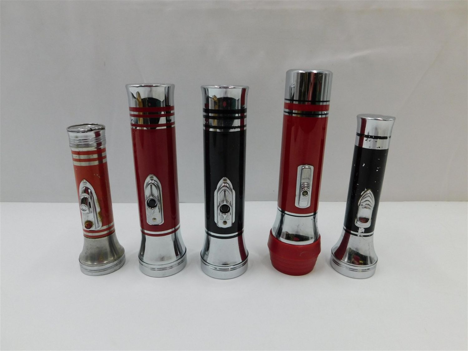 Lot of 5 Vintage Flashlights including (4) Eveready and 1 by ABC British Empire Hong Kong. All Aluminum. In Good to very good condition with some loss to some of the litho. Largest measures 7.5" long. All invoices must be paid within 24 hours of the sale. There are 3 Shipping Options. Please read the Terms of Sale and Shipping Options in the Terms. If you don’t read the terms, you will be upset because you don’t know what is happening. Local pickups are at our Monmouth Junction location on Thursday, Friday, Saturday and Monday ONLY! All pickups are by appointment only. Any condition issues will be listed in the description. Please read the terms for full information.