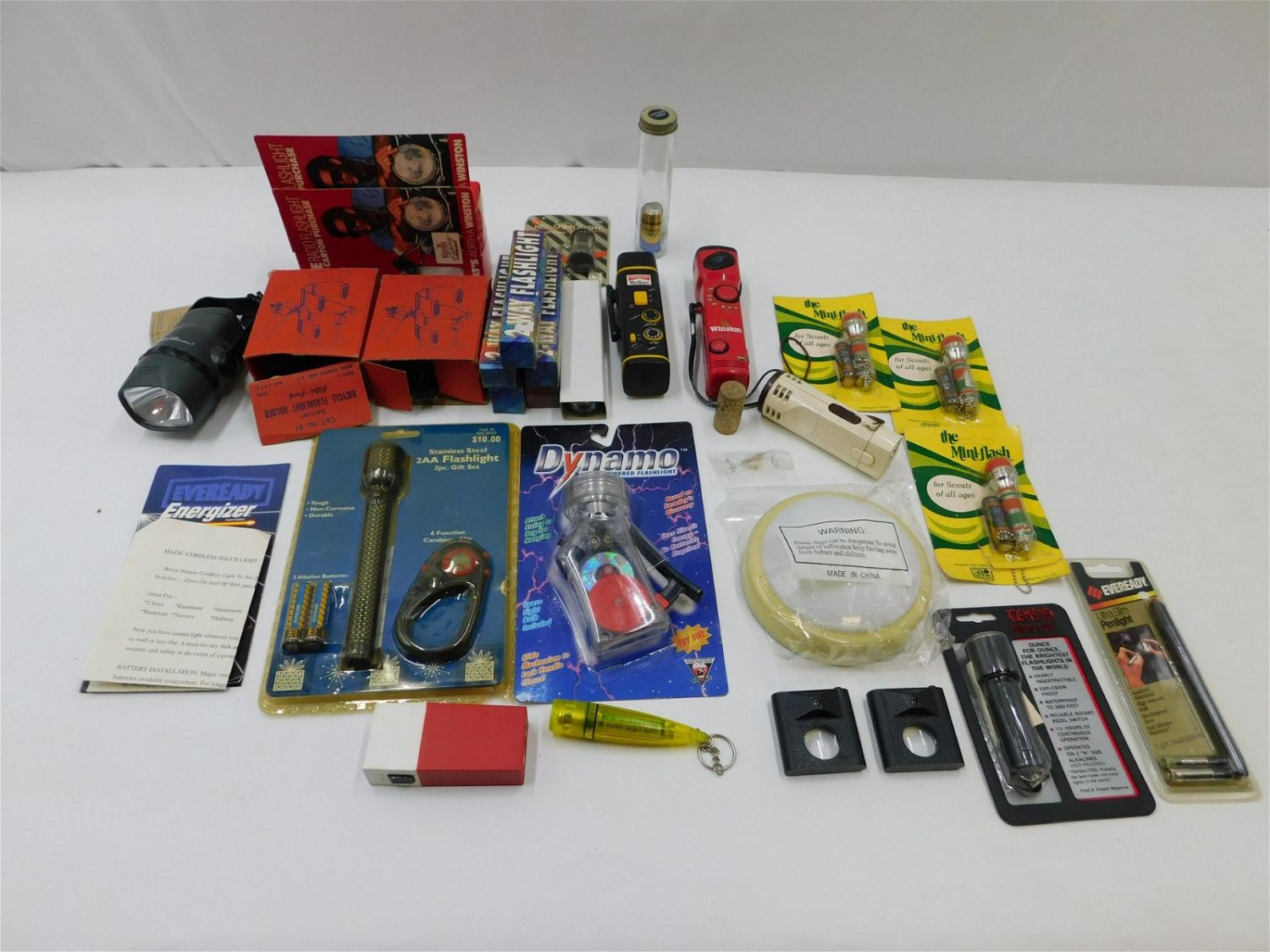 Group Lot of Various Lights and Accessories including Cigarette Promo Flashlights, 2 Way Flashlights, Box Plastic Flashlight – Working, Keychain Flashlight, (2) Vintage Bicycle Flashlight Holders, and More. Some come in original packaging. Longest measures 7.5". All invoices must be paid within 24 hours of the sale. There are 3 Shipping Options. Please read the Terms of Sale and Shipping Options in the Terms. If you don’t read the terms, you will be upset because you don’t know what is happening. Local pickups are at our Monmouth Junction location on Thursday, Friday, Saturday and Monday ONLY! All pickups are by appointment only. Any condition issues will be listed in the description. Please read the terms for full information.
