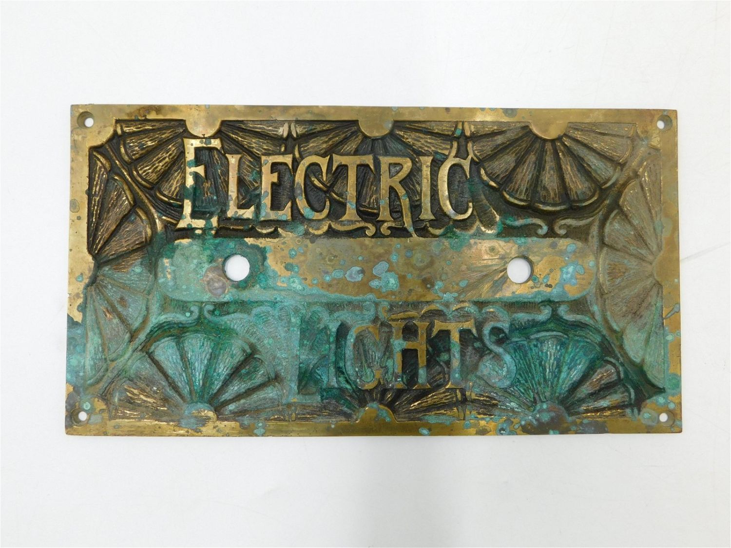 Vintage Electric Lights Brass Advertising Plate. Has oxidation throughout. Measures 5.5" tall x 10" wide. All invoices must be paid within 24 hours of the sale. There are 3 Shipping Options. Please read the Terms of Sale and Shipping Options in the Terms. If you don’t read the terms, you will be upset because you don’t know what is happening. Local pickups are at our Monmouth Junction location on Thursday, Friday, Saturday and Monday ONLY! All pickups are by appointment only. Any condition issues will be listed in the description. Please read the terms for full information.
