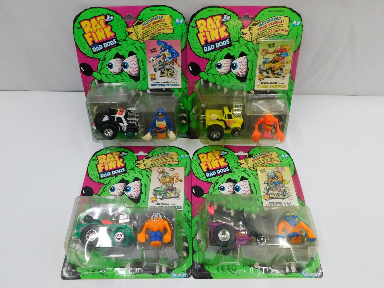 Lot of 4 Kenner Rat Fink and The Rad Rods Figures and Vehicles including Hauling Hog, Beach Bomber, Quad Hopper, and Bruise Cruiser. All Mint on Card. All invoices must be paid within 24 hours of the sale. There are 3 Shipping Options. Please read the Terms of Sale and Shipping Options in the Terms. If you don’t read the terms, you will be upset because you don’t know what is happening. Local pickups are at our Monmouth Junction location on Friday, Saturday and Monday ONLY! All pickups are by appointment only. Any condition issues will be listed in the description. Please read the terms for full information.