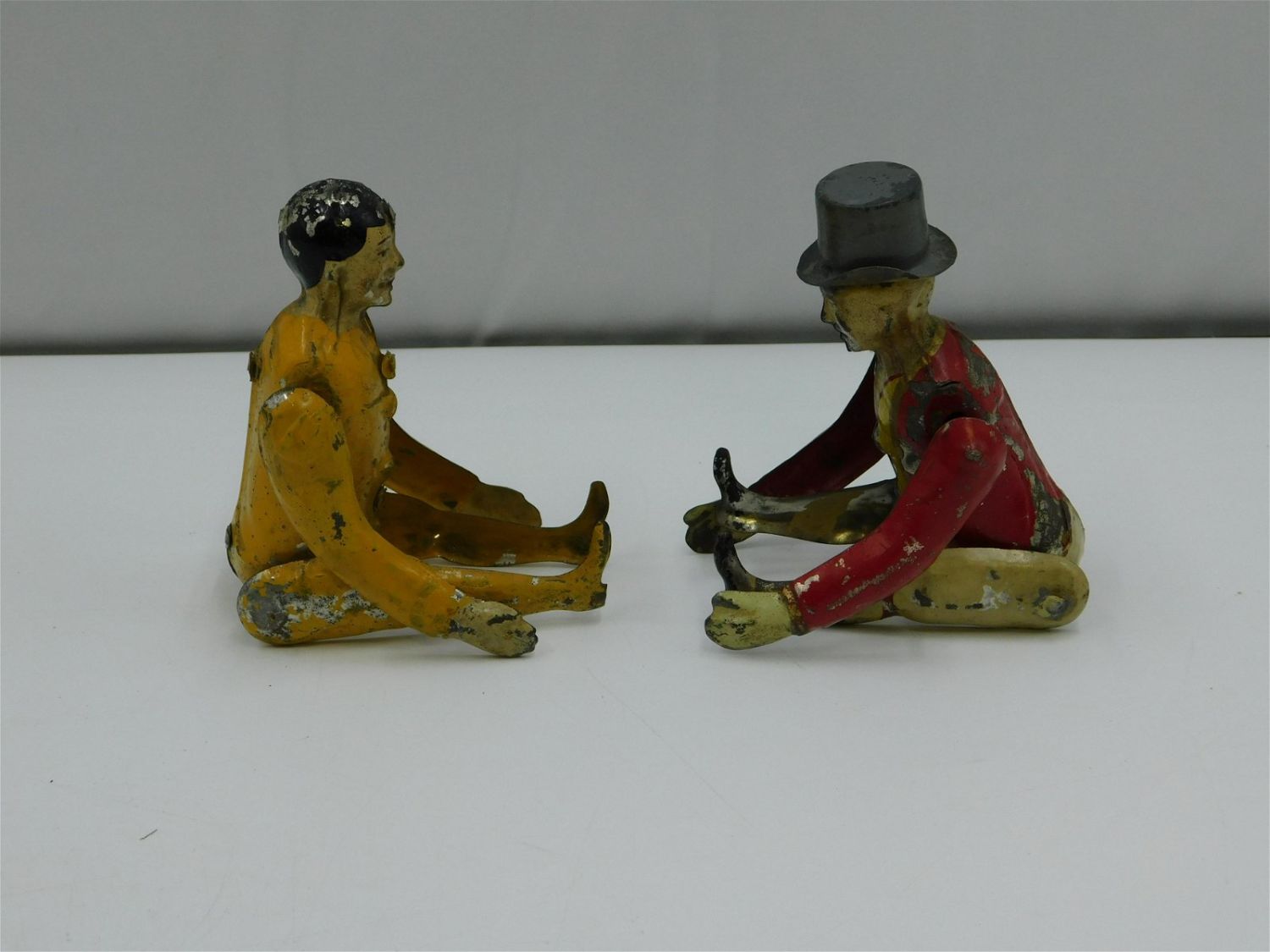 Lot of 2 Antique European Acrobats – Ring Master and Acrobat Wind Up Toys. They both winds up from the arms. Ring Master does flip over all the way. The acrobat does not appear to flip. Measures 7.25" tall x 2.75" wide. All invoices must be paid within 24 hours of the sale. There are 3 Shipping Options. Please read the Terms of Sale and Shipping Options in the Terms. If you don’t read the terms, you will be upset because you don’t know what is happening. Local pickups are at our Monmouth Junction location on Friday, Saturday and Monday ONLY! All pickups are by appointment only. Any condition issues will be listed in the description. Please read the terms for full information.