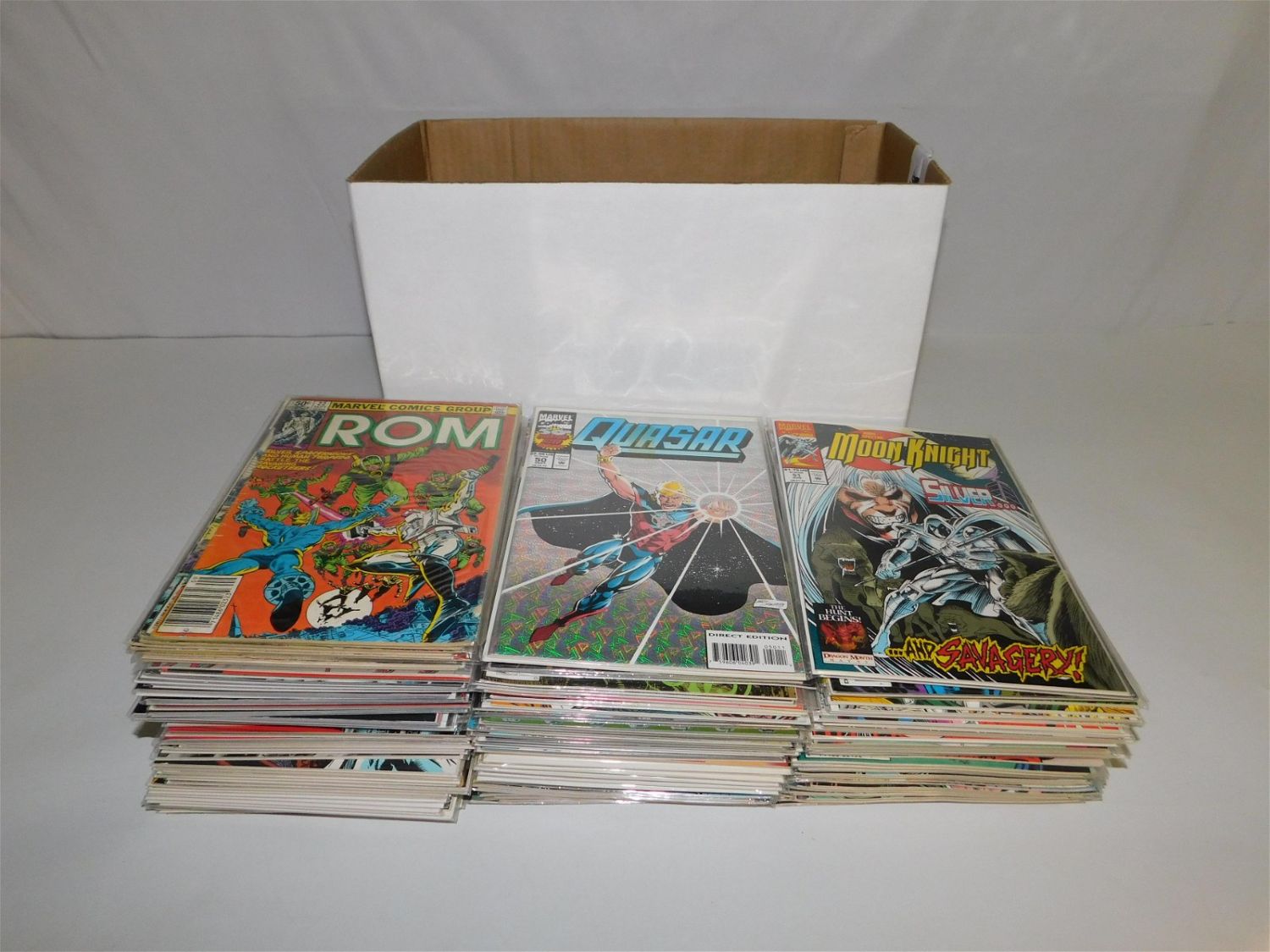 Short Box of Marvel Comics including G.I. Joe Special Missions, G.I. Joe Yearbook, Transformer’s Universe, Marc Spector: Moon Knight, Silver Sable, Silver Surfer and More. All invoices must be paid within 24 hours of the sale. All items are shipped USPS or UPS and will be billed separately. A $12 handling fee is added to the shipping price per lot if shipped in house. Some items or large quantity of purchases will be packed and shipped via the Monmouth Junction UPS store. Local pickups are at our Monmouth Junction location on Thursday, Friday, Saturday and Monday ONLY! All pickups are by appointment only. Any condition issues will be listed in the description. Please read the terms for full information.