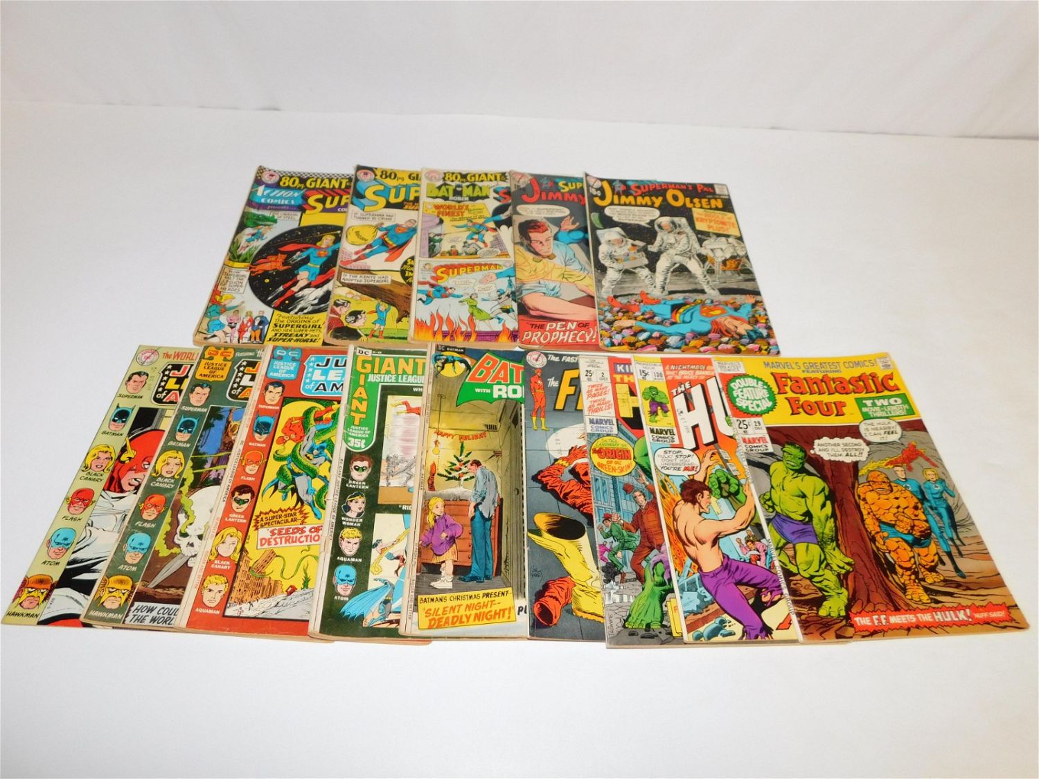 Lot of 14 Silver Age DC and Marvel Comics including 80 Page Giant Superman Annual #1, Supergirl Giant Size #334, World’s Finest Giant #179, King Size Incredible Hulk #2, Incredible Hulk #130, Marvels Greatest Comics Featuring Fantastic Four #29, Superman’s Pal Jimmy Olsen #126 and #129, JLA #81, 84,93 and 99,Batman #239, and The Flash #191 . All invoices must be paid within 24 hours of the sale. All items are shipped USPS or UPS and will be billed separately. A $12 handling fee is added to the shipping price per lot if shipped in house. Some items or large quantity of purchases will be packed and shipped via the Monmouth Junction UPS store. Local pickups are at our Monmouth Junction location on Thursday, Friday, Saturday and Monday ONLY! All pickups are by appointment only. Any condition issues will be listed in the description. Please read the terms for full information.